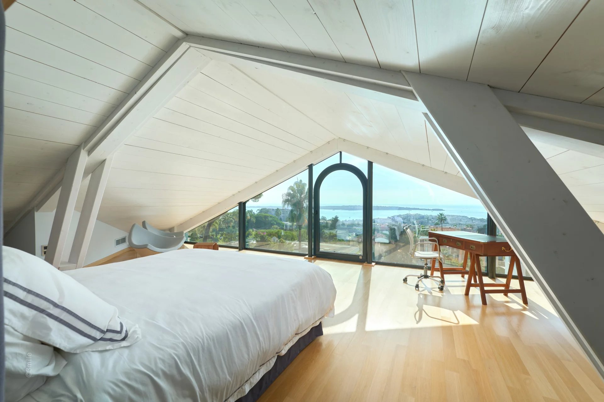 Bedroom (king size bed or two single beds), magnificent view over the bay of Cannes and the Lerins Islands – Ensuite Shower room / WC