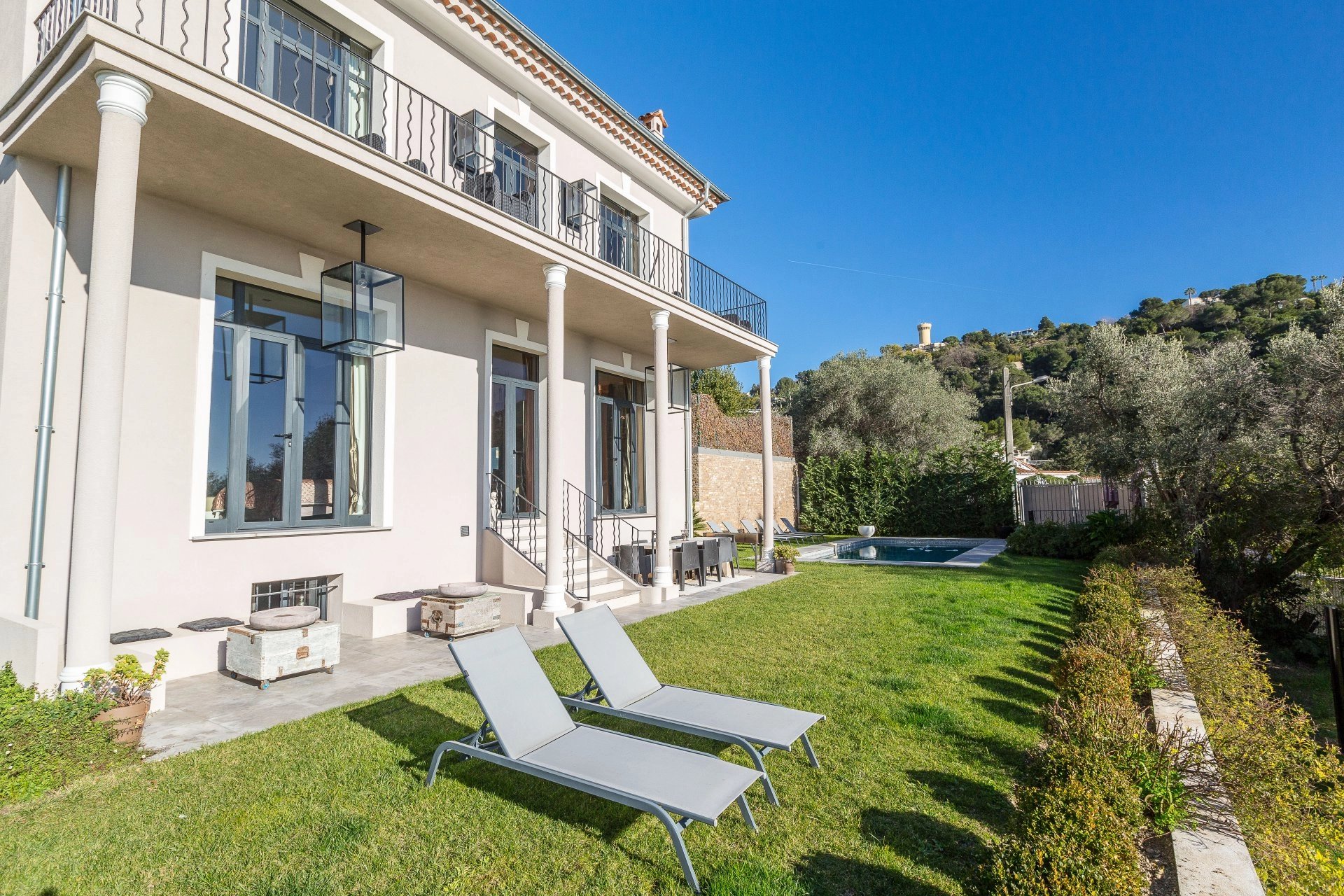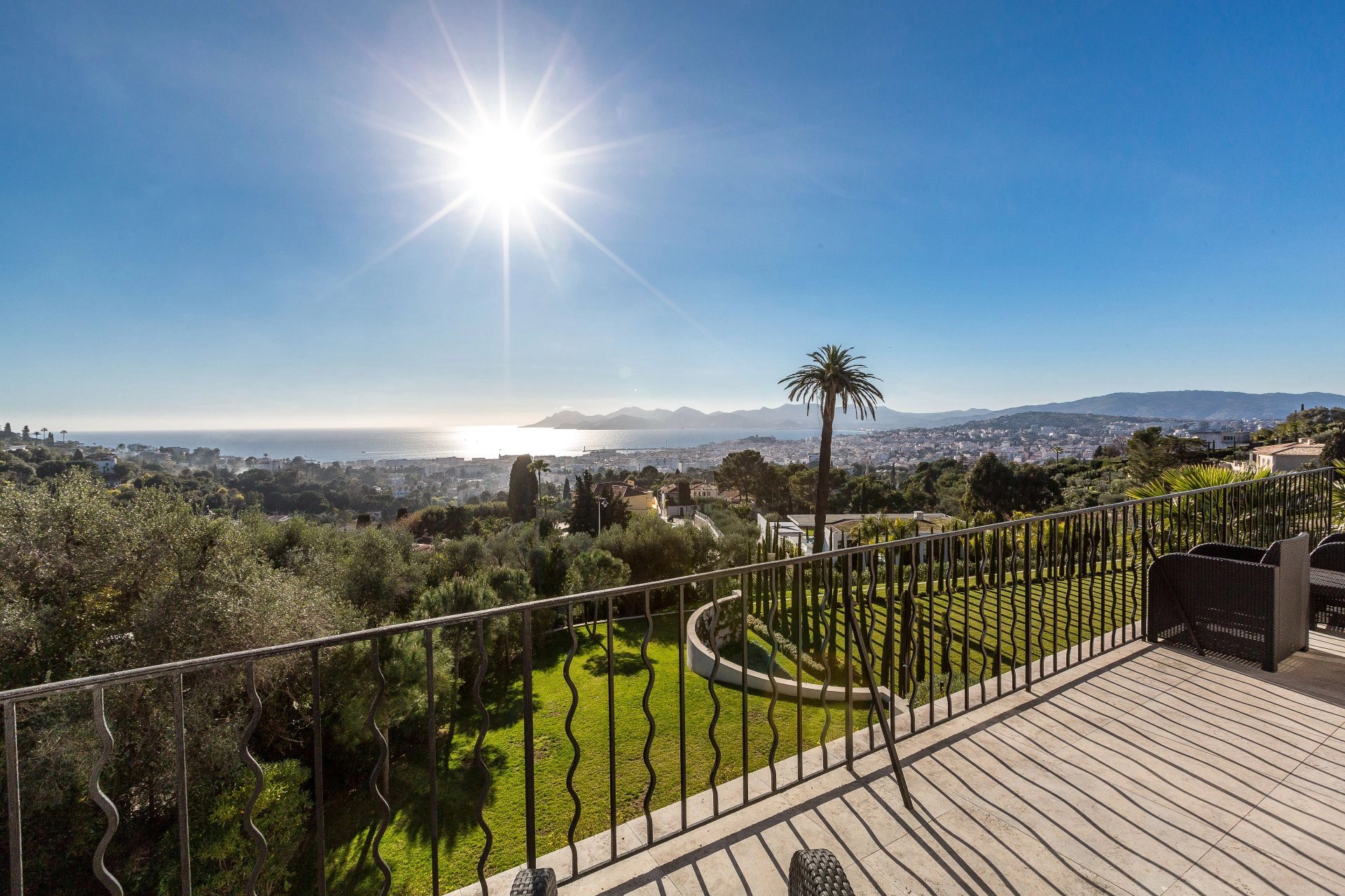Sets on 600 sq.m garden, beautiful mansion newly renovated and decorated in contemporary style with a dominant position and enjoying superb sea views over the bay of Cannes , close to city centre. Top range amenities, air-conditioning, internet connection.