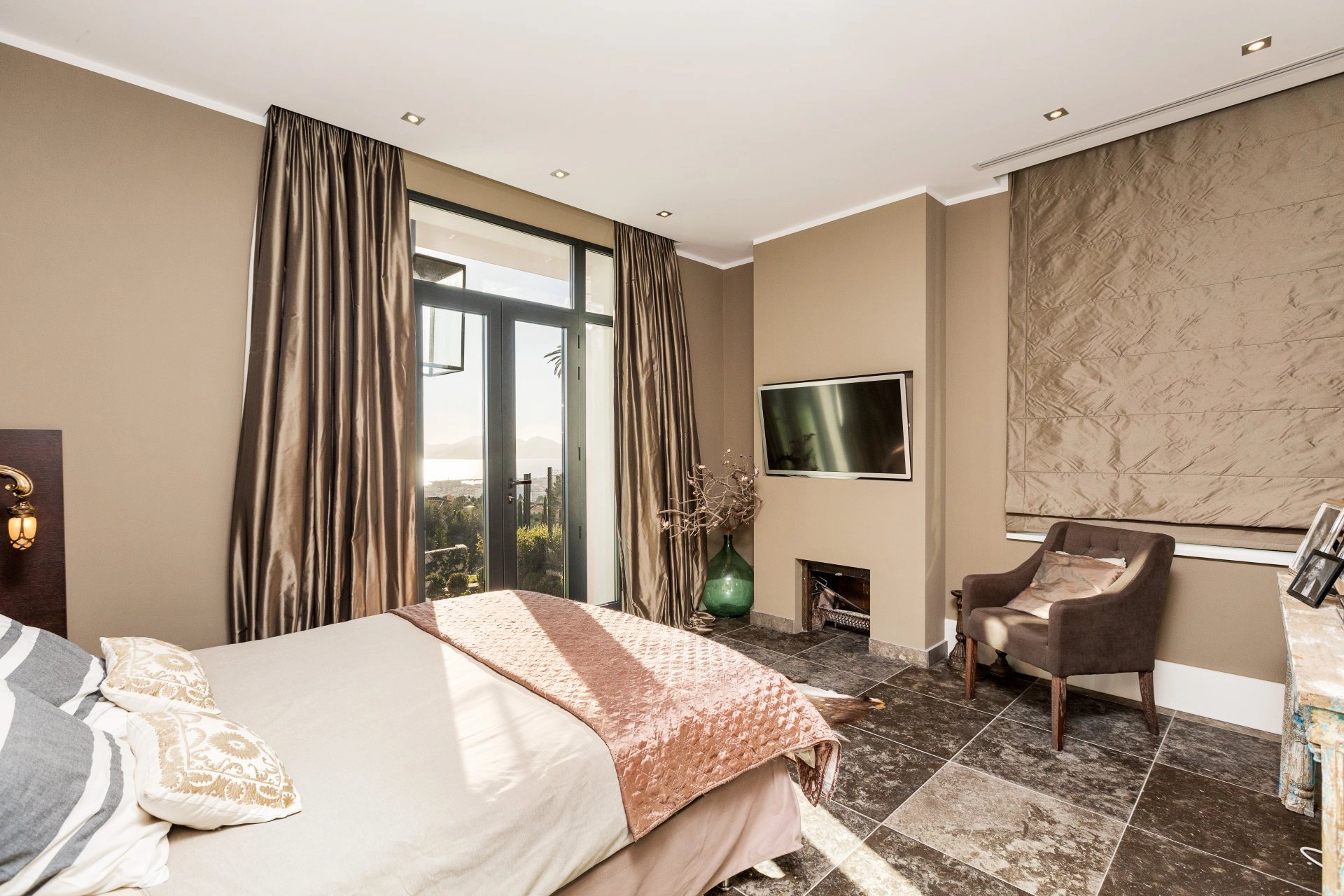 Master bedroom, TV, opening onto the garden, sea view - Dressing - Ensuite bathroom / Shower / WC
