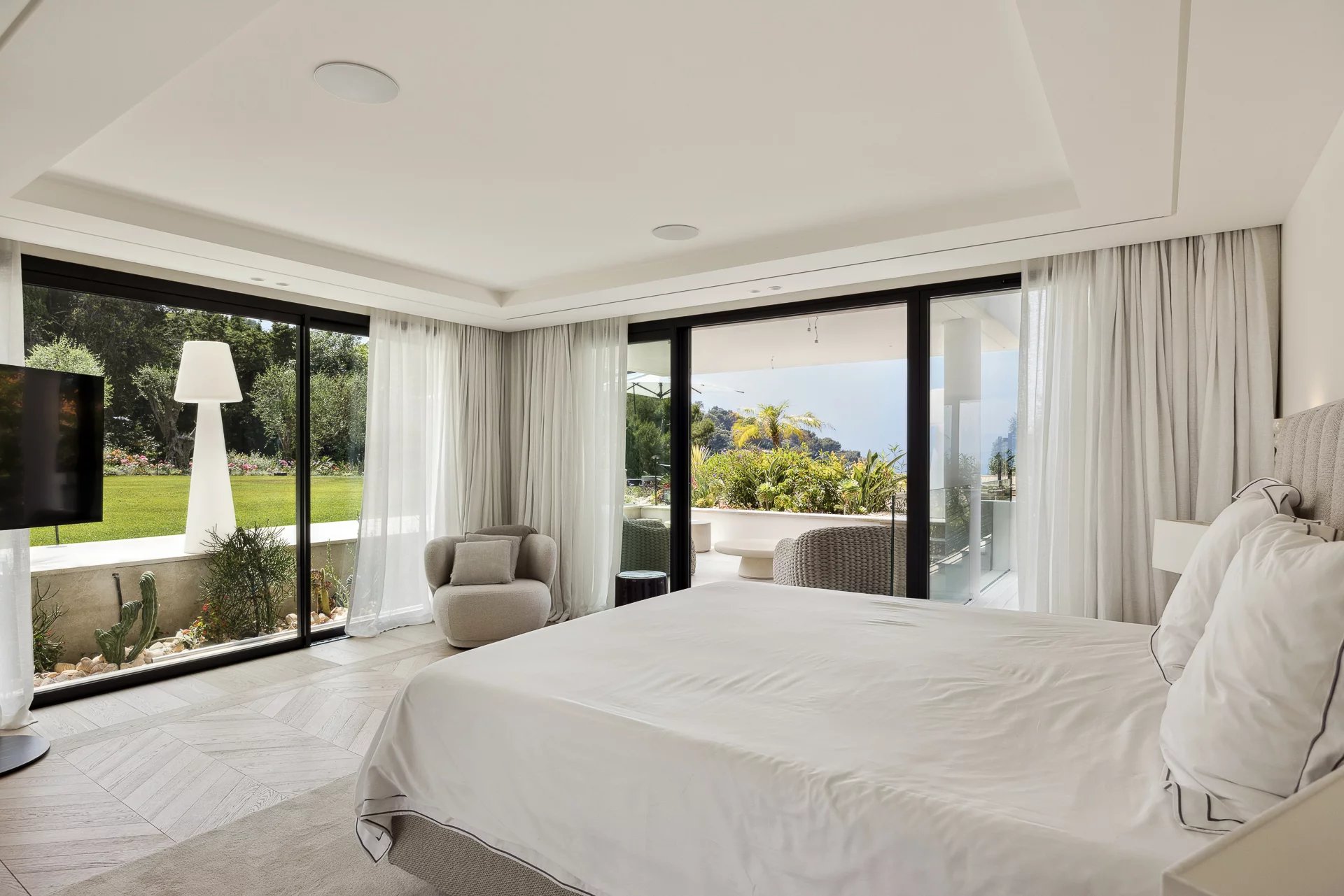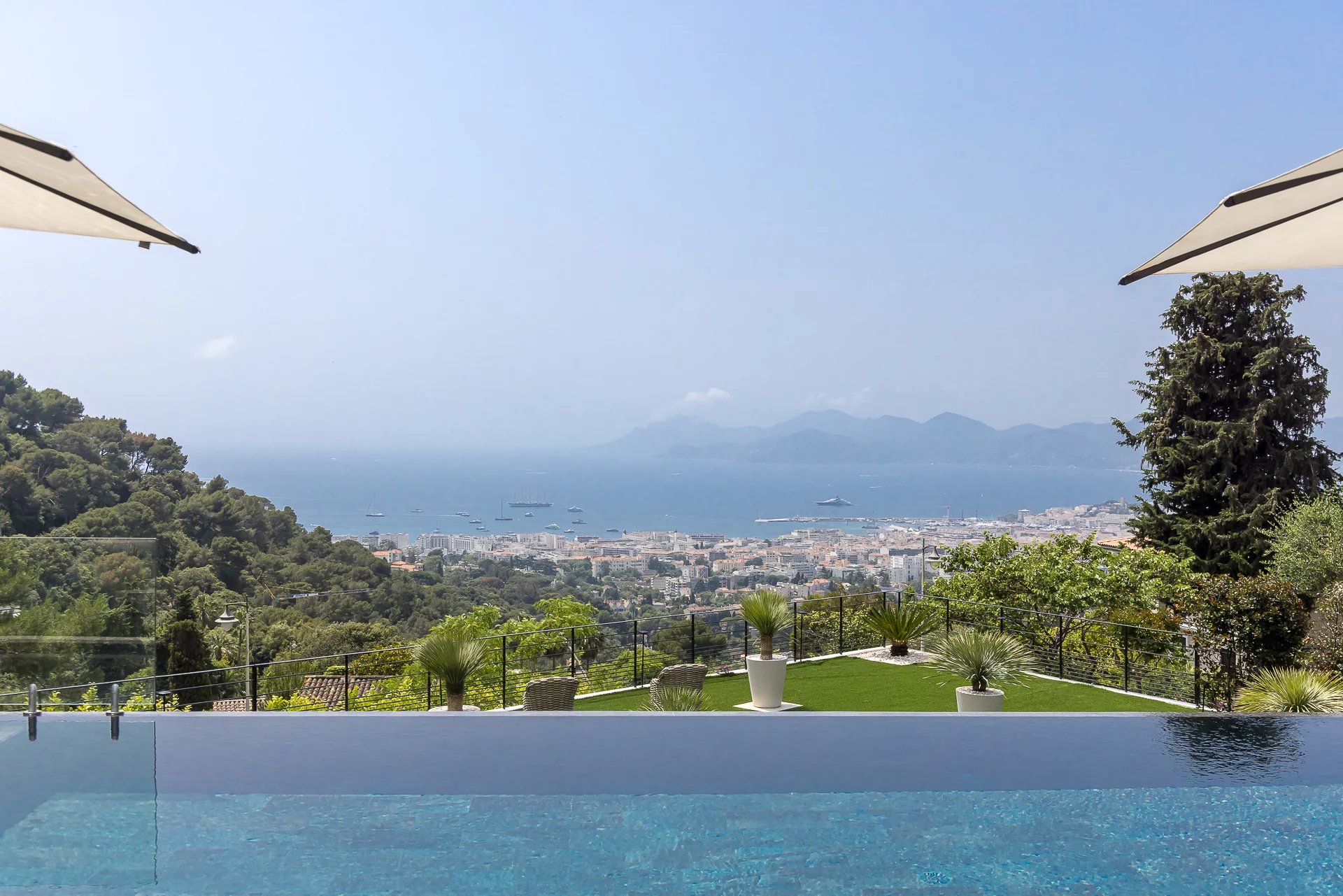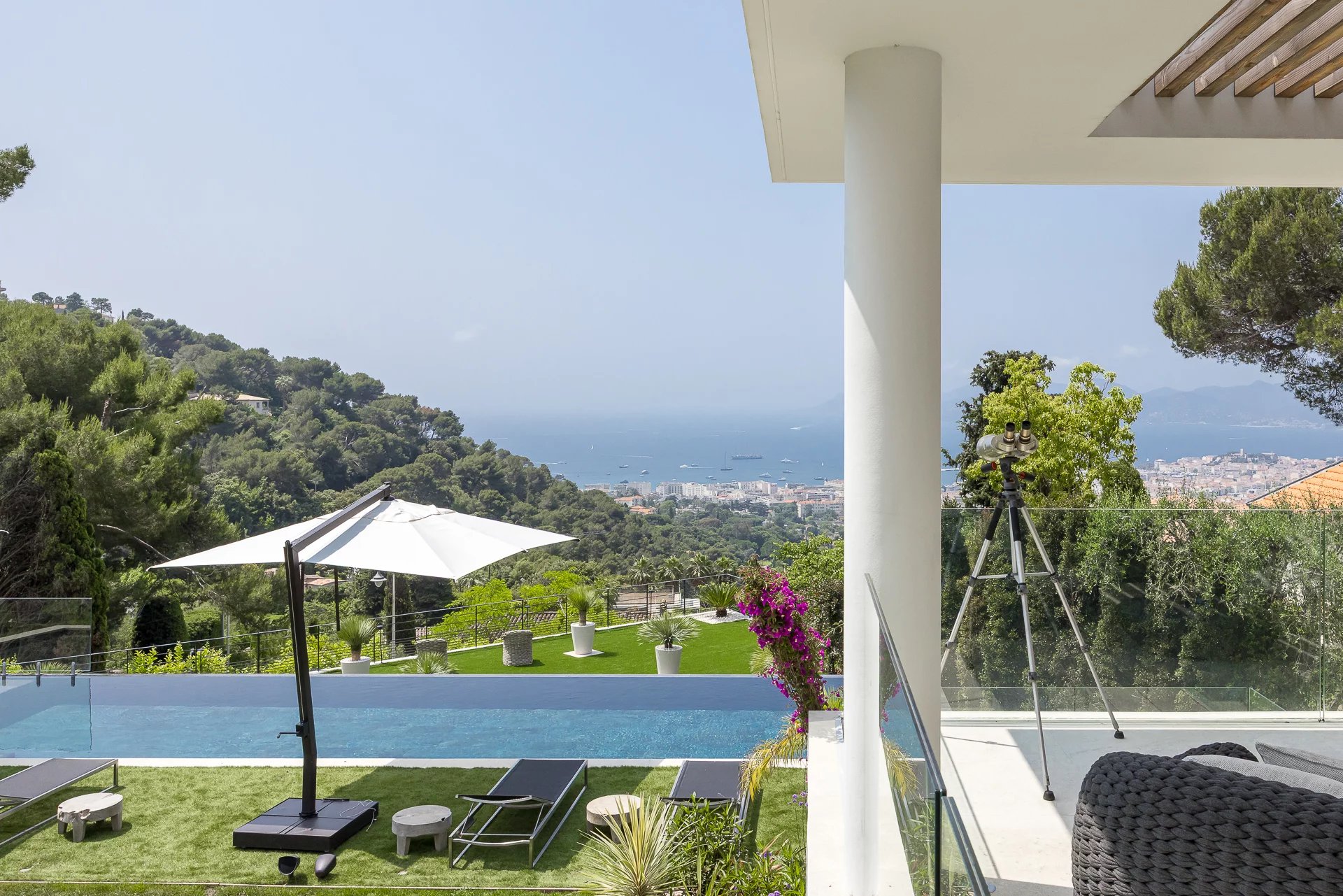 Rare. In the heart of La Californie, in a dominant position overlooking the Bay of Cannes and the Esterel mountains, this exceptional contemporary-style property has been completely and recently renovated by a renowned architect. Covering approximately 660 m², it offers beautiful reception areas opening onto large terraces facing the sea, a beautiful landscaped garden, and a swimming pool. There is also a separate caretaker's apartment, a gym, a sauna, a steam room, a wine cellar, and six en-suite bedrooms.