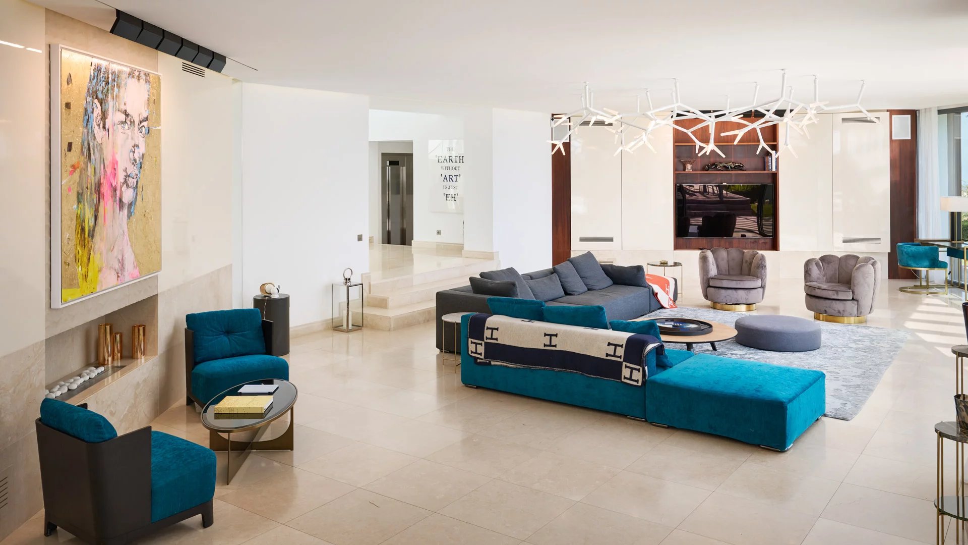 This south facing villa, fully air conditioned, with a surface area of about 550 sq.m comprises :