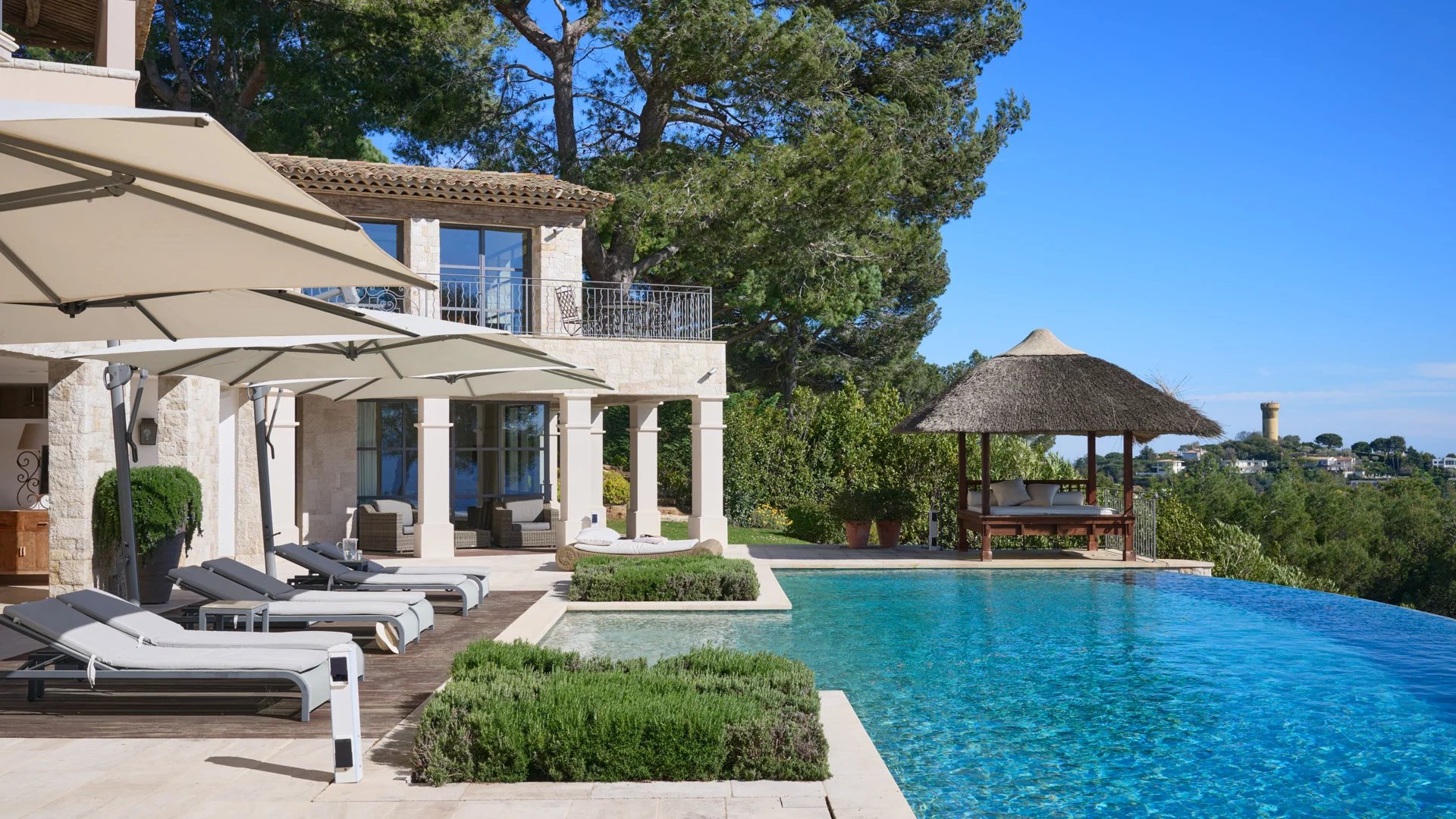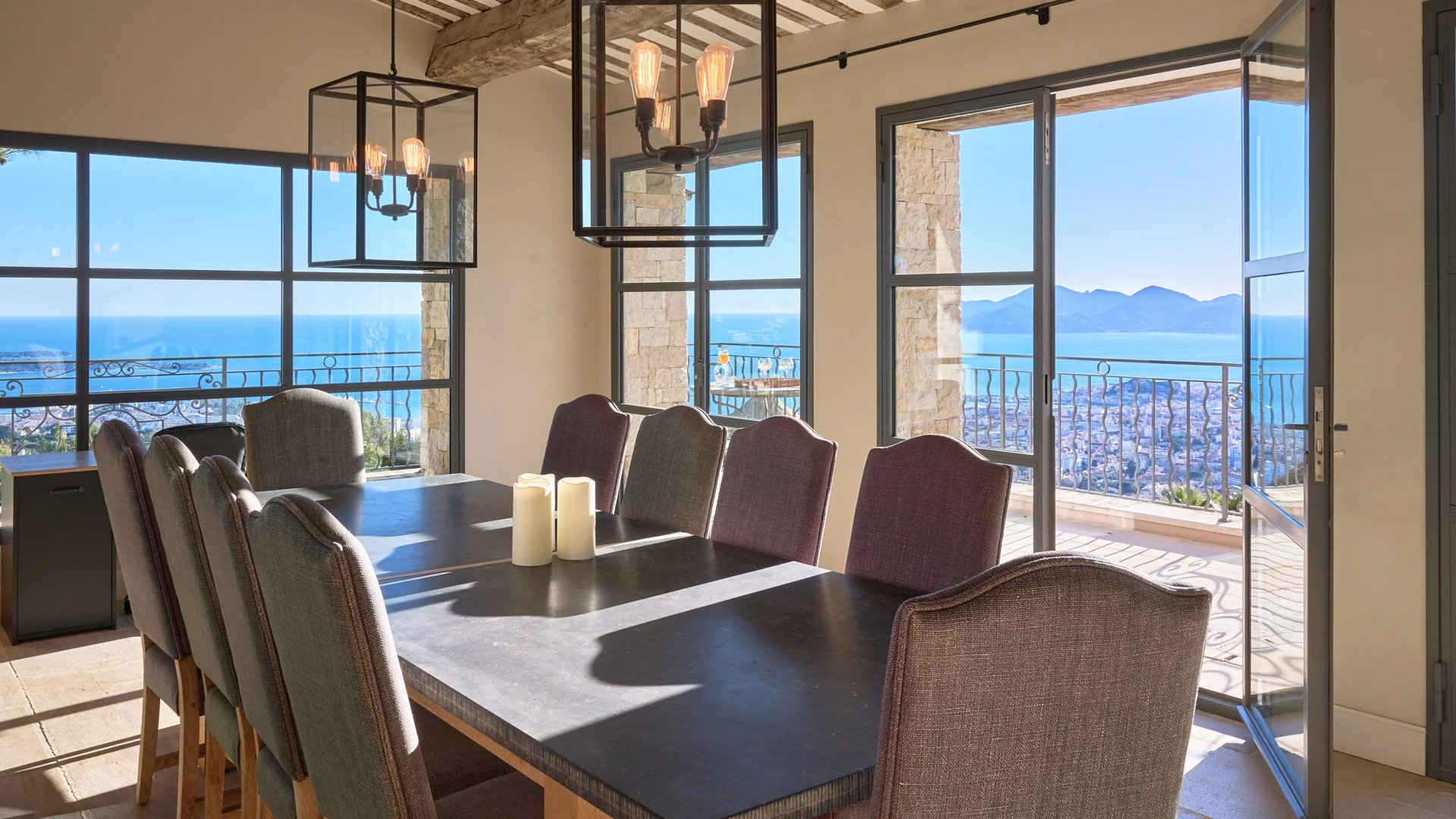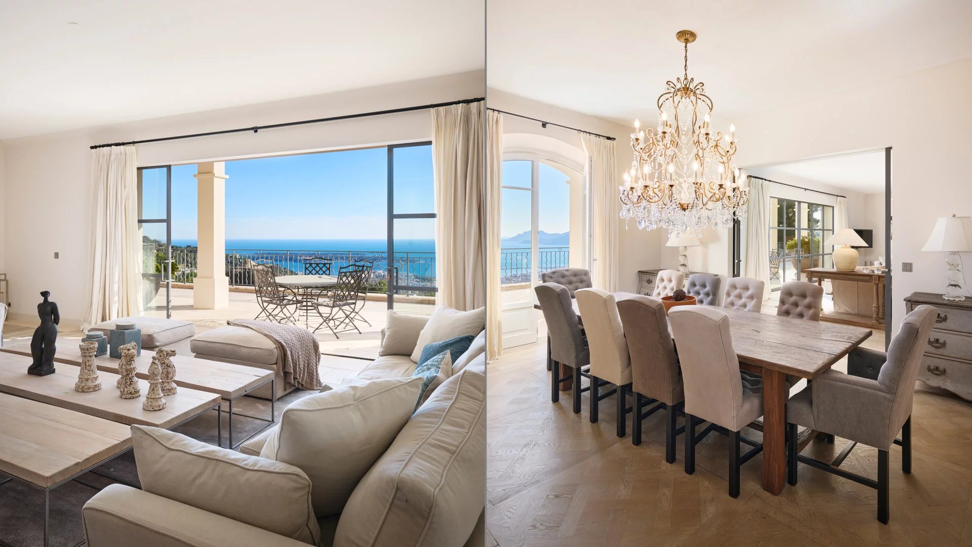 On the heights of Cannes, offering a panoramic view of the Bay of Cannes, this magnificent villa fully renovated in a contemporary style is set in the heart of a park of 7 700 sq.m. The fully air-conditioned villa of 500 sq.m impresses with its generous volumes, the top of the range appointments throughout and its large terraces.