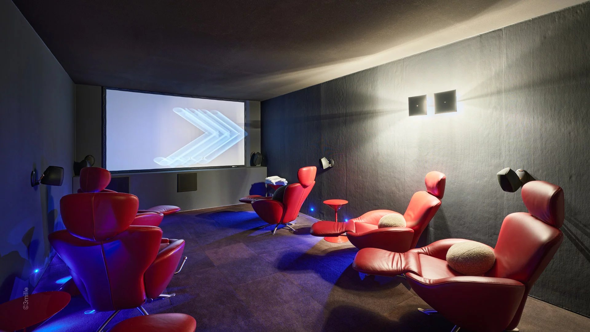 The next level reserves a sports room with table football and bar area, two shower rooms, a sauna, toilets, a cinema room, a laundry room equipped with 2 washing machines and 2 tumble dryers, as well as a shower and toilets for staff.
