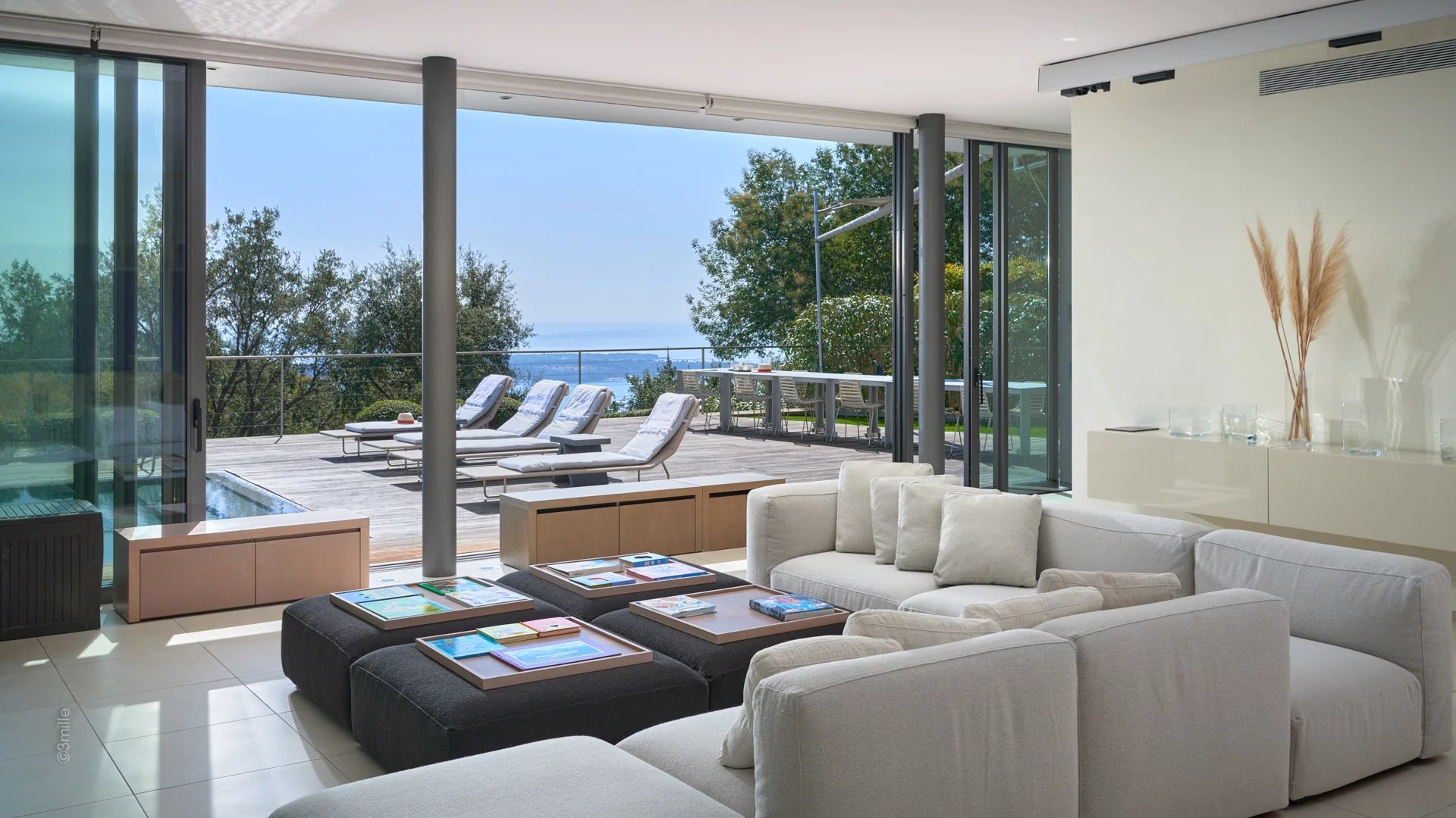 Welcome to this superb contemporary villa, a modern oasis of 800 sq.m spread over 4 levels, with a lift, nestling in the heart of a vast 6,000 sq.m plot. This air-conditioned residence offers a luxurious experience with breathtaking panoramic sea views stretching from the Lérins Islands to the majestic Cap d'Antibes.