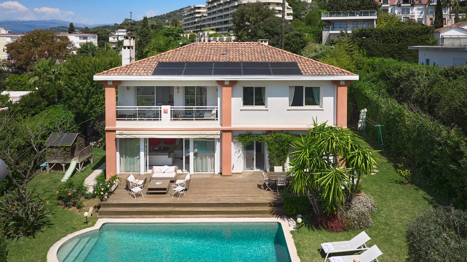 Modern villa built on two levels with 230 sq.m living area, recently renovated and fully air-conditioned near the centre of Cannes. Grounds of 900 sq.m.