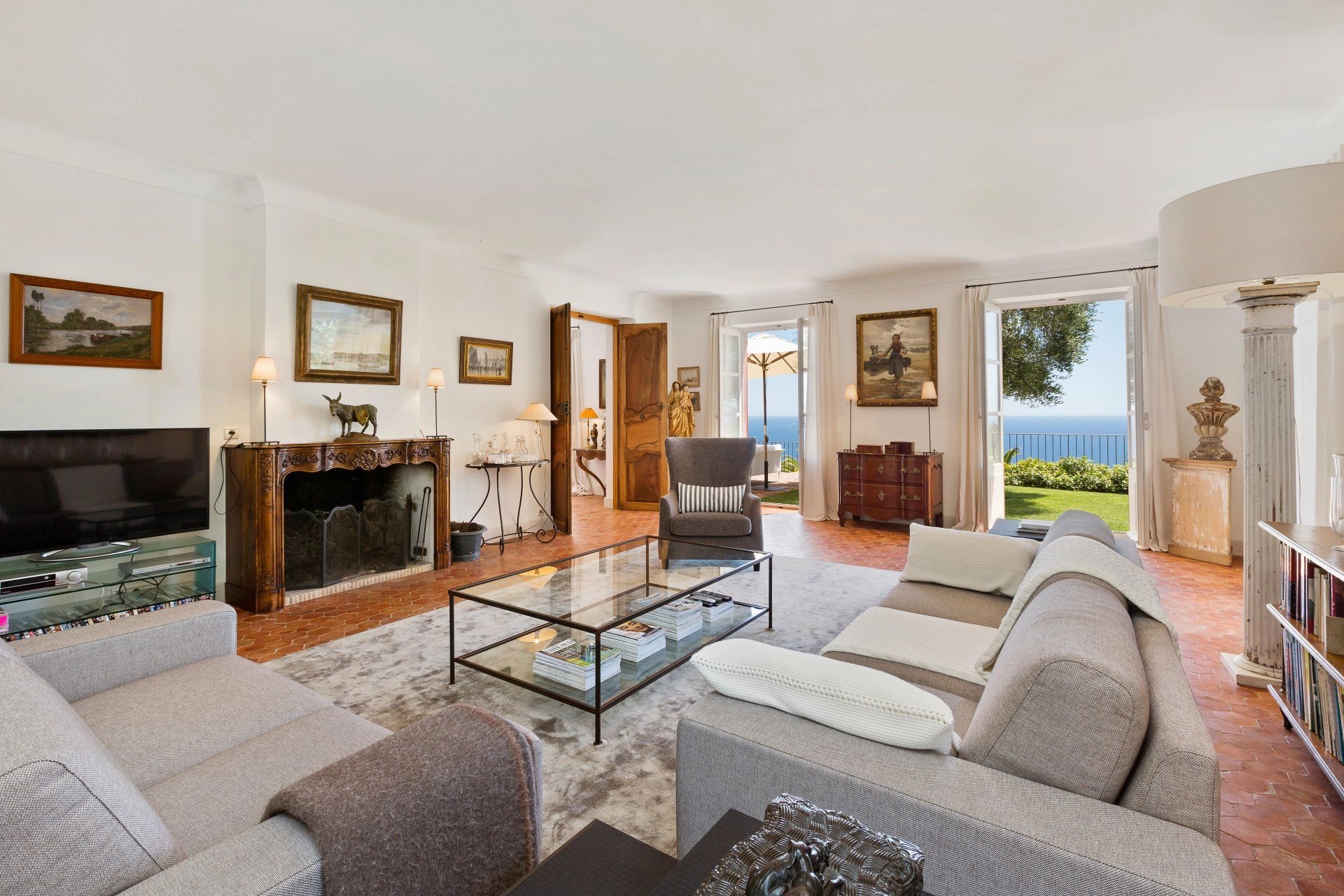 Entrance giving onto the living room (TV) opening onto the terrace and the garden, sea view