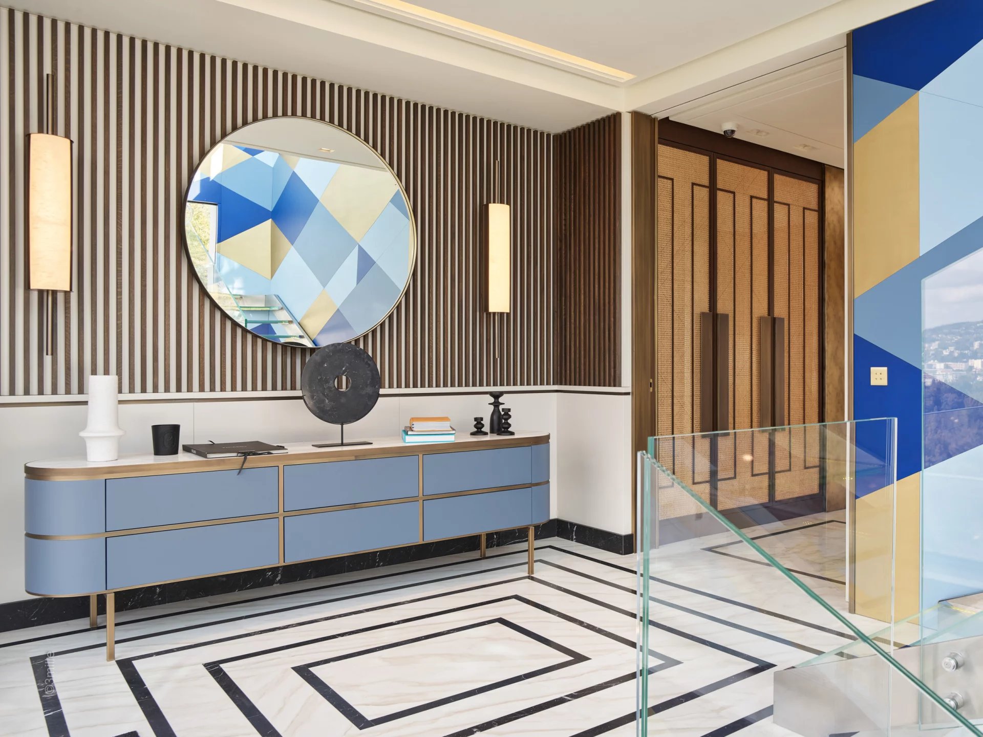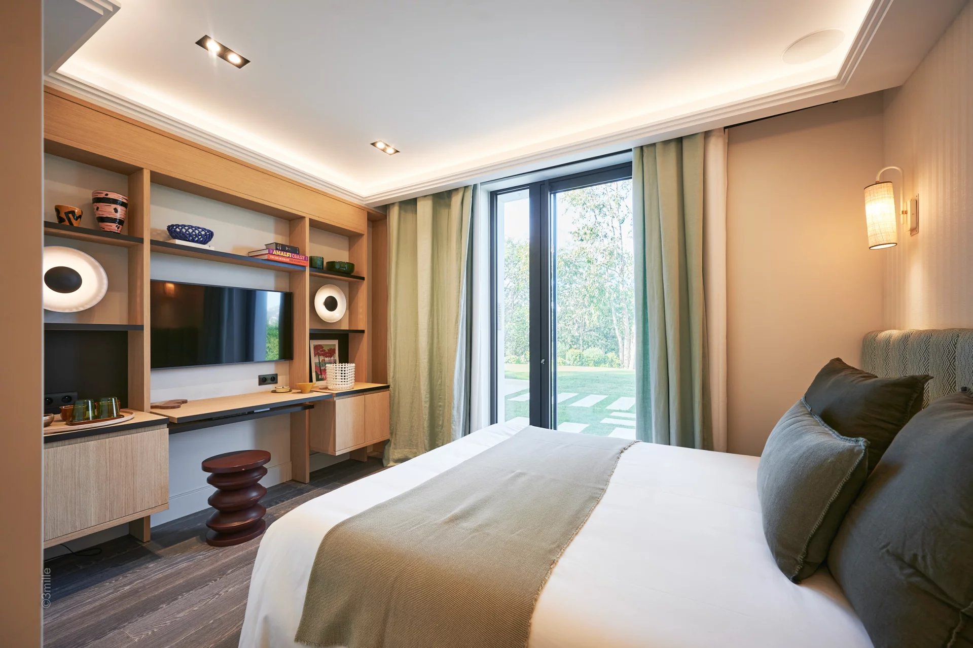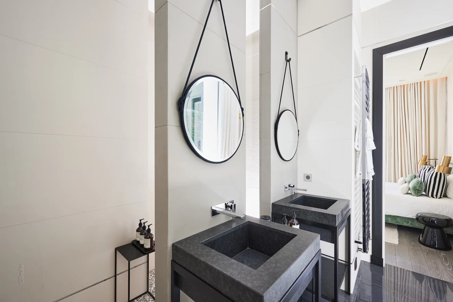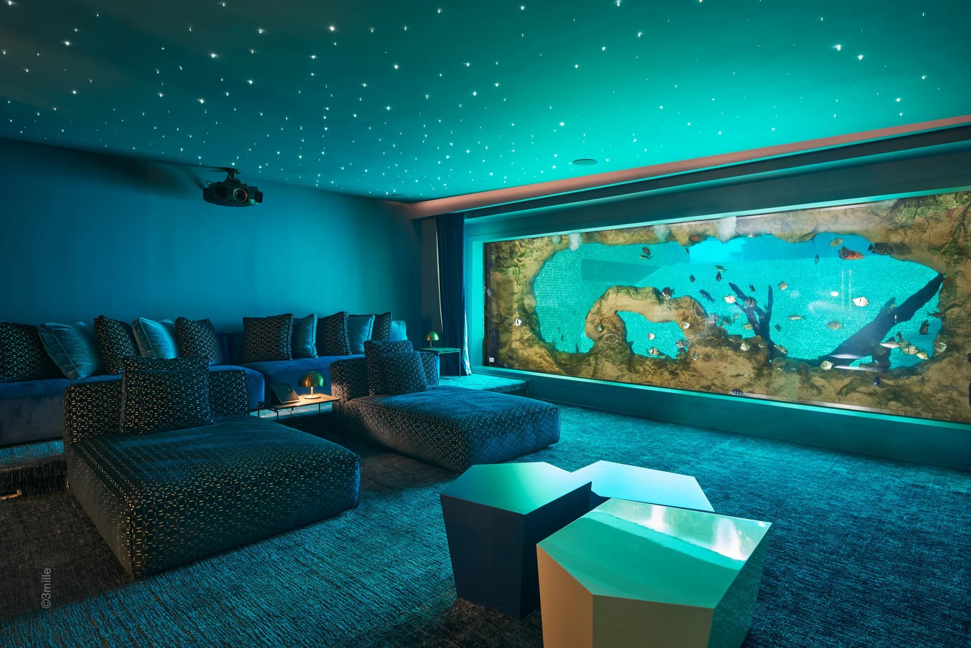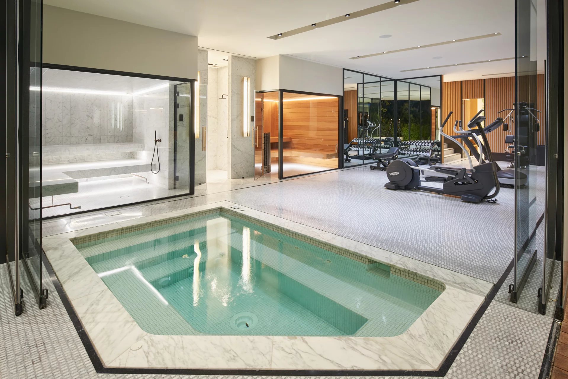 • The garden level features two en-suite bedrooms, two bedrooms sharing a bathroom, a cinema room, and a full spa with hammam, sauna, massage room, and jacuzzi, as well as a fitness room for wellness enthusiasts.