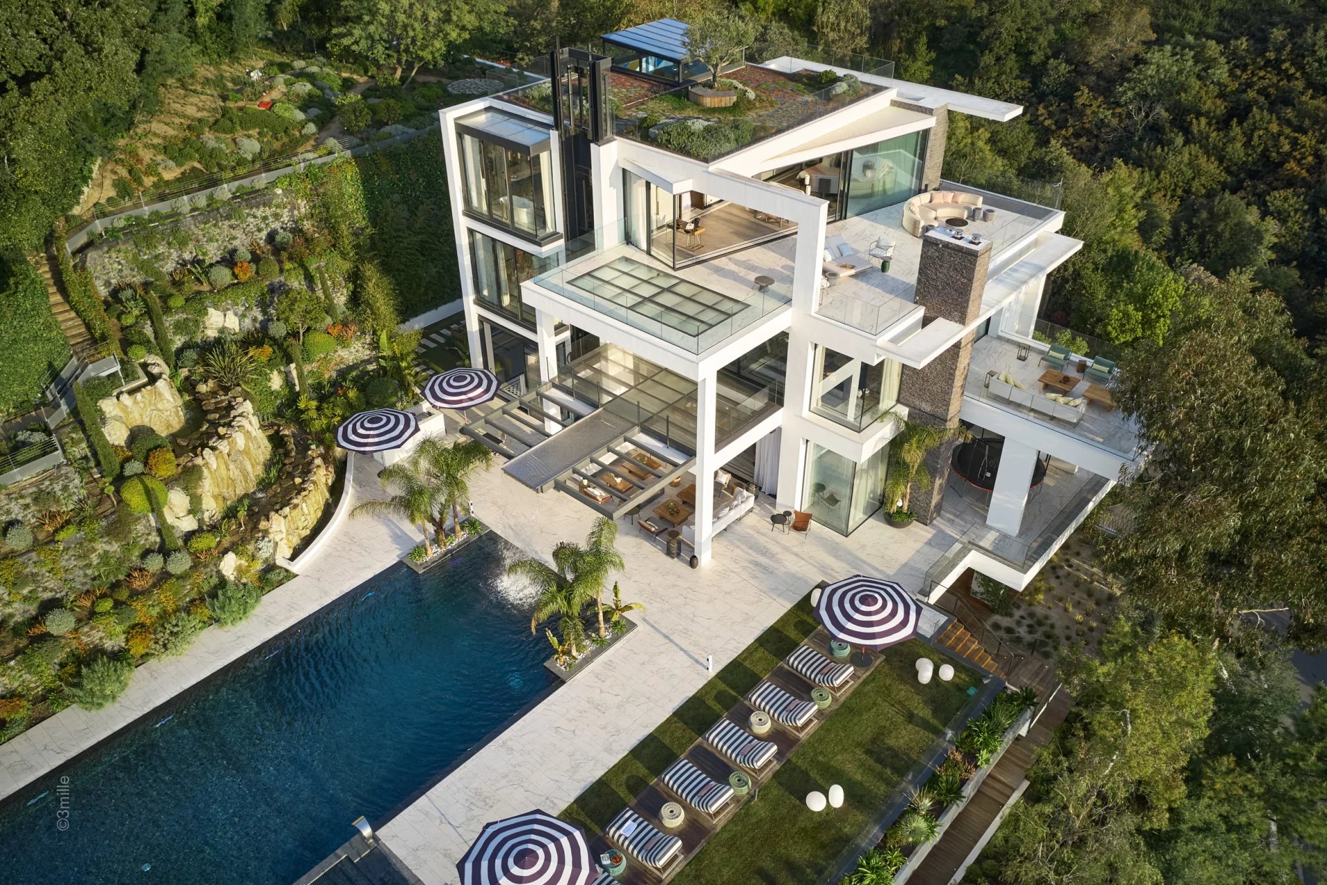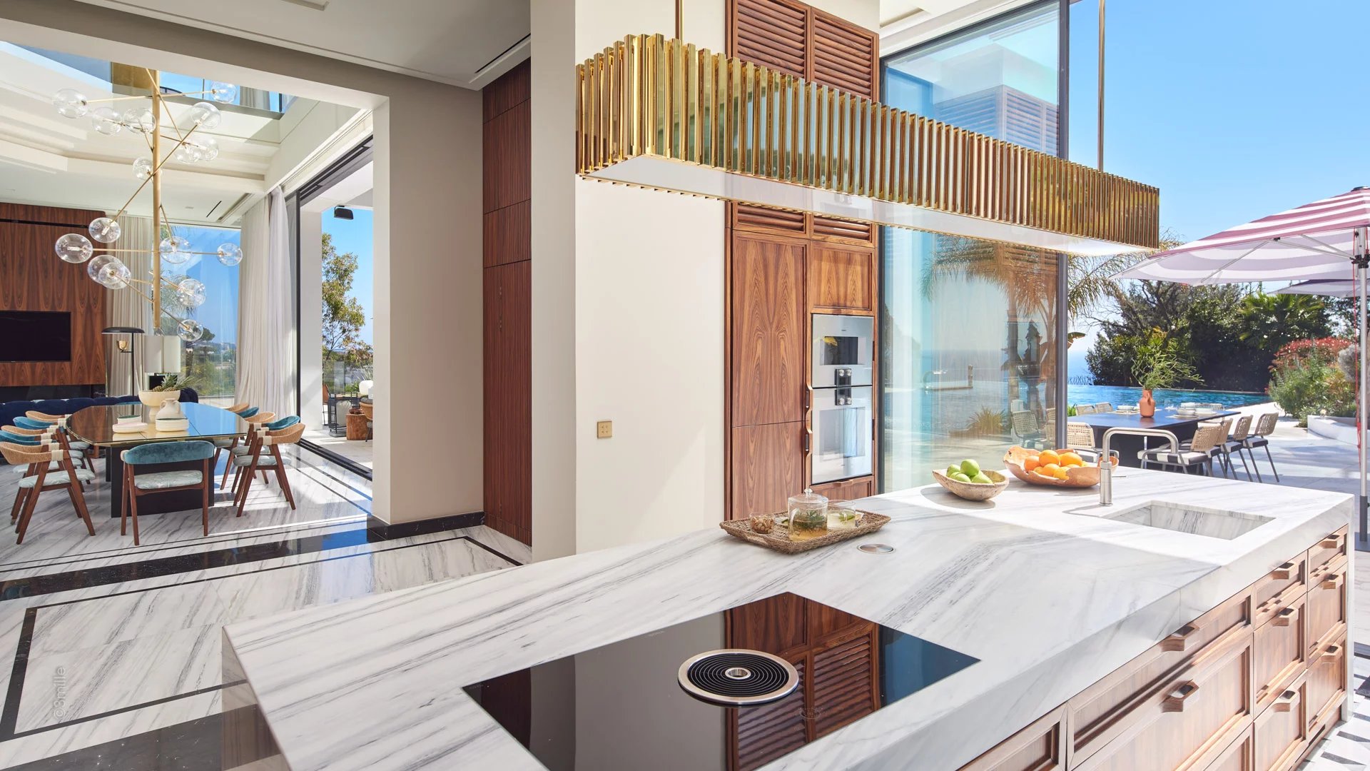 Also accessible by an elevator, the main villa unfolds elegantly over multiple levels: