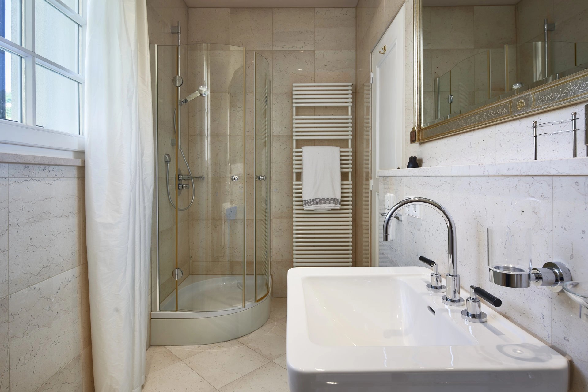 Air-conditioned bedroom (double bed, TV) with shower room / WC