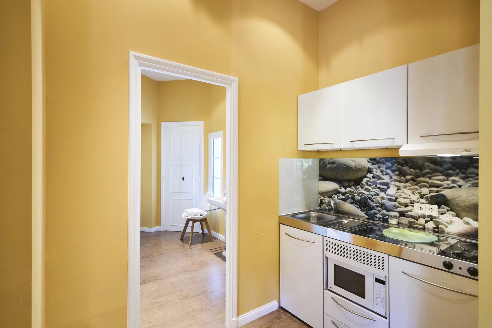 Independent apartment with bedroom (double bed, TV), bathroom, lounge and kitchenette.
