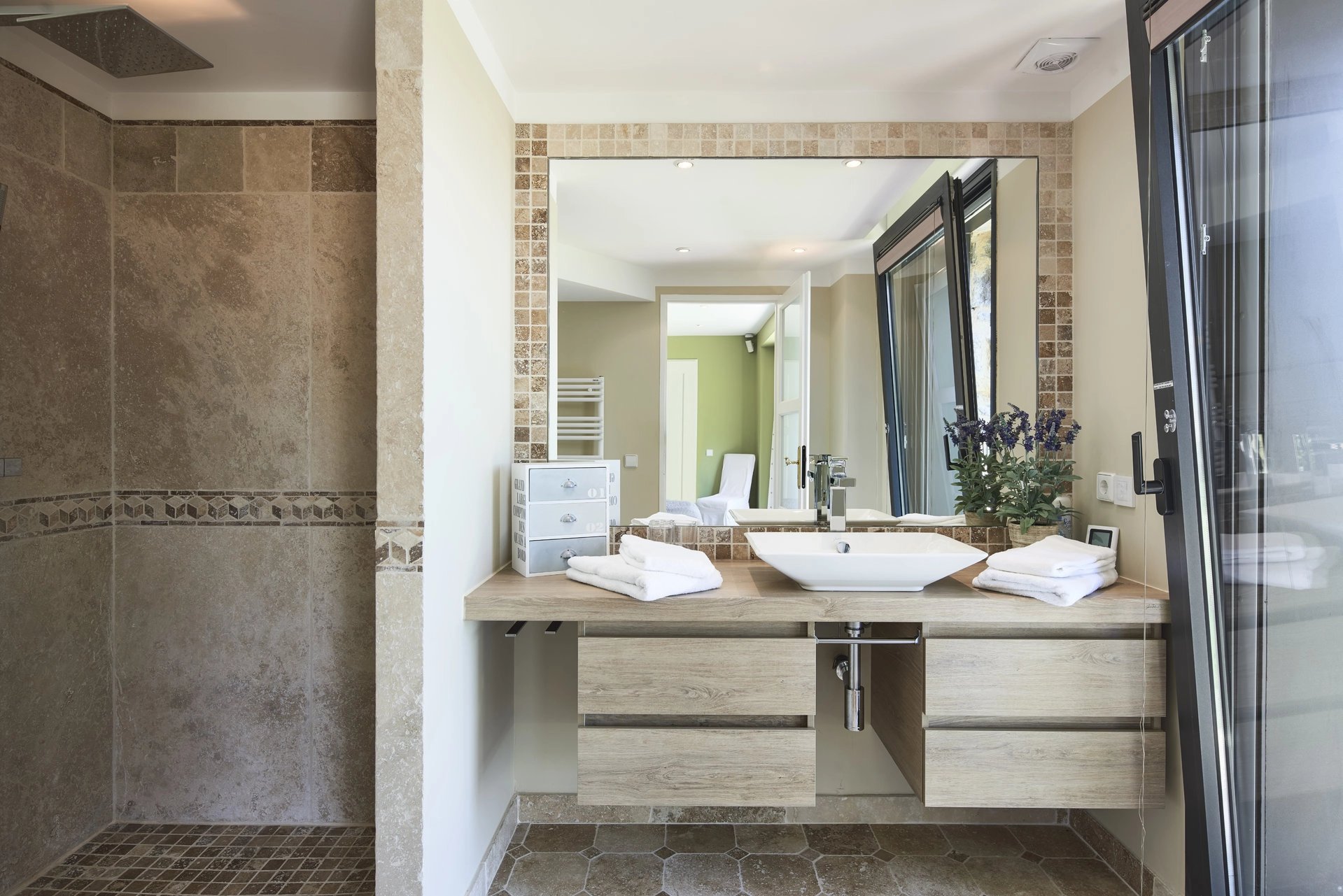 Air-conditioned bedroom (double bed, TV) opening onto a terrace, shower-room / WC
