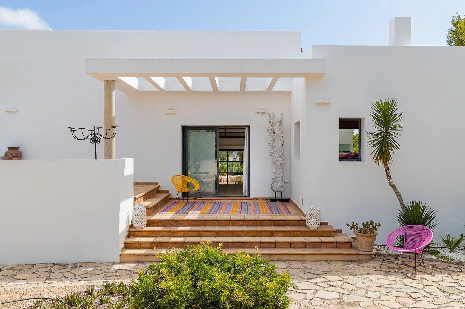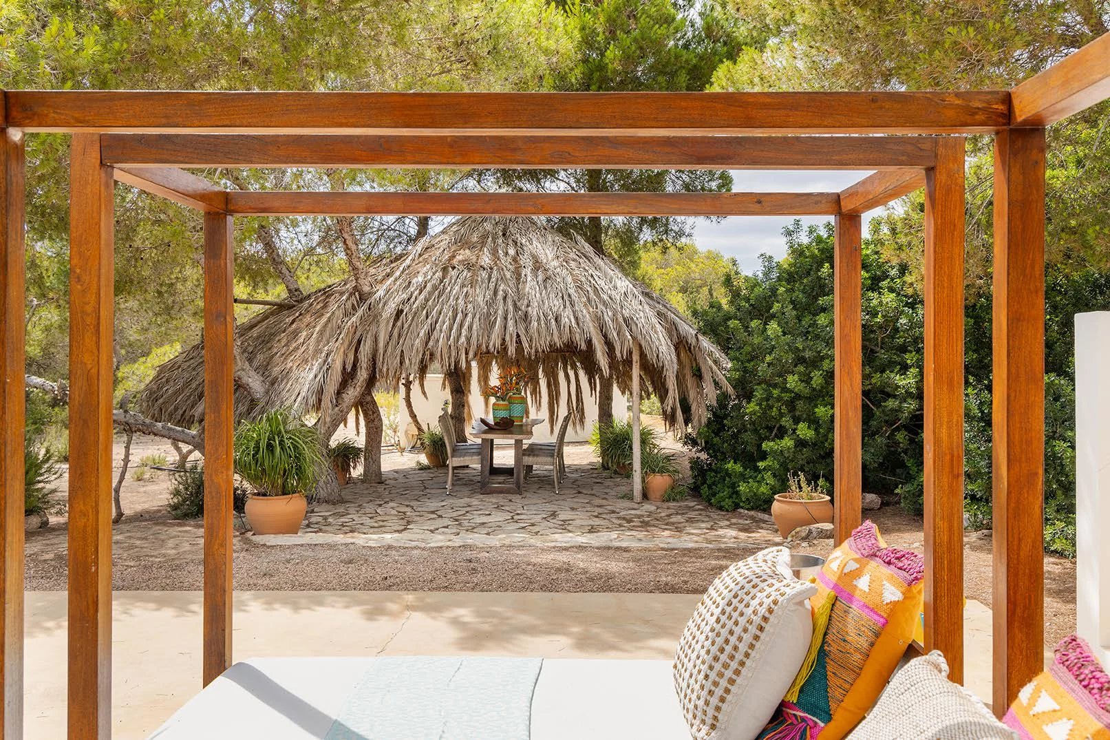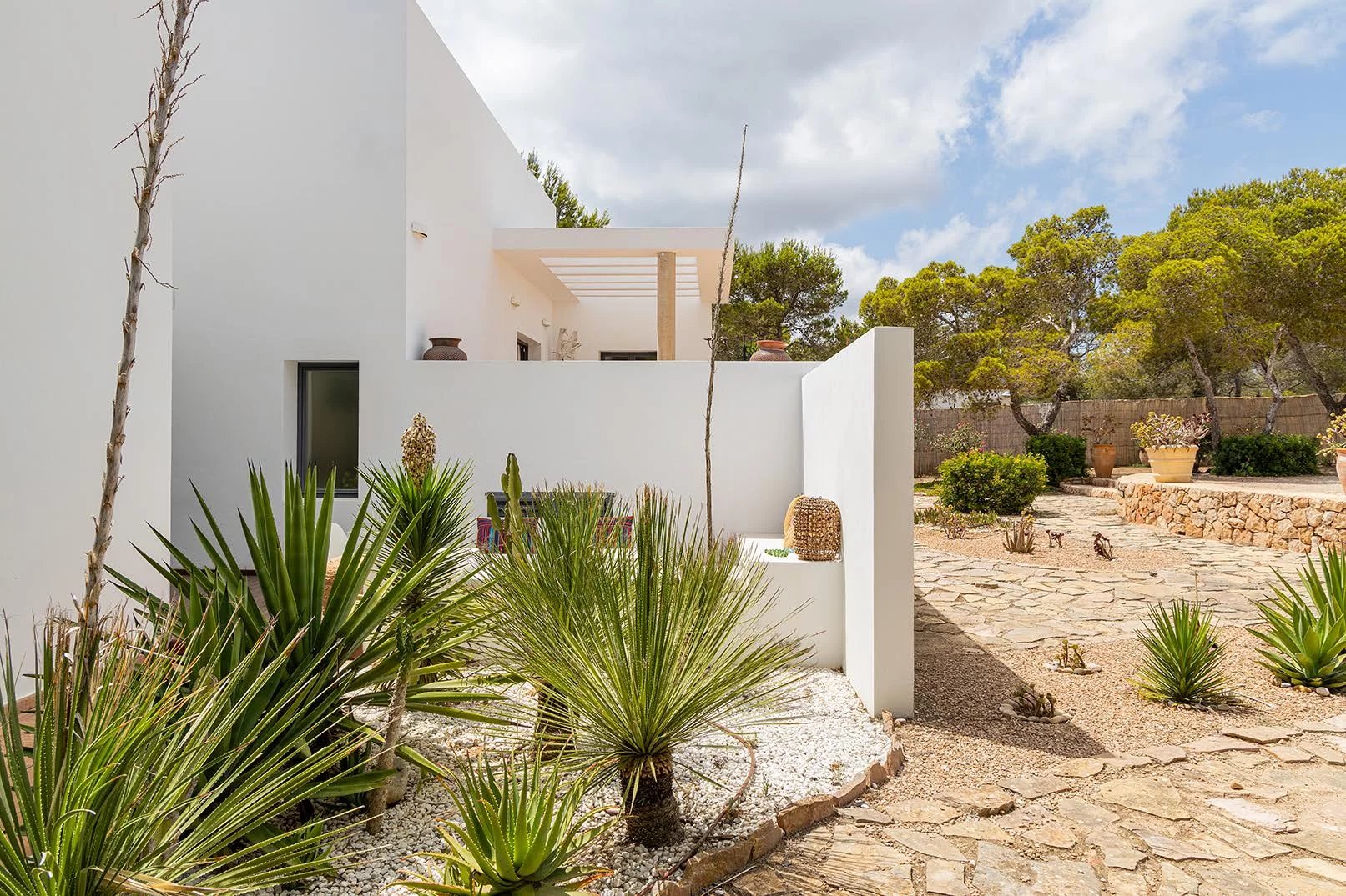 Located in the middle of nature, this spectacular villa is just 10 minutes walk from the beaches on both sides of the island; on one side, there is Migjorn beach and on the other side is the area of Es Caló. Both areas have wonderful white sandy beaches and crystal clear waters, providing the possibility of multiple water activities (diving, fishing, walks, romantic sunsets, etc.).