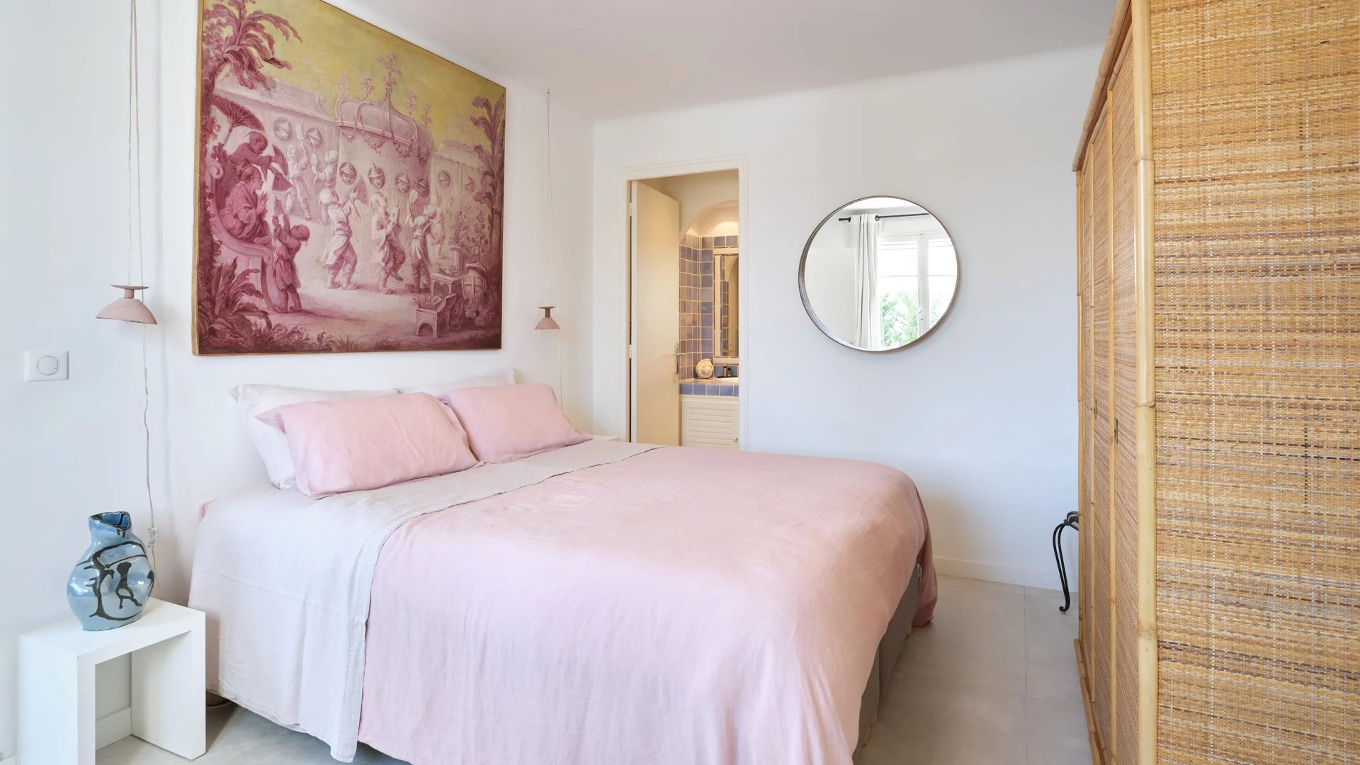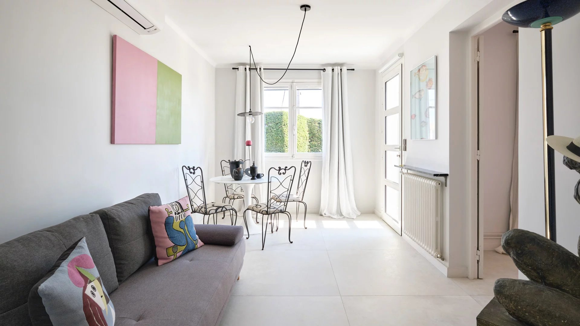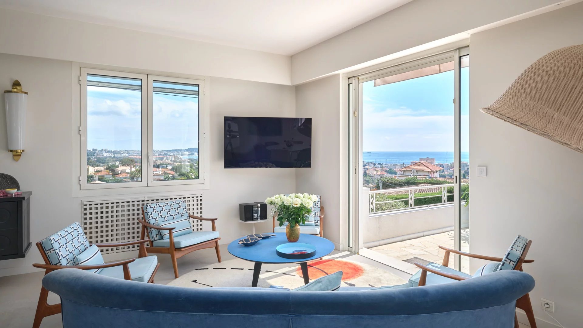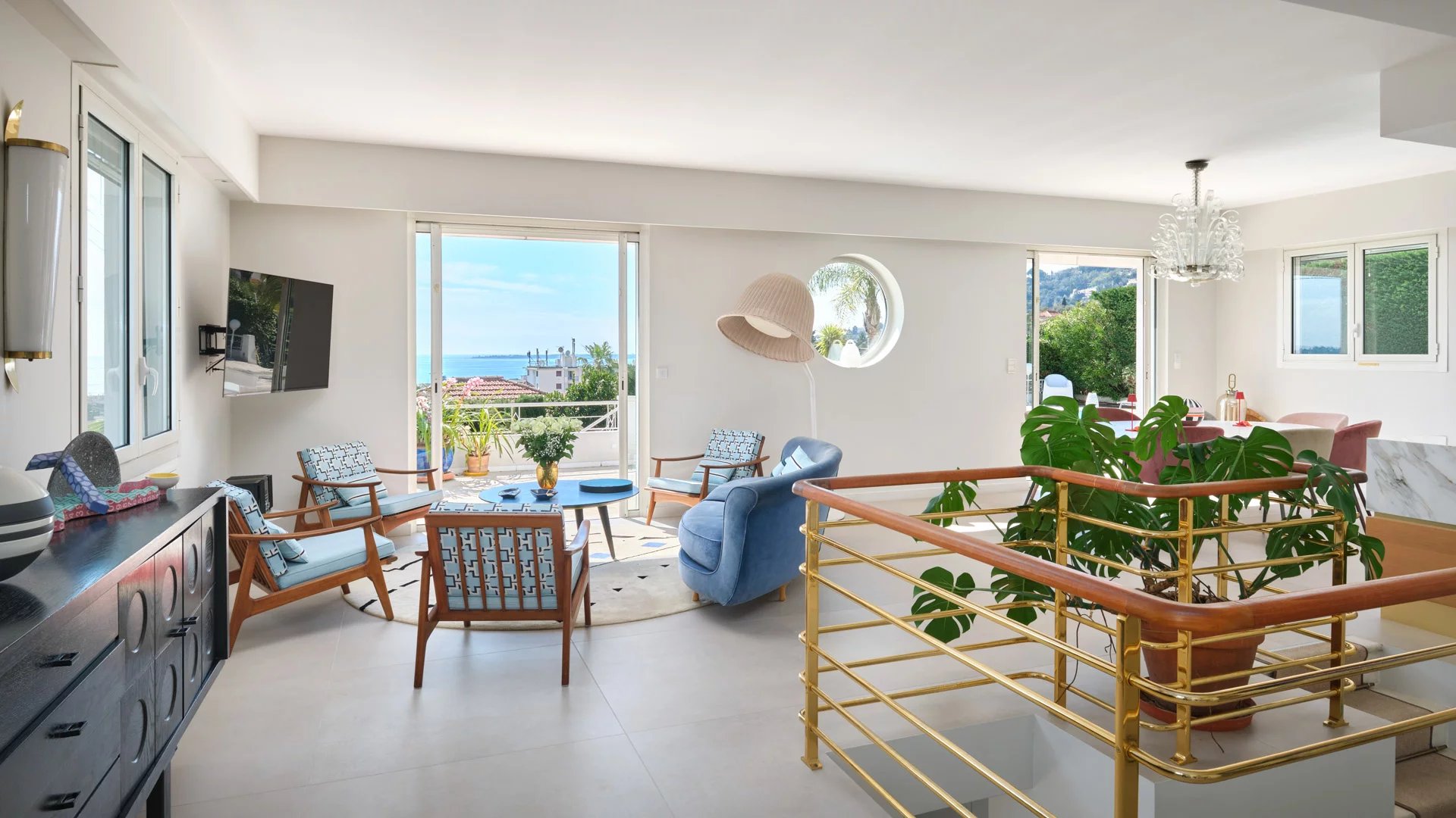 On the heights of Golfe-Juan and 800 m from the beaches, in the heart of a garden of 1,000 sq.m, modern villa of about 180 sq.m living area enjoying beautiful sea views.
