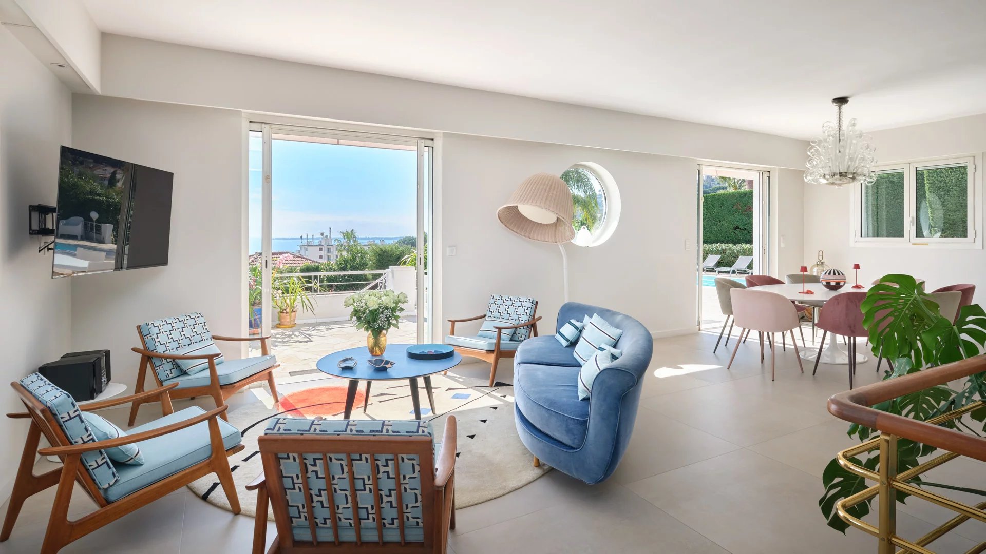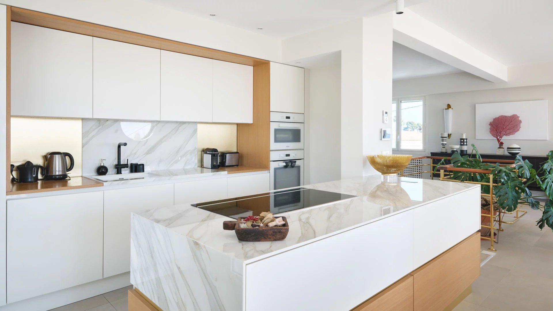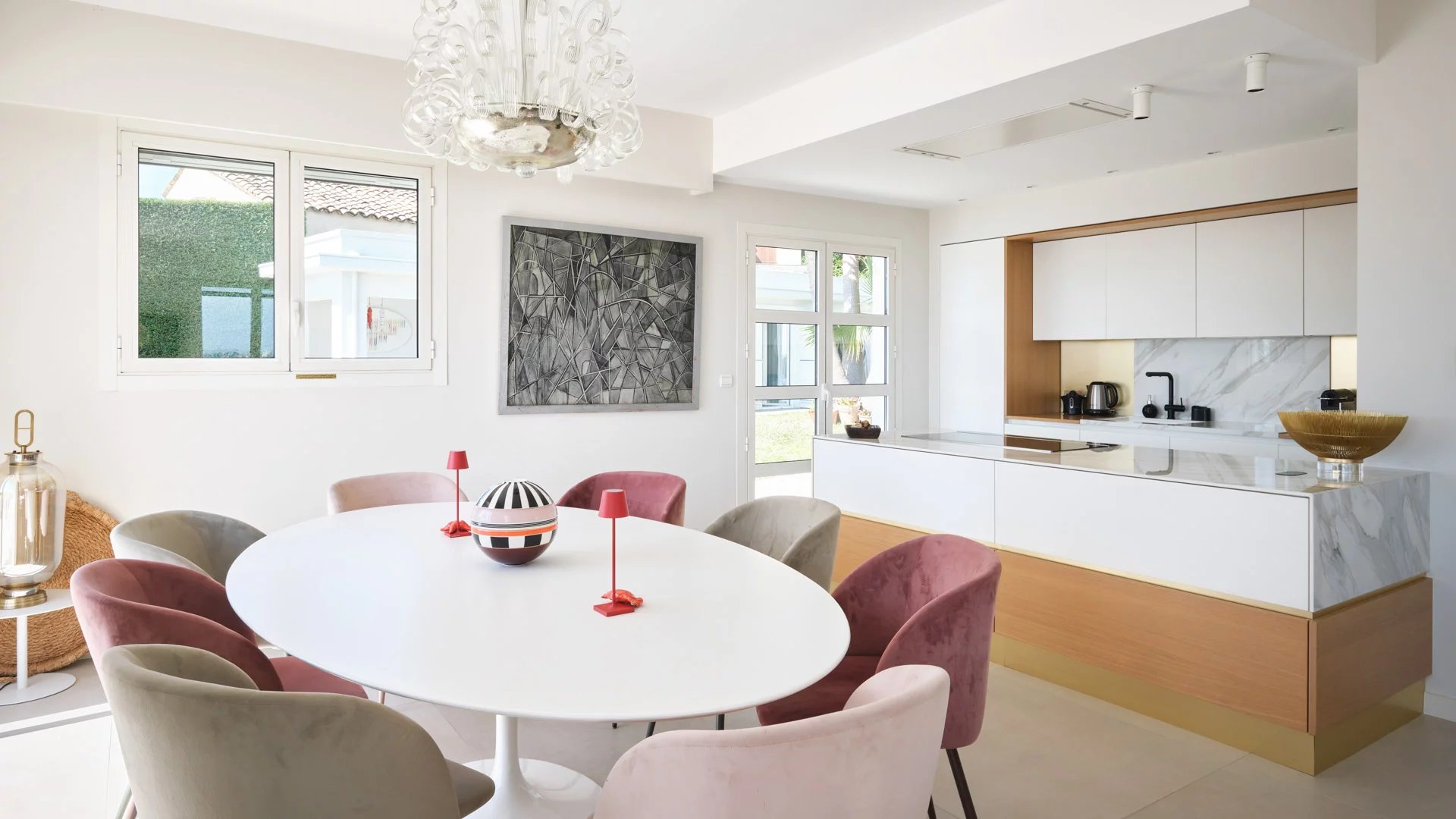 Reception opening onto the garden and the swimming pool, comprising living room, dining area and open kitchen