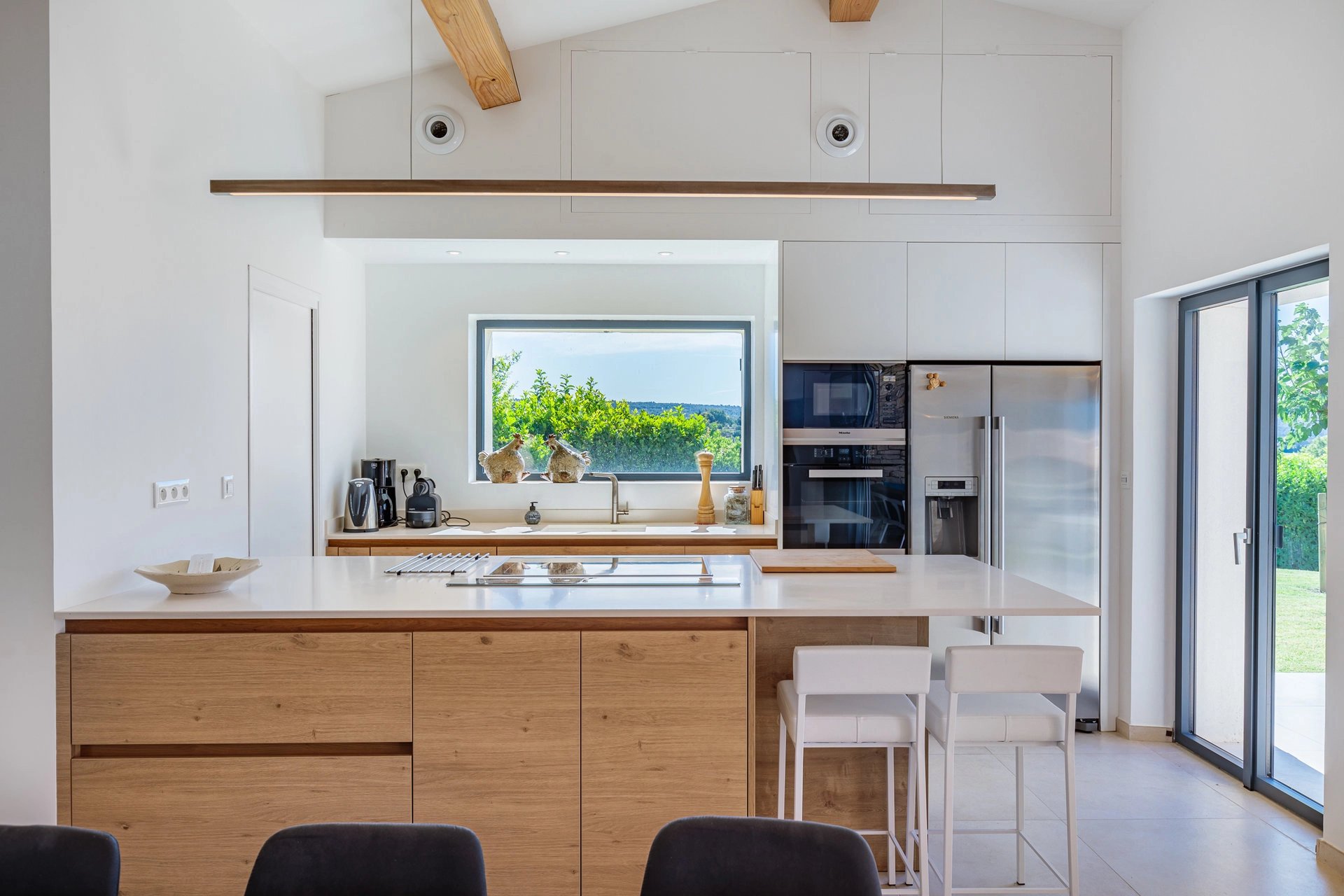 Learn moreThe main house, fully air conditioned, has been carefully restored and offers a vast and bright living room, opened onto a fully equipped kitchen. Two en suite bedrooms at the garden level, an other one upstairs with its lovely terrace. Two extra independent bedrooms, each with its shower room, complete this enjoyable and restful place.