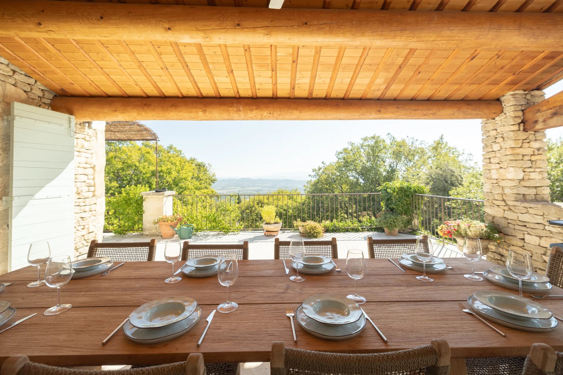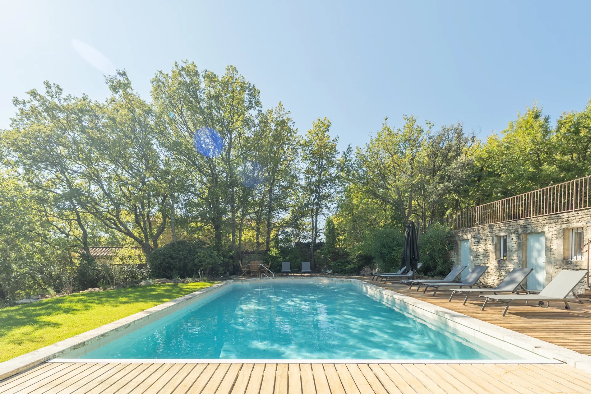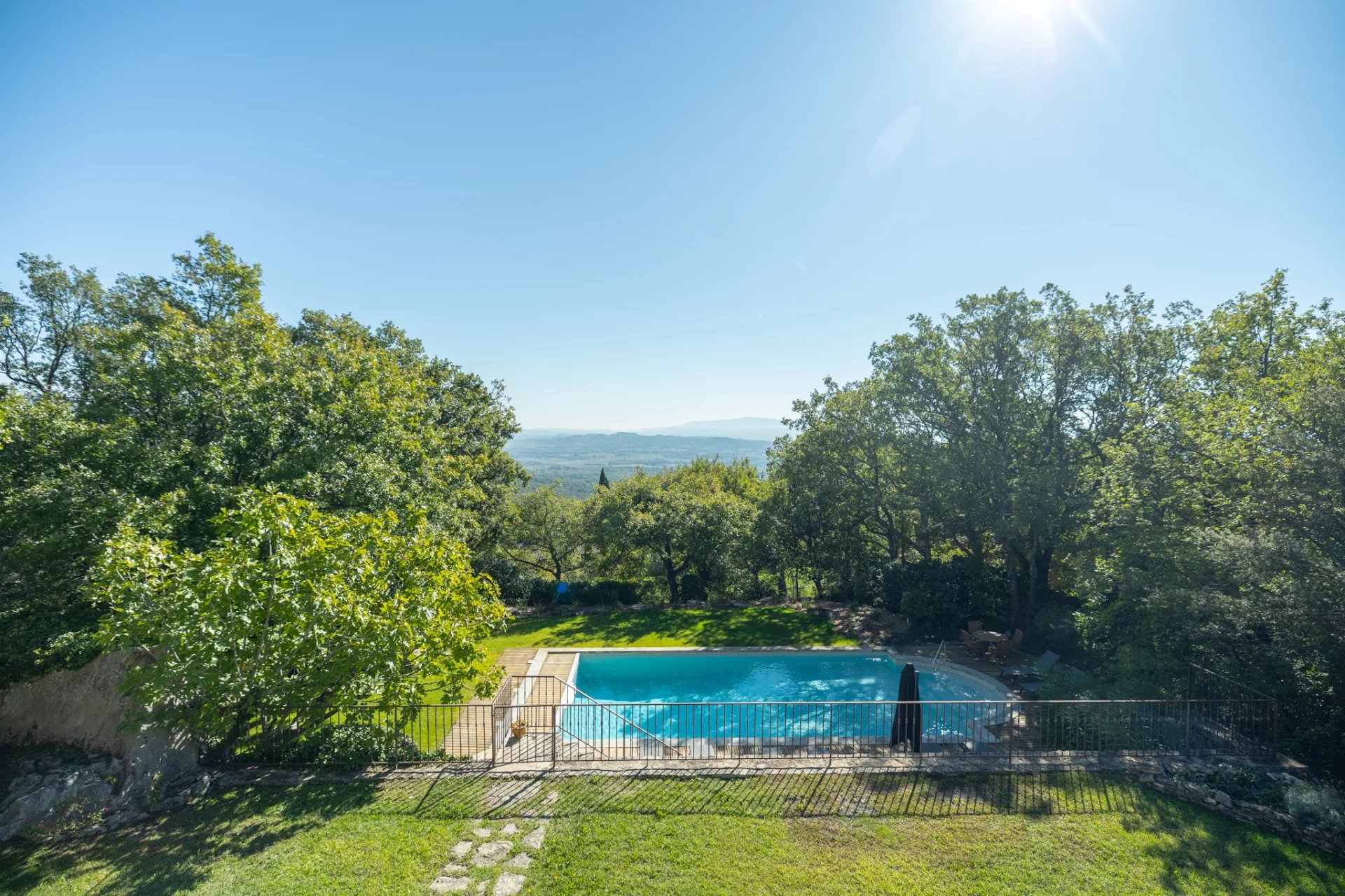 Less than a ten-minute walk from the centre of the iconic village of Gordes, yet in a peaceful location in a privileged natural setting between forest and rocks, lies this magnificent stone house with breathtaking views of the Luberon and its surroundings.