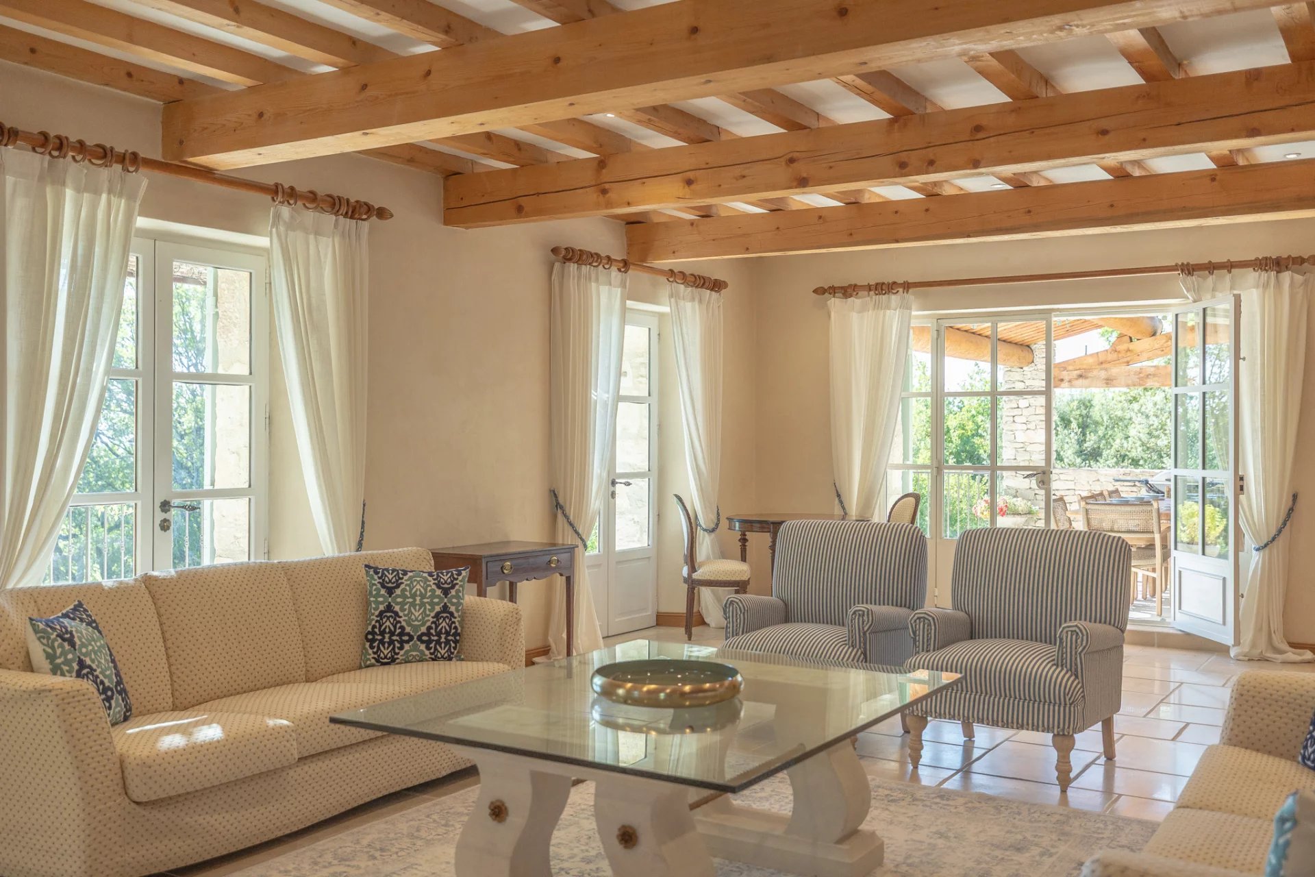 Outside, a main terrace with exceptional views for unforgettable moments of conviviality, an intimate pool area inviting relaxation and a pétanque court.