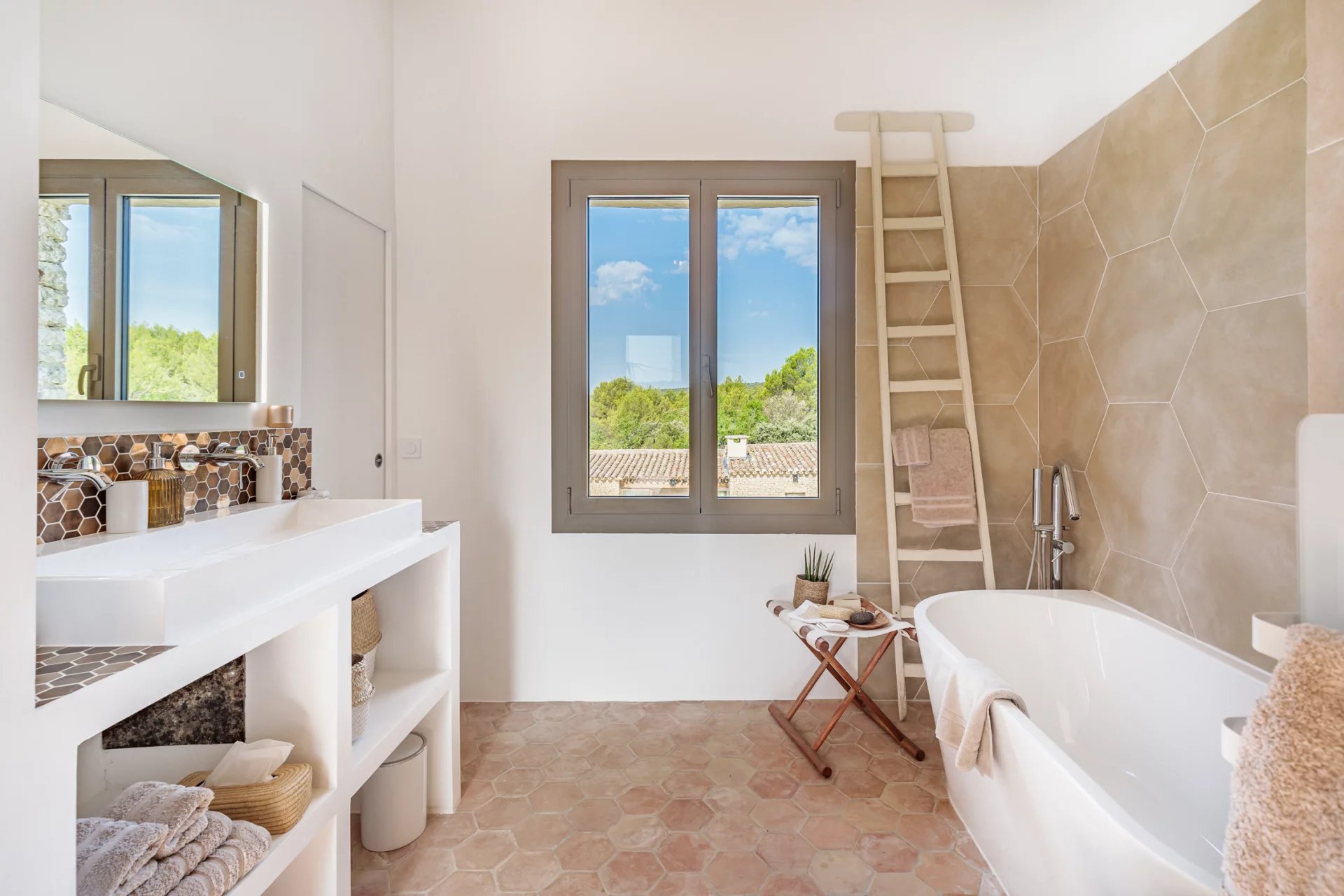The main house offers 4 bedrooms and 3 bathrooms, with bright and comfortable rooms, and a cosy and beautiful interior design.