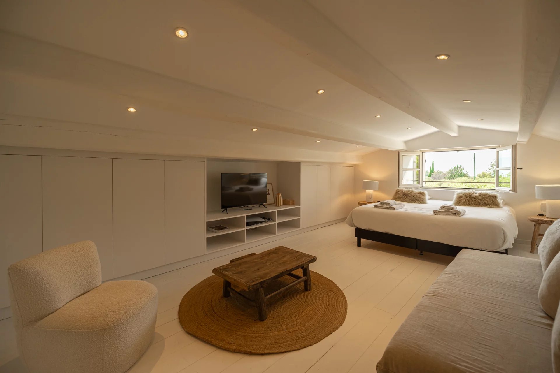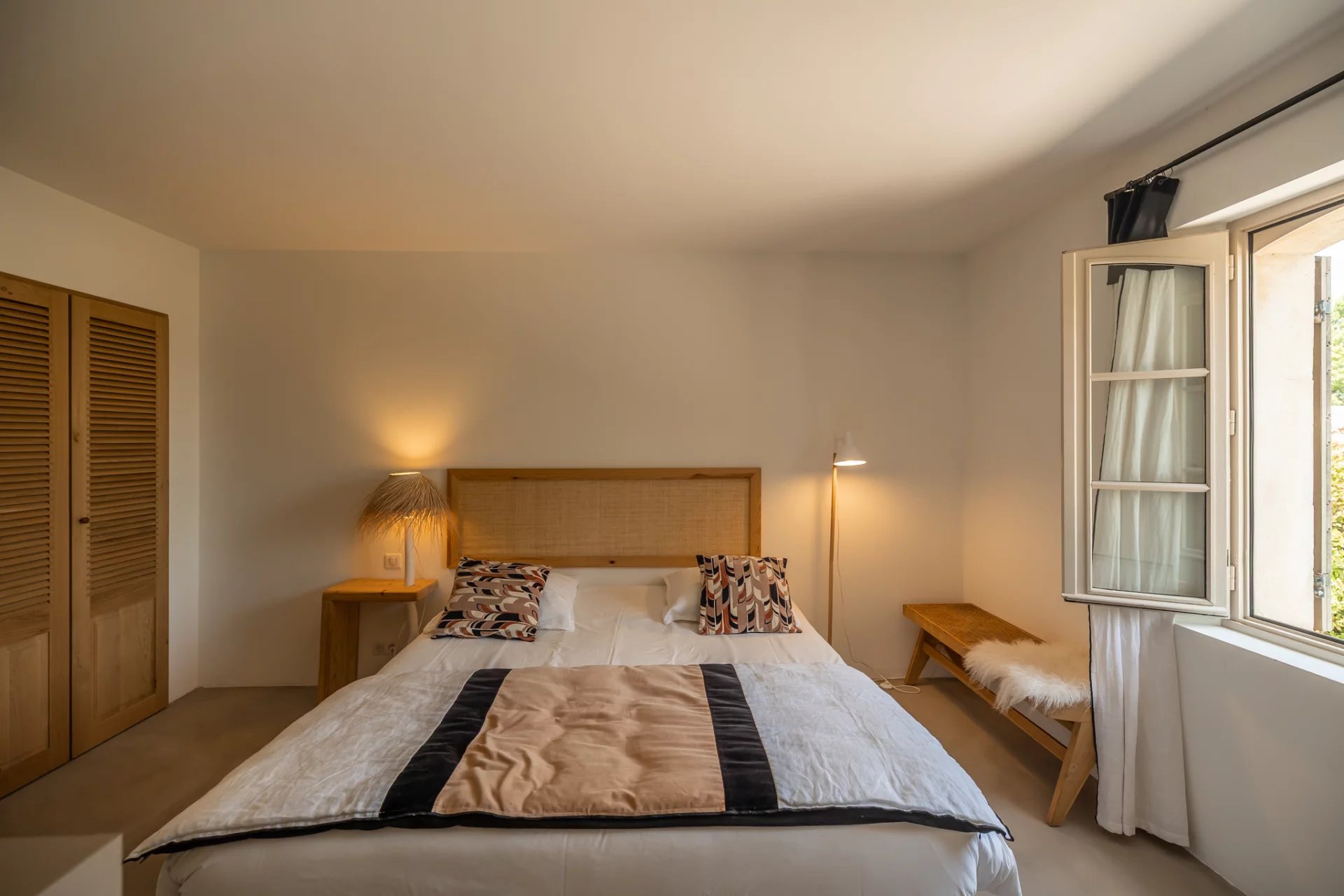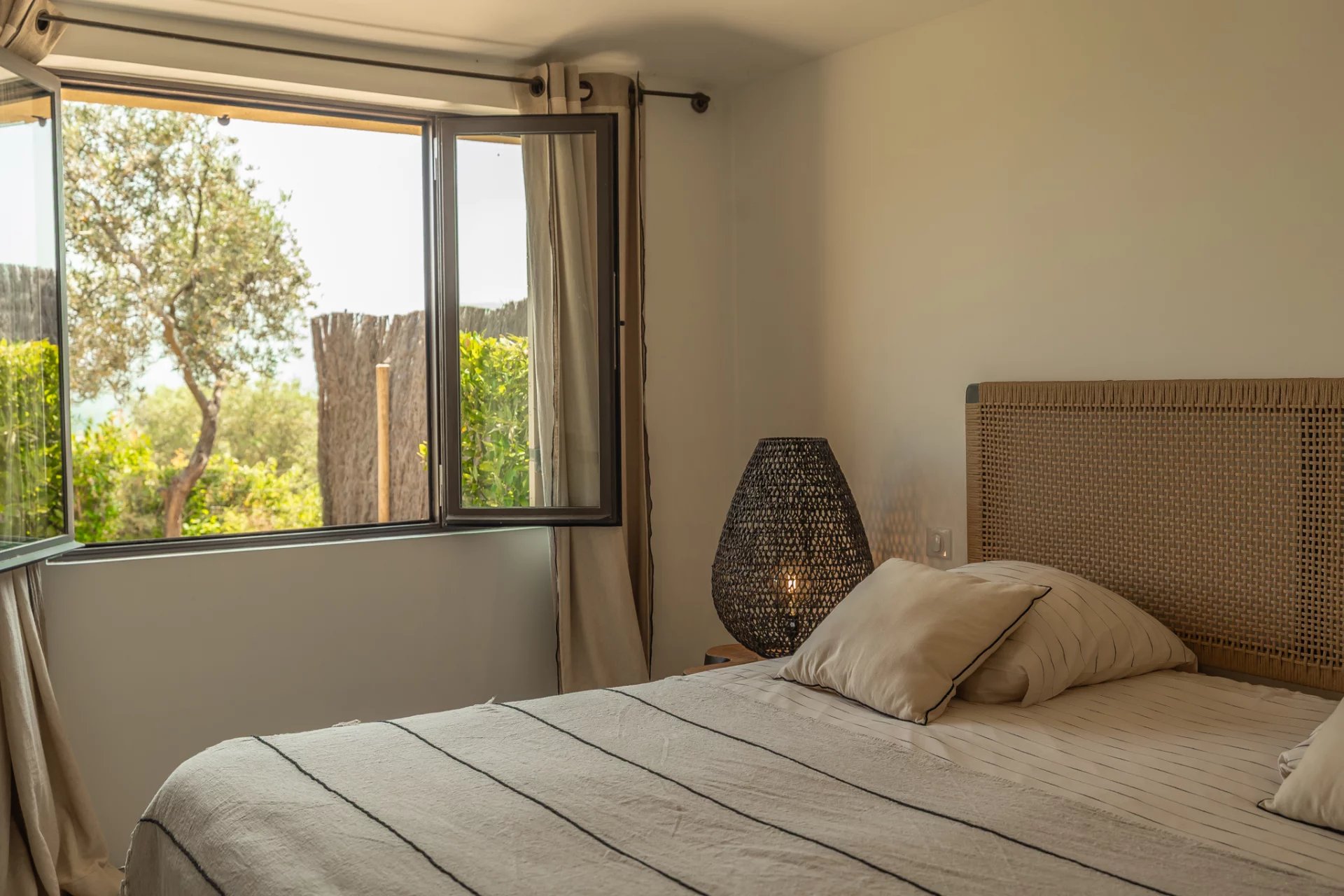 The interior, fully air-conditioned, will seduce you with the decorative elements and the light that bathes the large volumes. Nothing is left to chance, and the finishes and equipment are of high quality. 5 spacious en-suite bedrooms are spread over the two levels of the house (with a beautiful baby space upstairs, in continuity with the master bedroom).