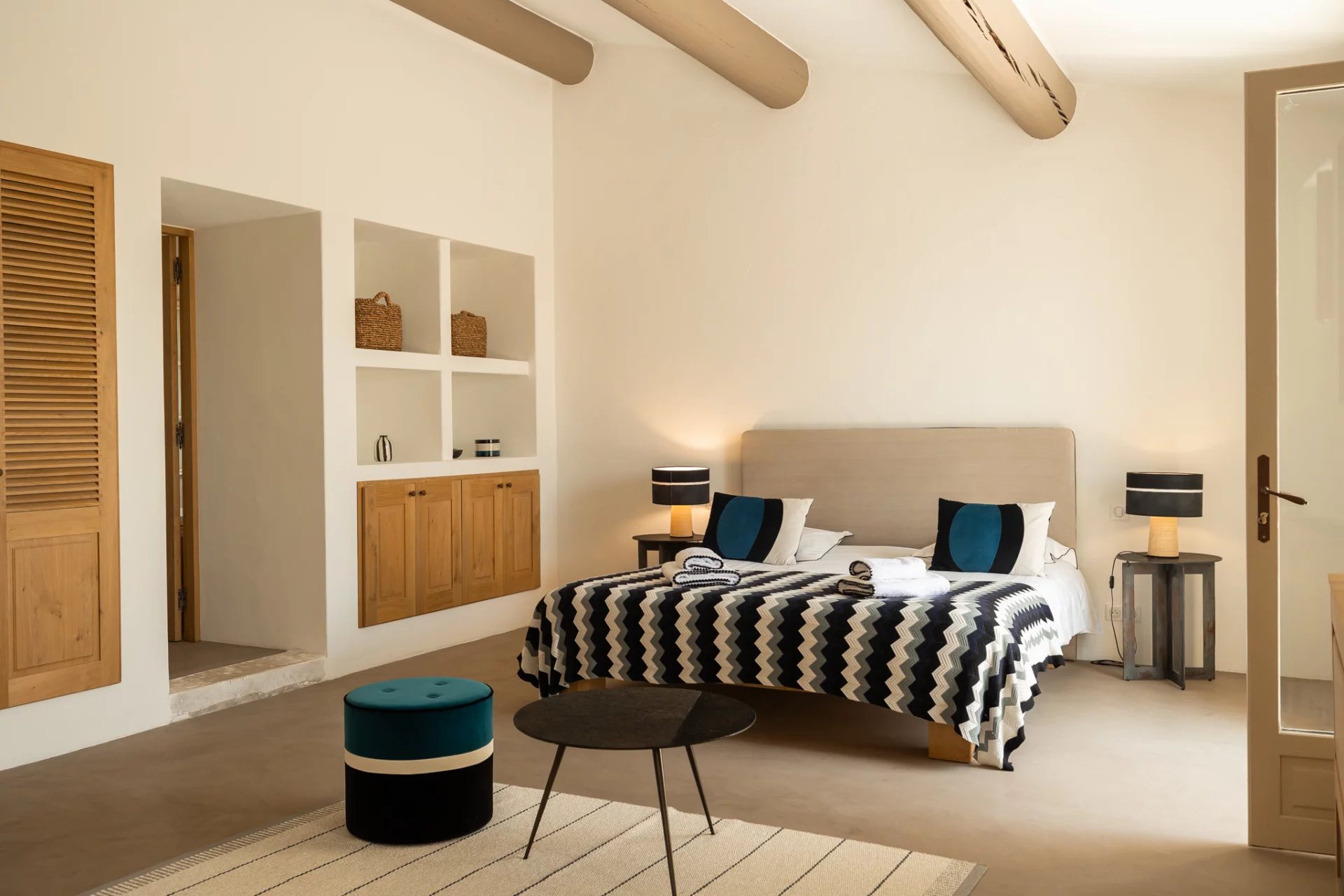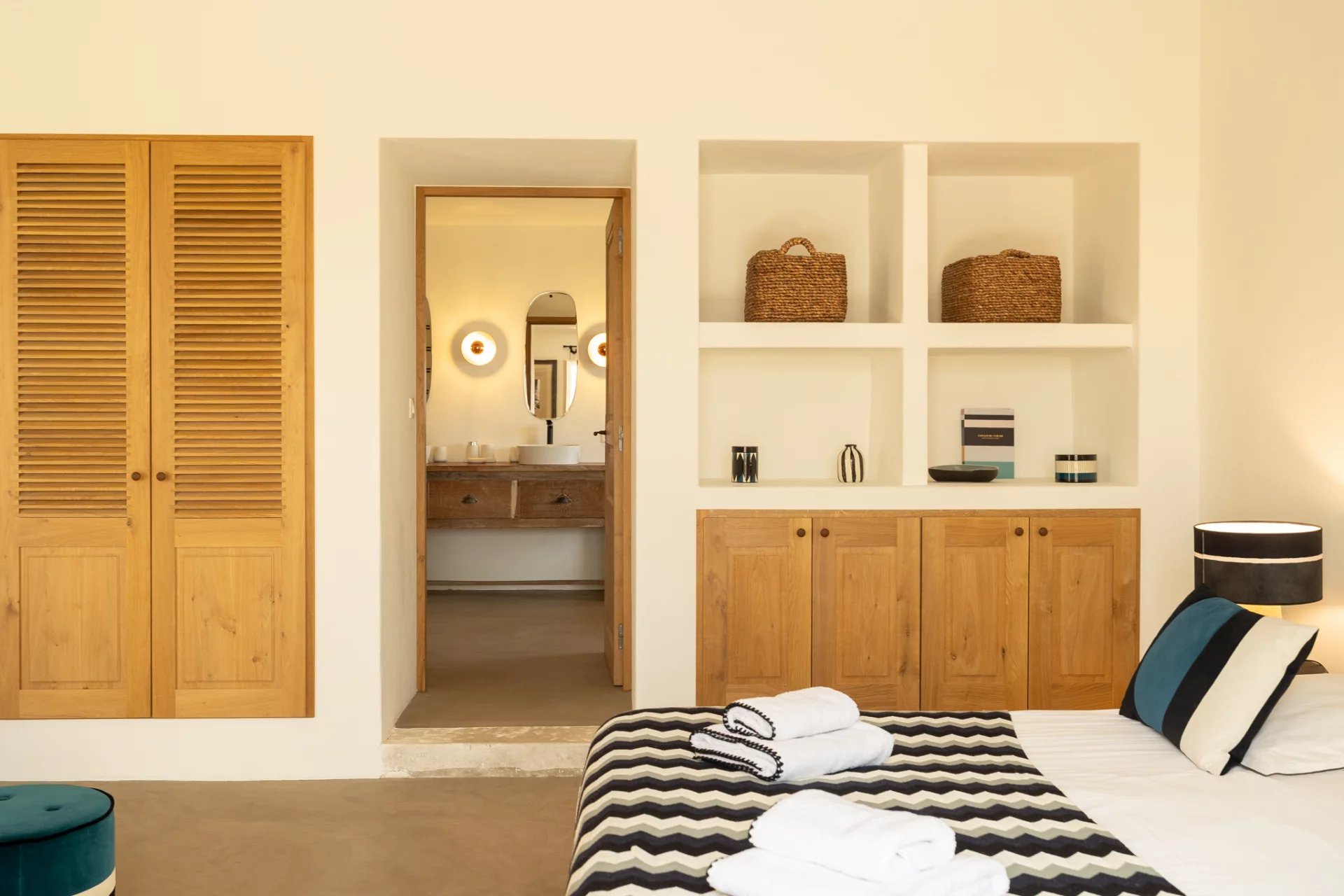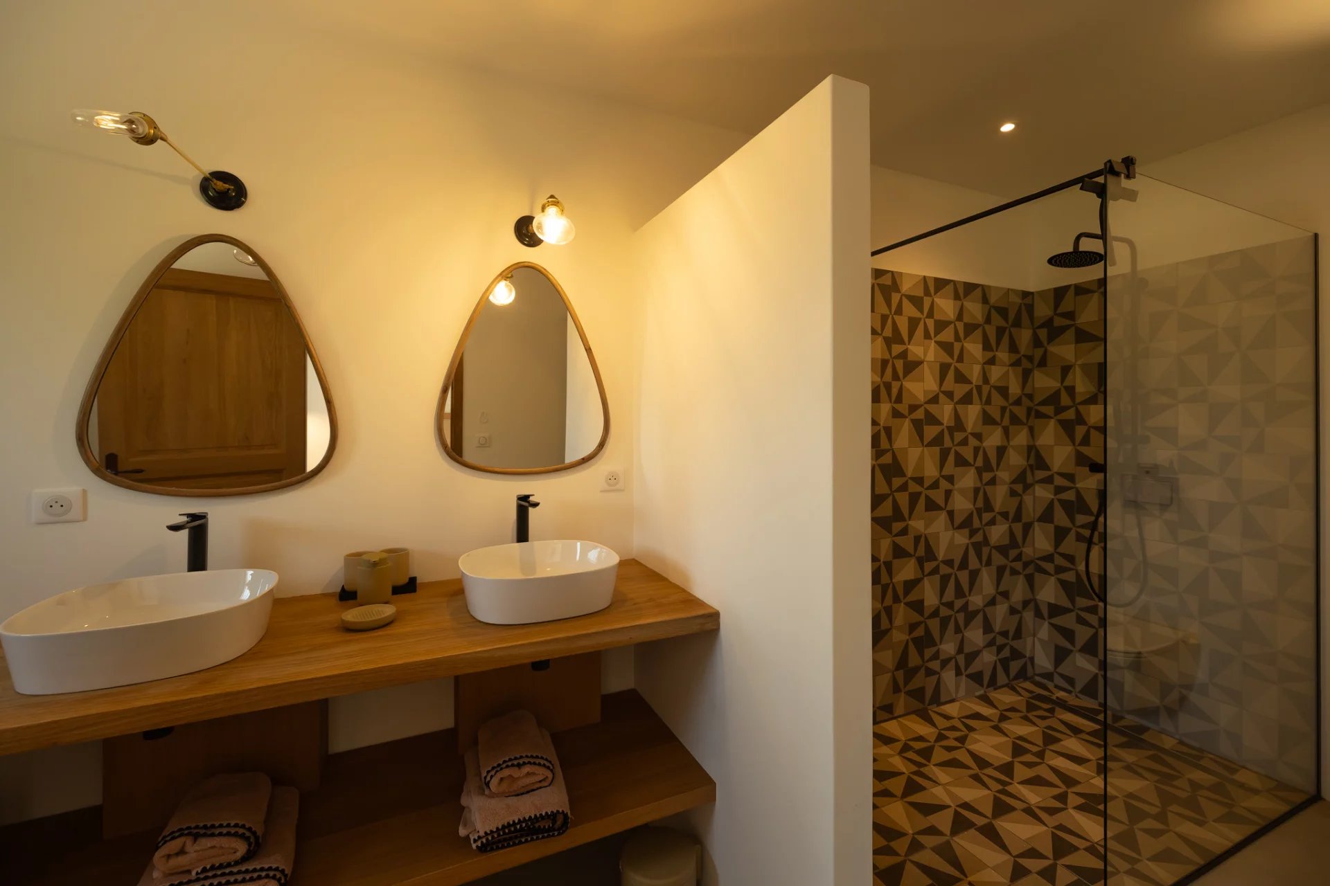 The interior, fully air-conditioned, will seduce you with the decorative elements and the light that bathes the large volumes. Nothing is left to chance, and the finishes and equipment are of high quality. 5 spacious en-suite bedrooms are spread over the two levels of the house (with a beautiful baby space upstairs, in continuity with the master bedroom).