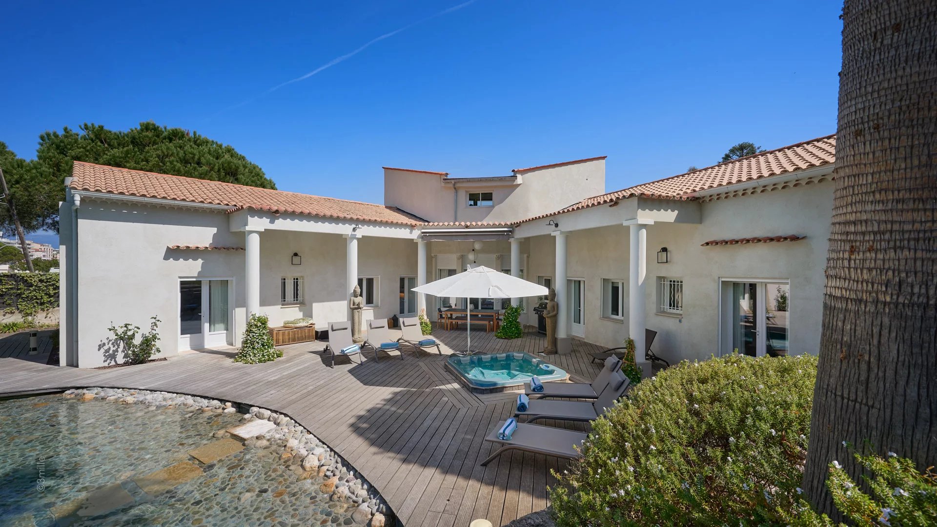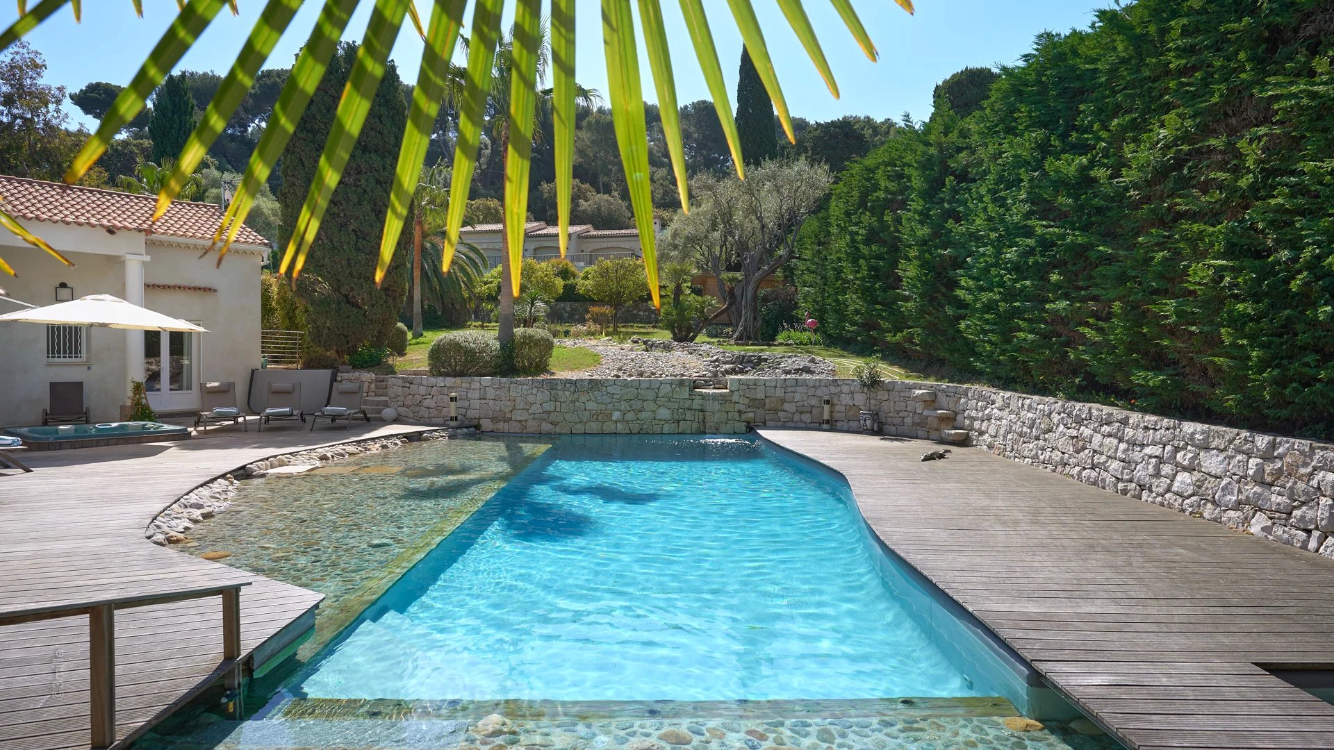 Attractive contemporary villa of 220 sq.m amoungst 2 000 sq.m of beautiful gardens, close to the harbour and beaches of La Salis and the city of Antibes.