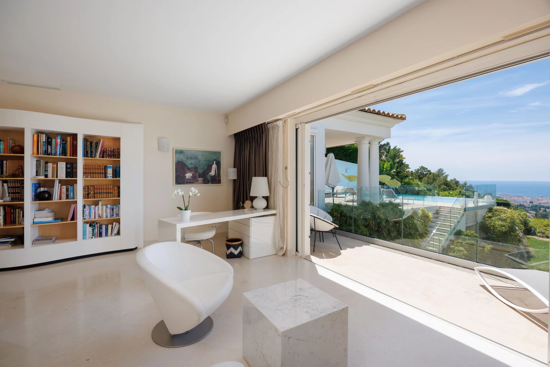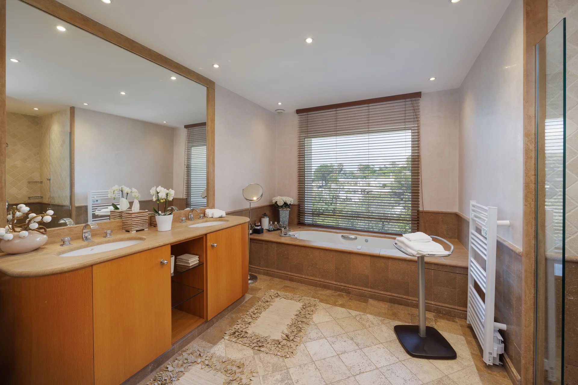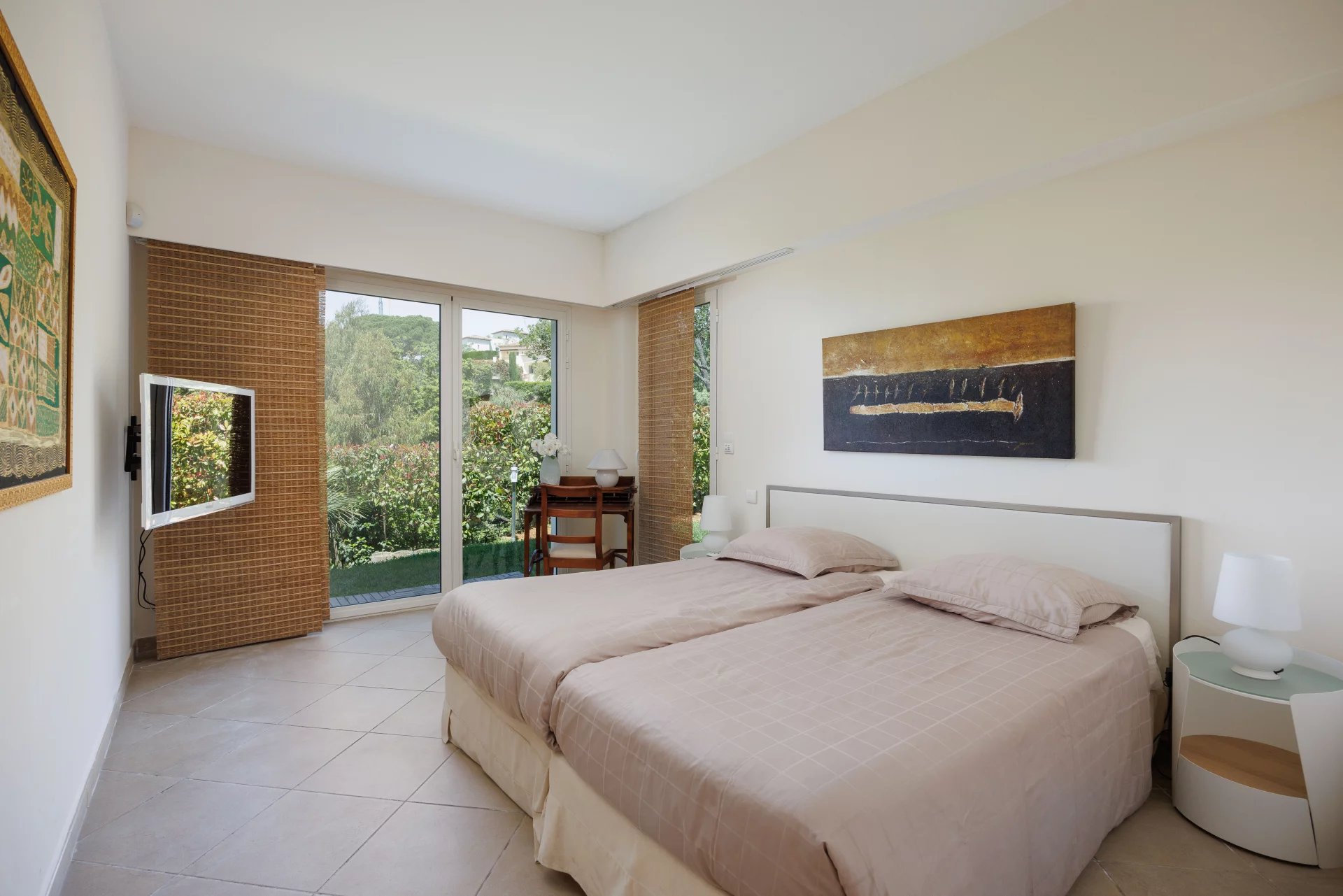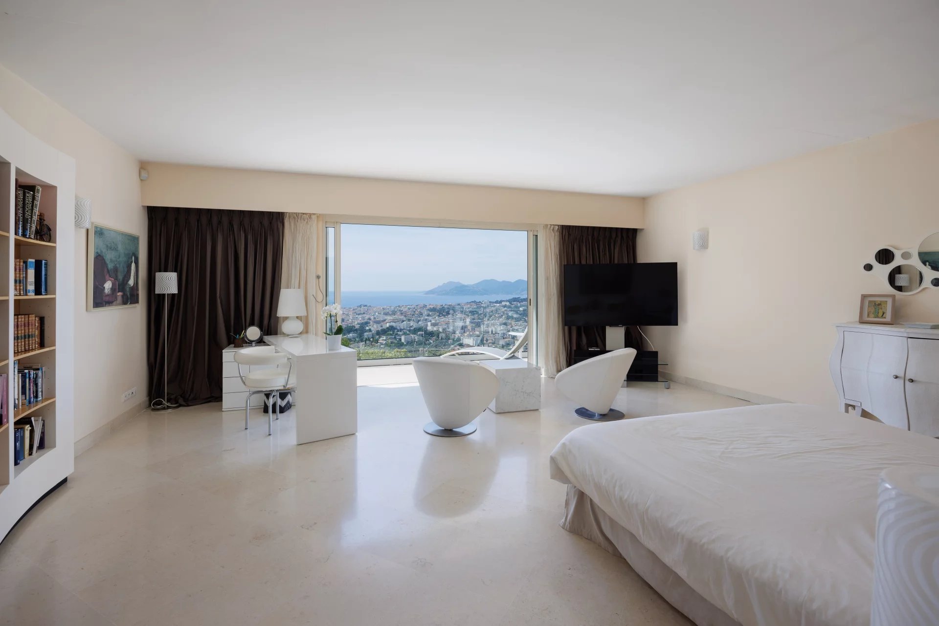 On the hills of Cannes, in a private domain, the villa enjoys a nice view over the Bay of Cannes and the "massif de l'Estérel".