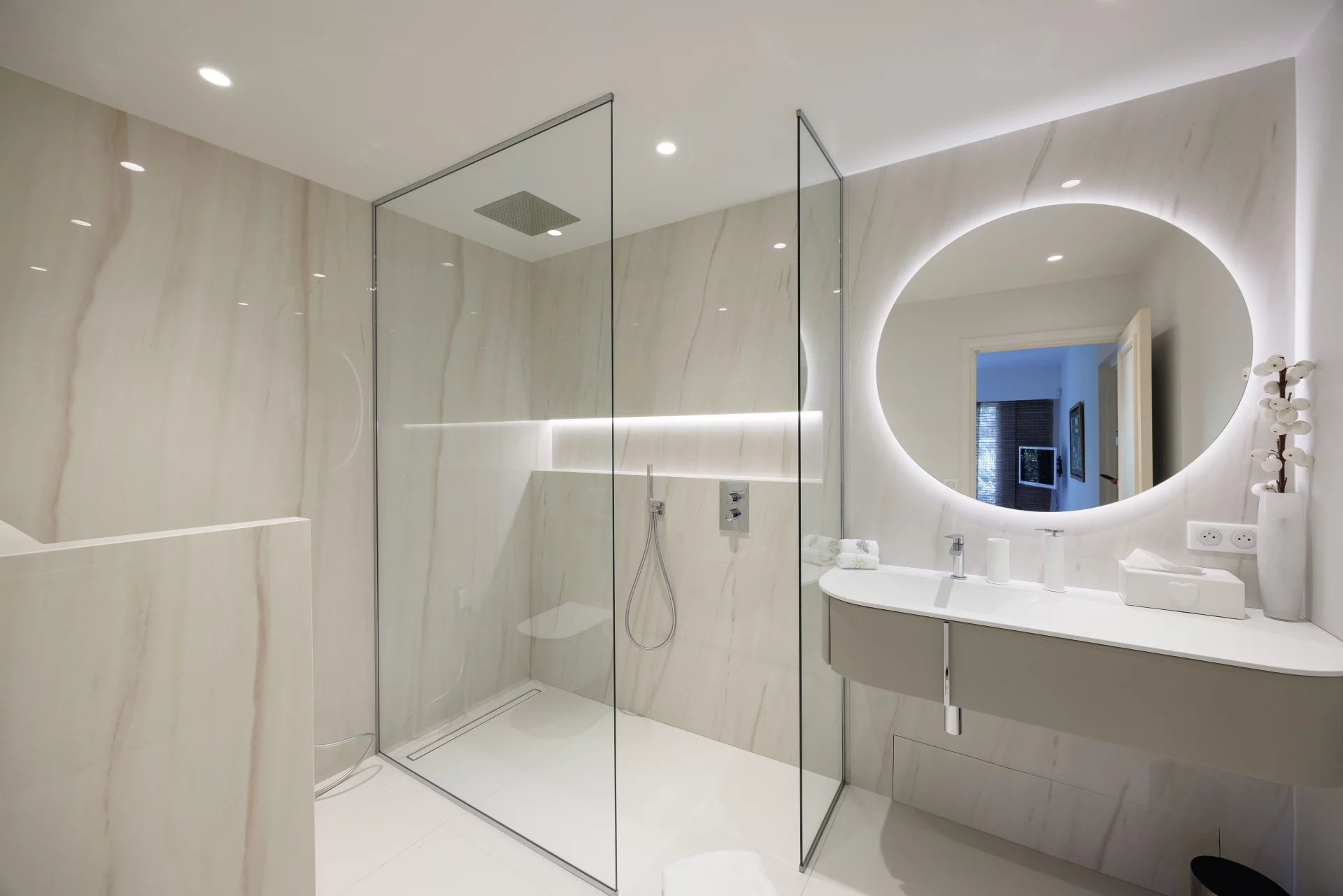 Three bedrooms, each with 2 single beds and ensuite shower room