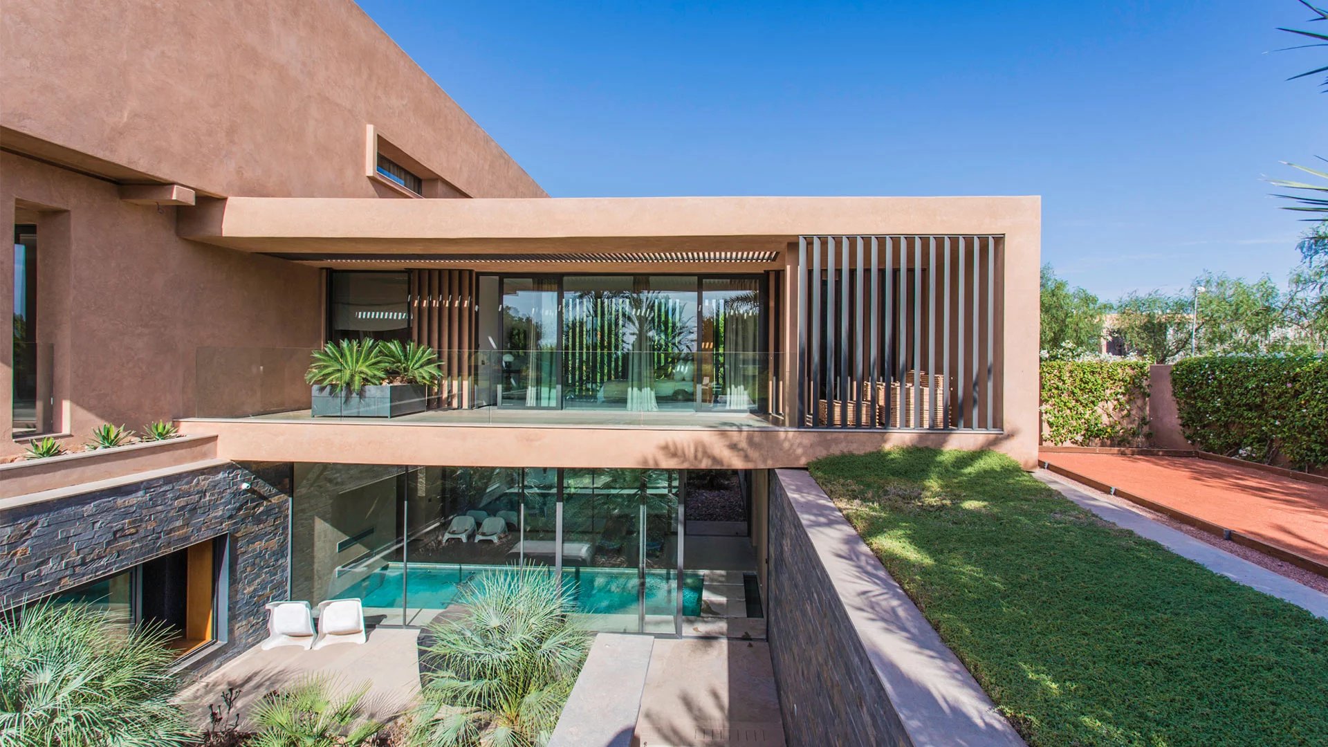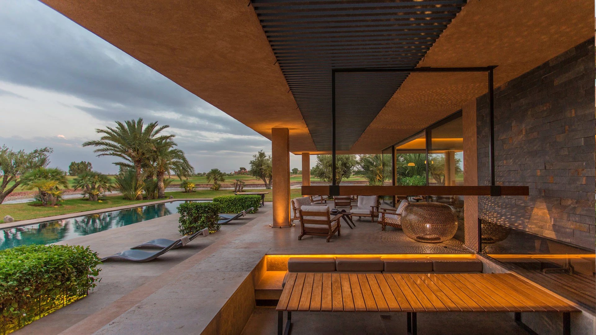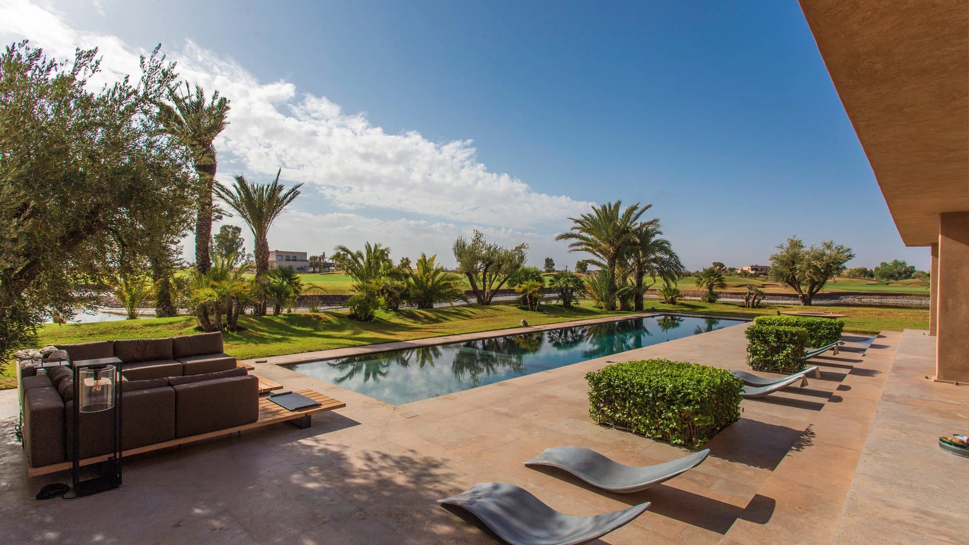 A true architect's house, in a contemporary style with meticulous decoration, this house is an architectural marvel. Located on the Amelkis golf course, 500 meters from the clubhouse and more precisely on hole 6 of the green course, it boasts all the comforts of a luxury property with excellent service.