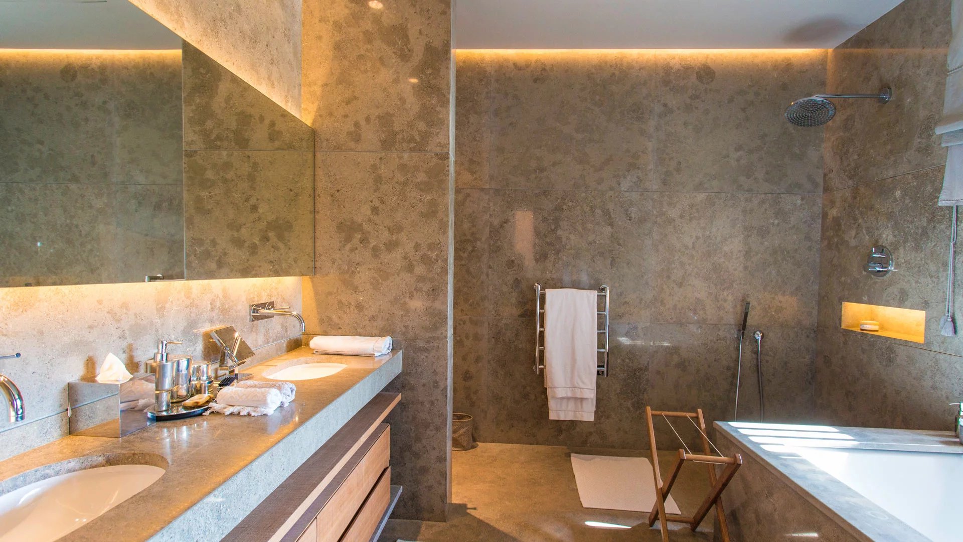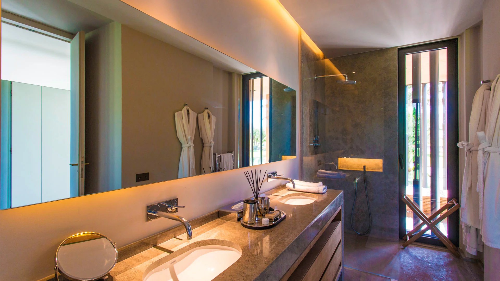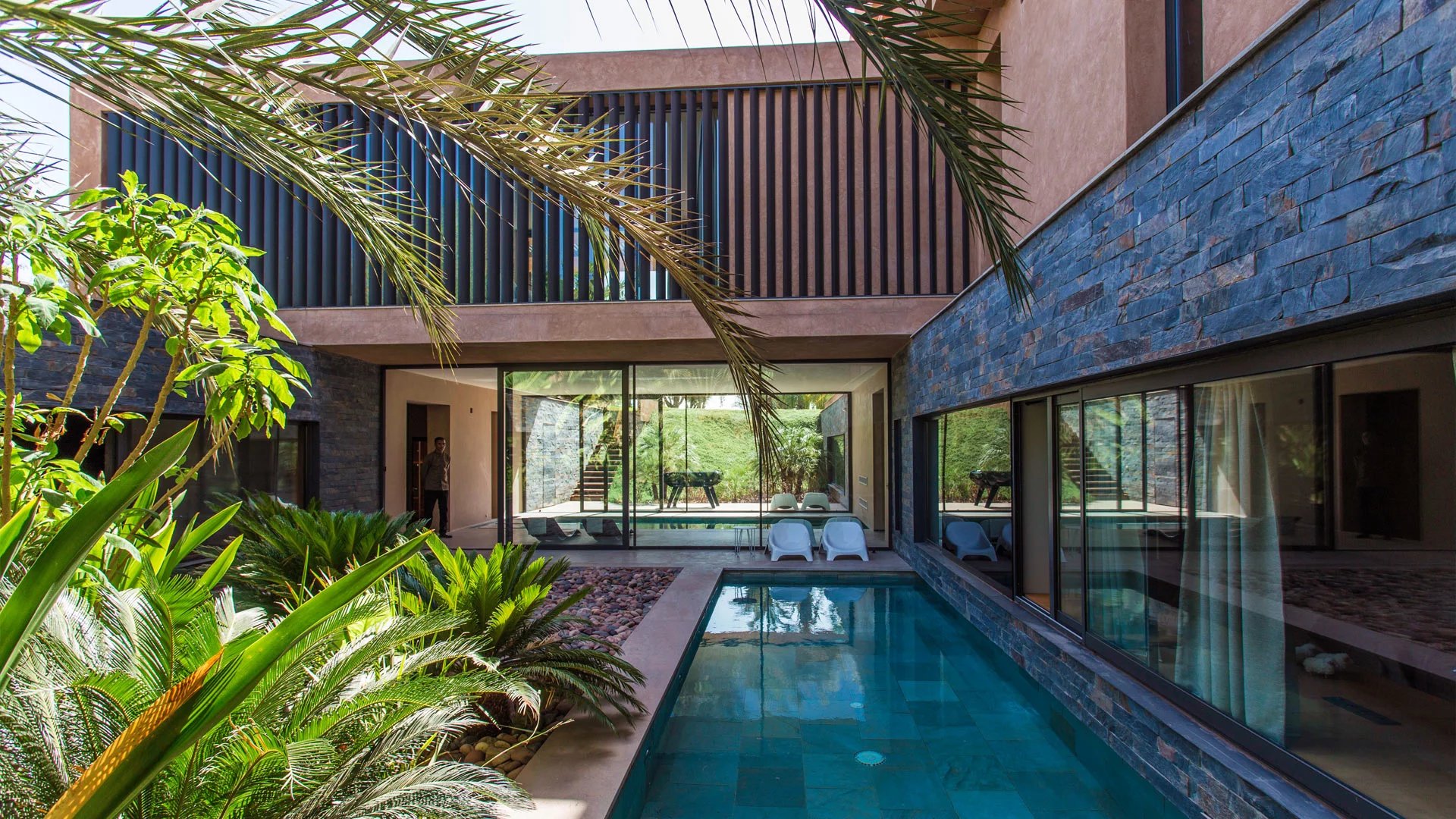 But the hidden charm of this incredible villa lies particularly in its lower floor, with a large private spa, accessible from the outside. In this haven of relaxation, you'll find an indoor pool, hammam, sauna, hair and nail salon and gym.