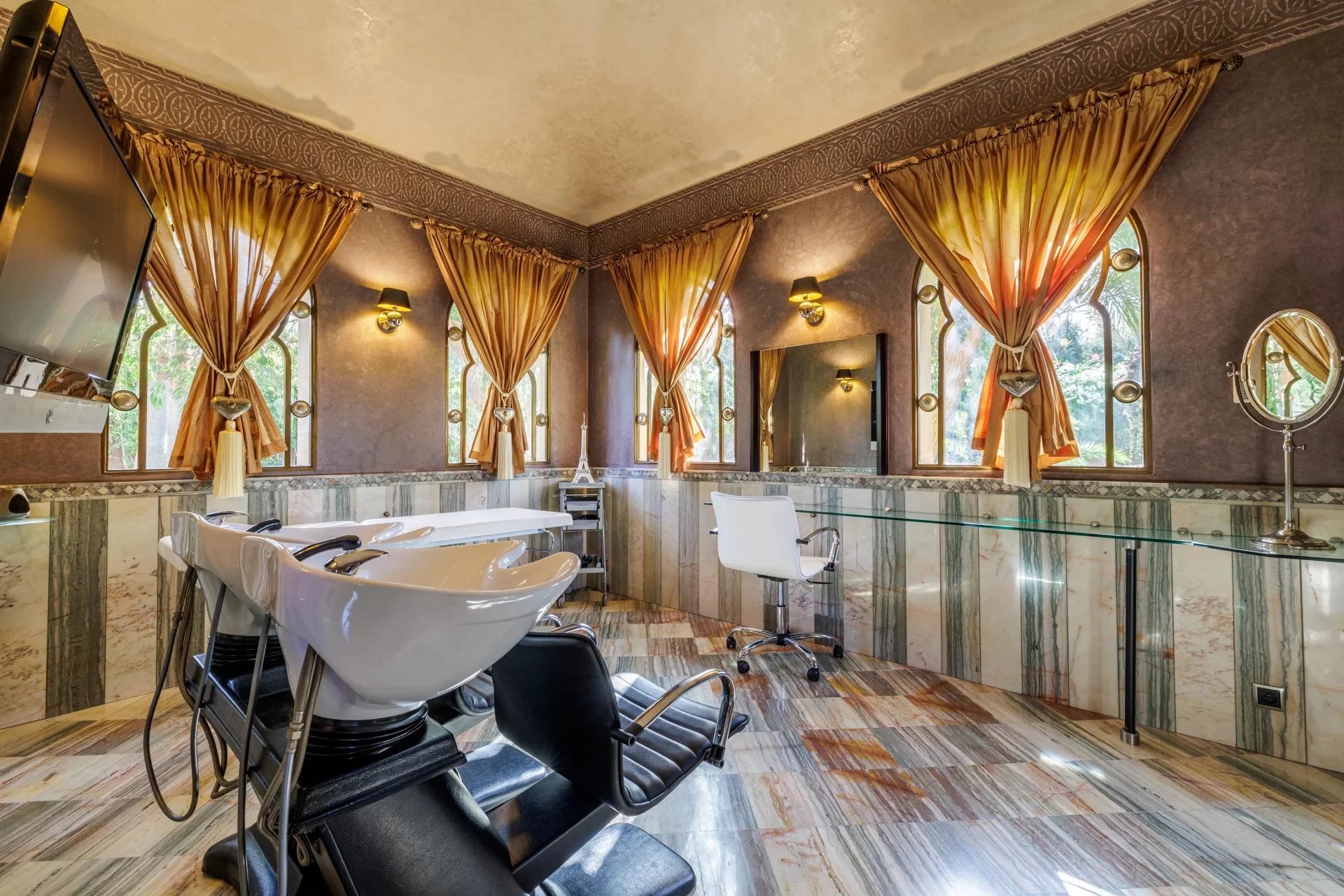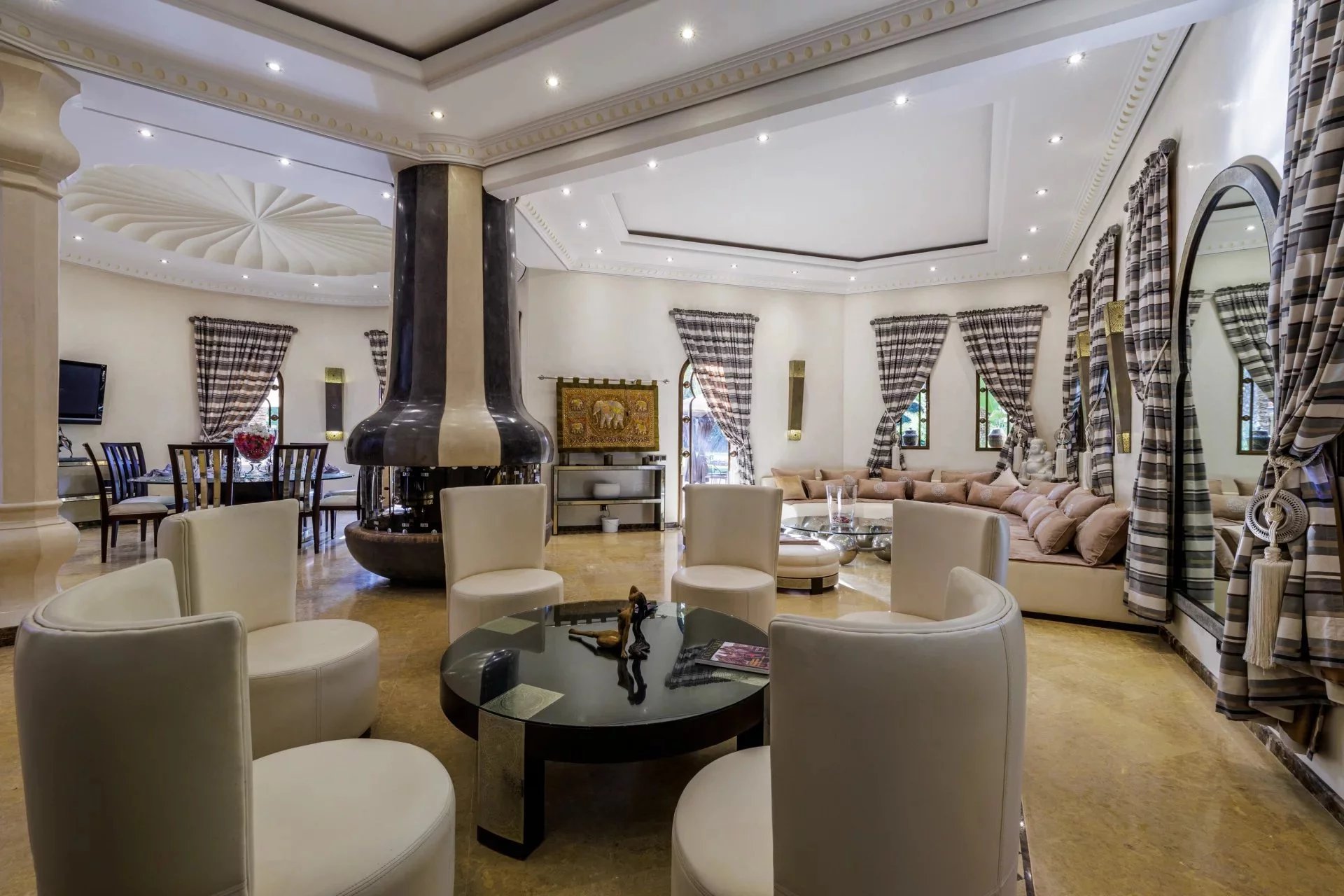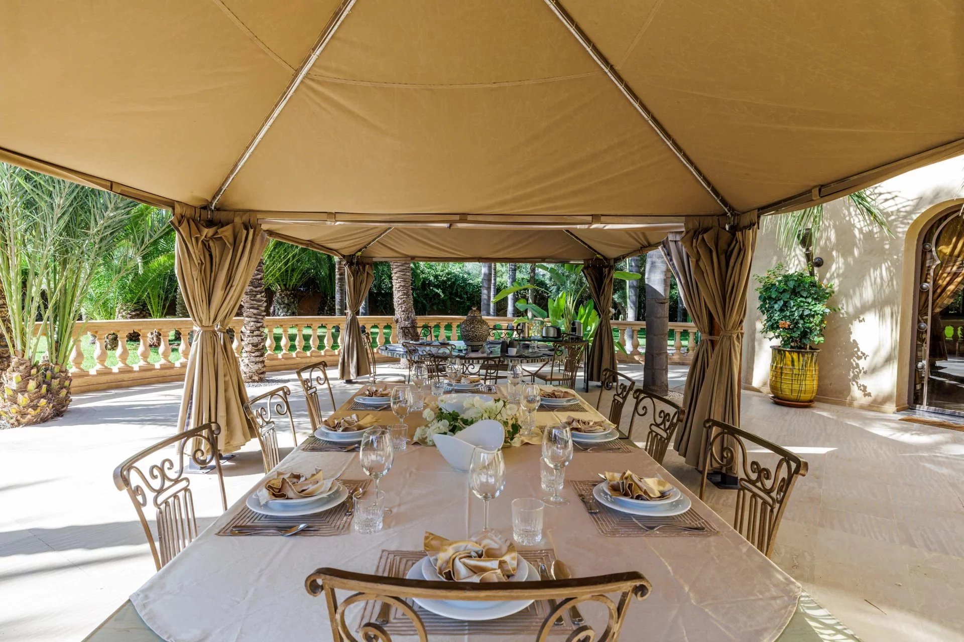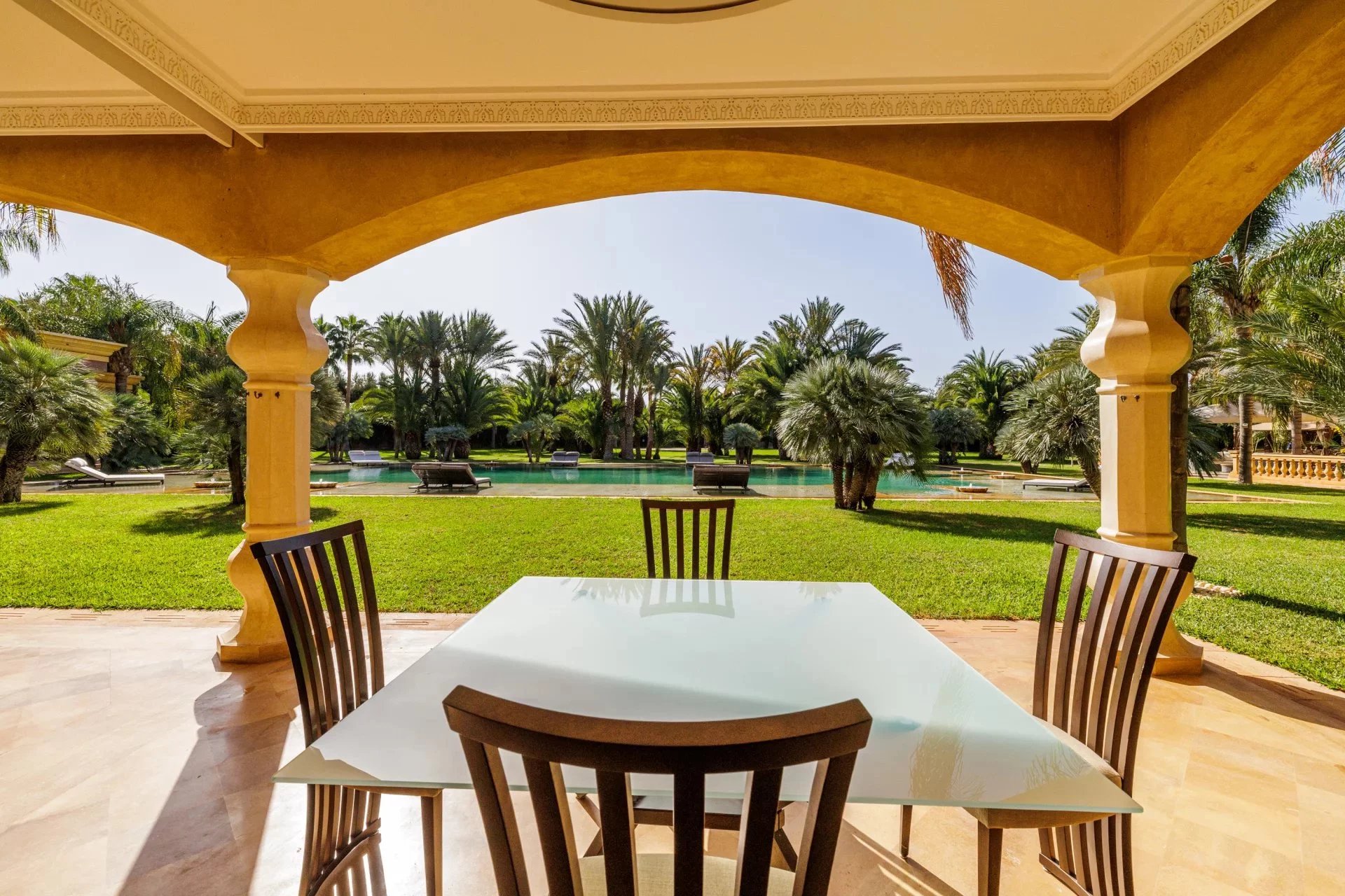 Ideally located less than 30 minutes from Marrakech Menara Airport and approximately 20 minutes from the iconic Mamounia Hotel, the property perfectly balances privacy, exclusivity, and convenient access to the city.