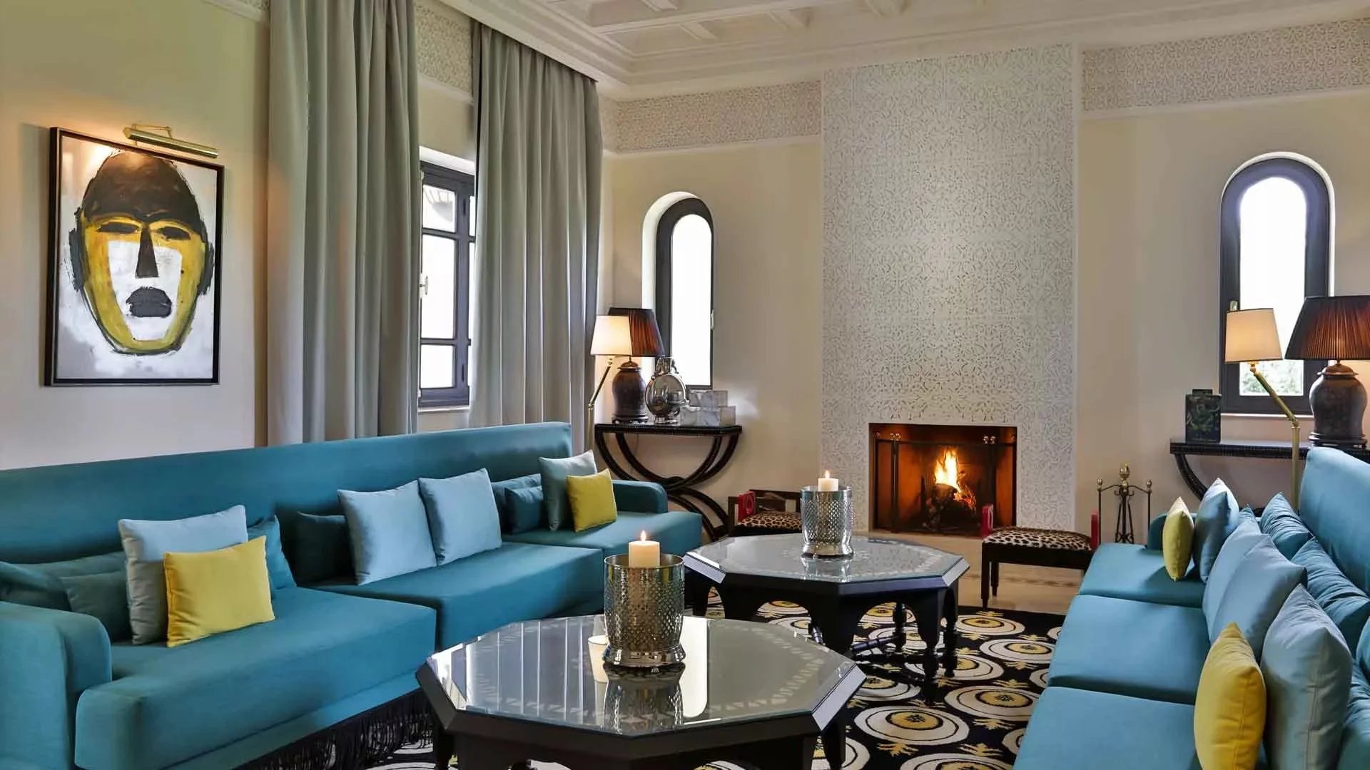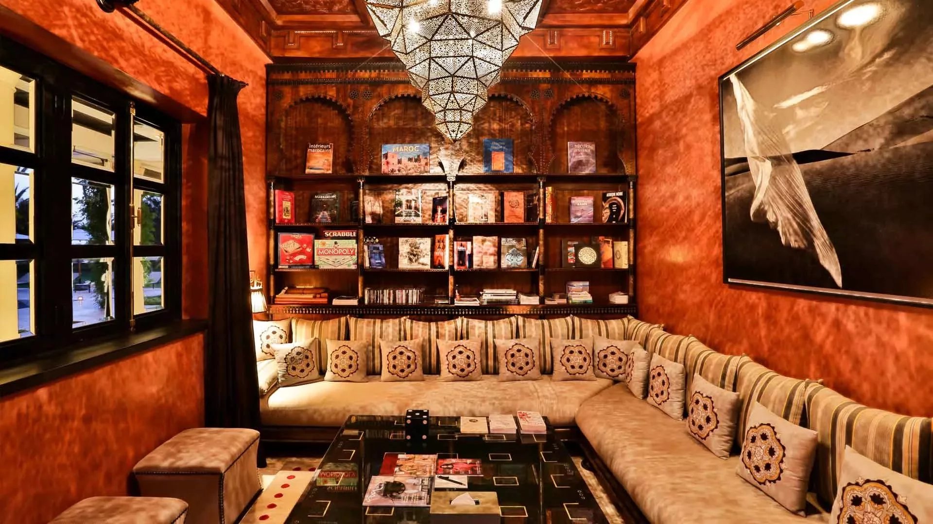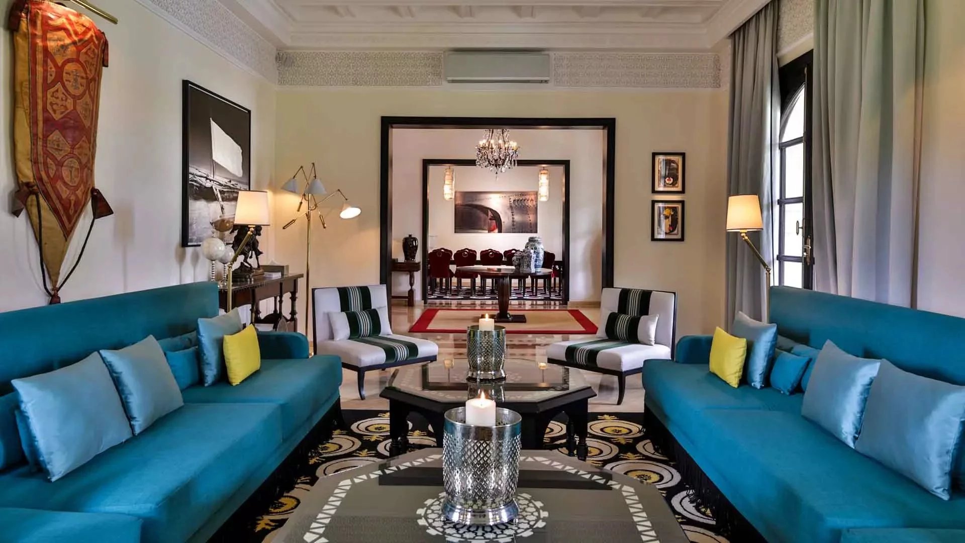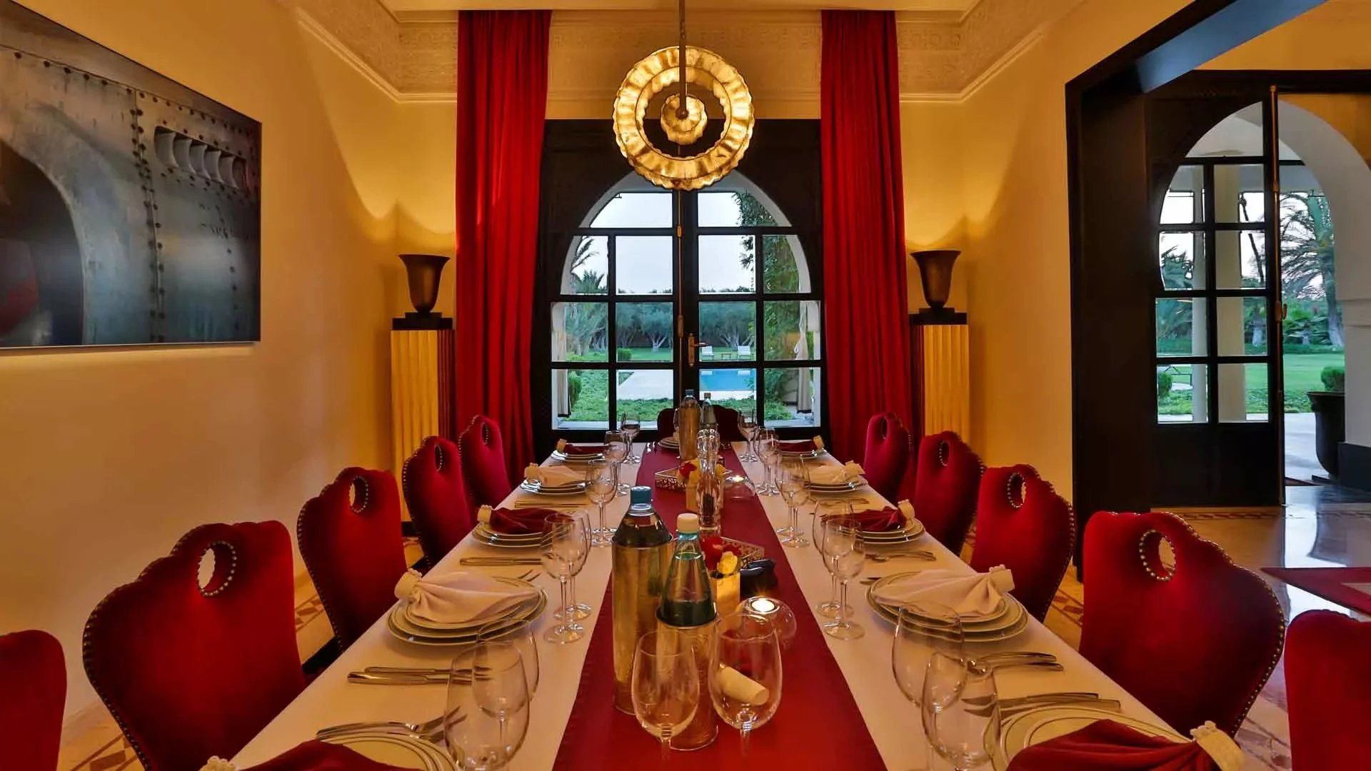 Located in the prestigious Palmeraie of Marrakech, just 20 minutes from the city center and Jardin Majorelle, Villa Sanjena is an elegant private residence set on a landscaped 10,500 m² park.