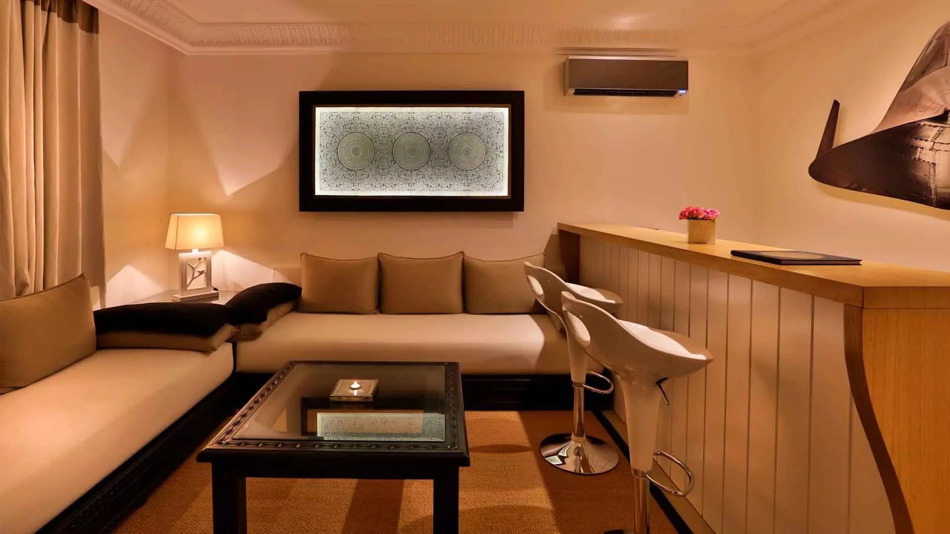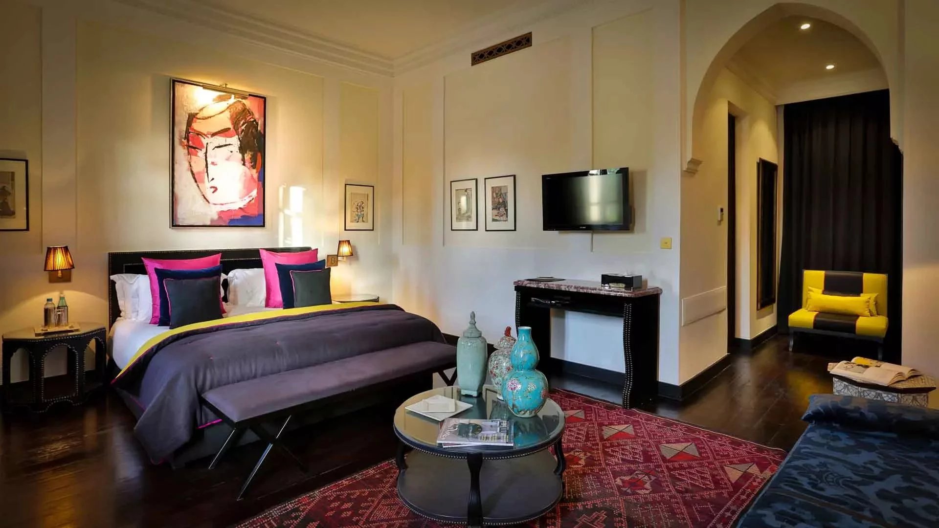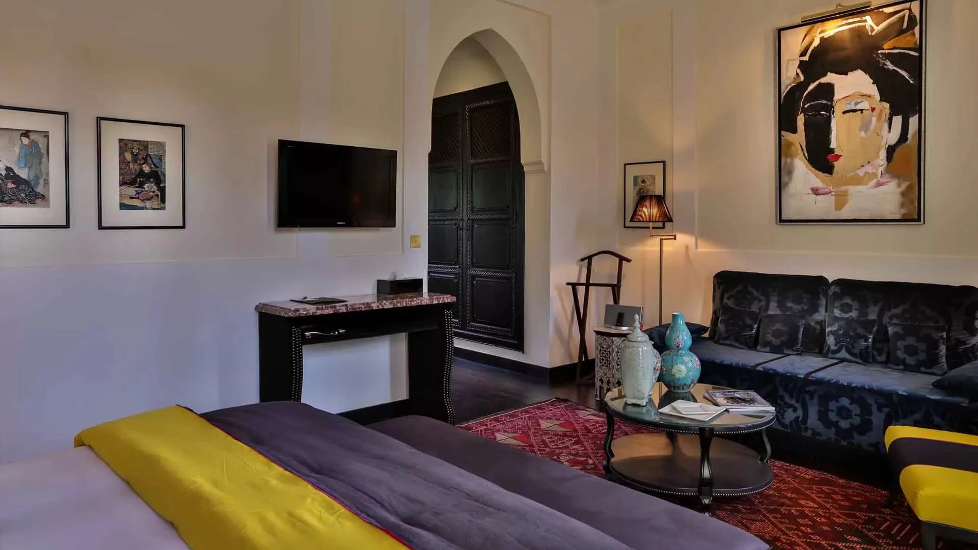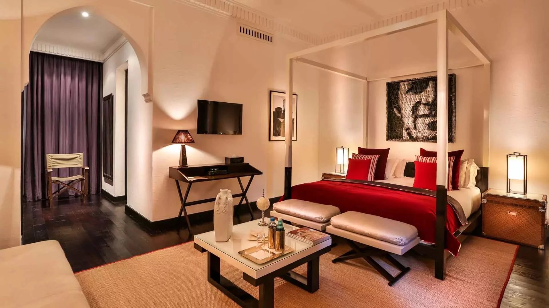 Located in the prestigious Palmeraie of Marrakech, just 20 minutes from the city center and Jardin Majorelle, Villa Sanjena is an elegant private residence set on a landscaped 10,500 m² park.