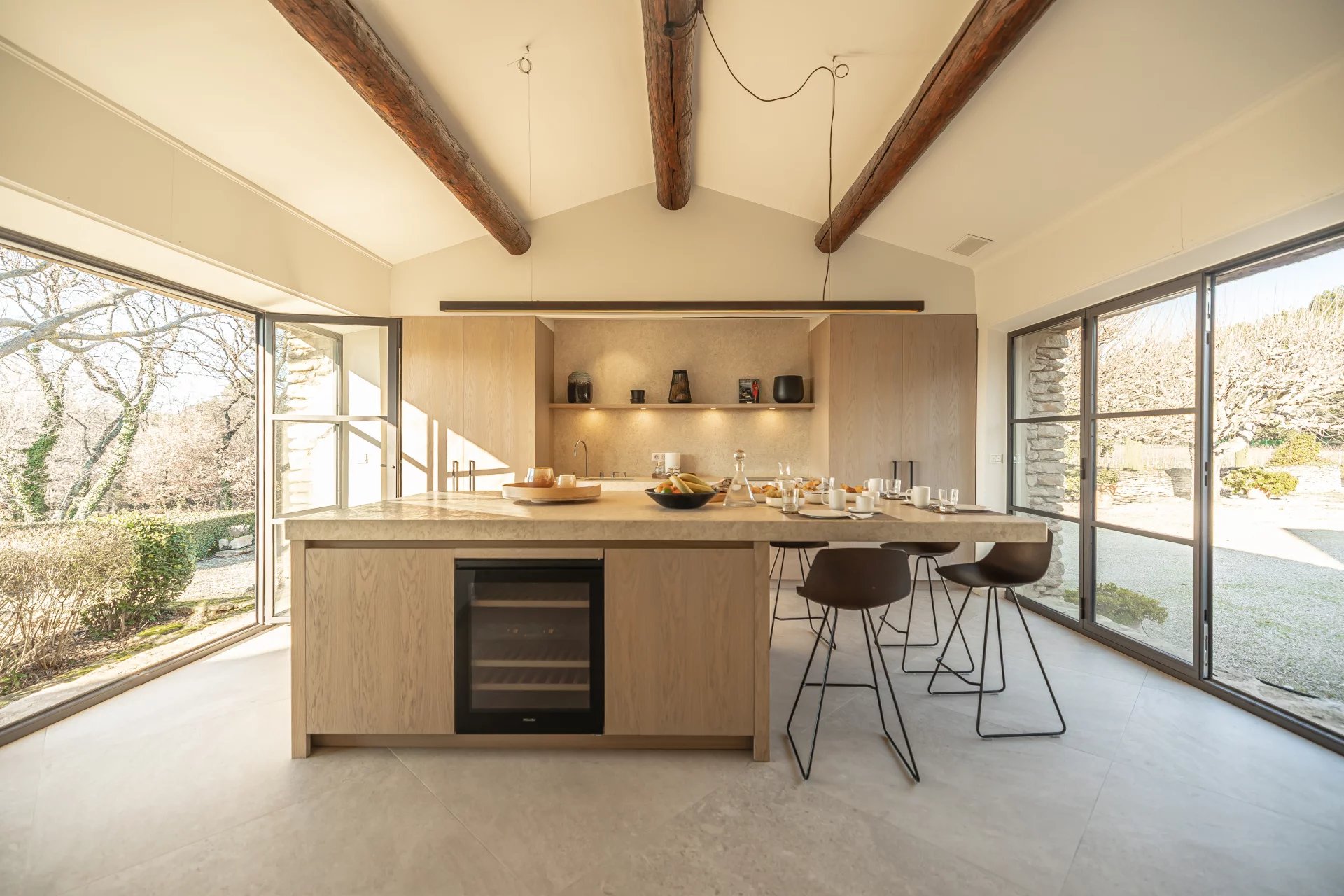 Outside, a magnificent 16x8m infinity pool and its fully-equipped summer kitchen provide the perfect setting for socialising or relaxing in front of the Luberon.