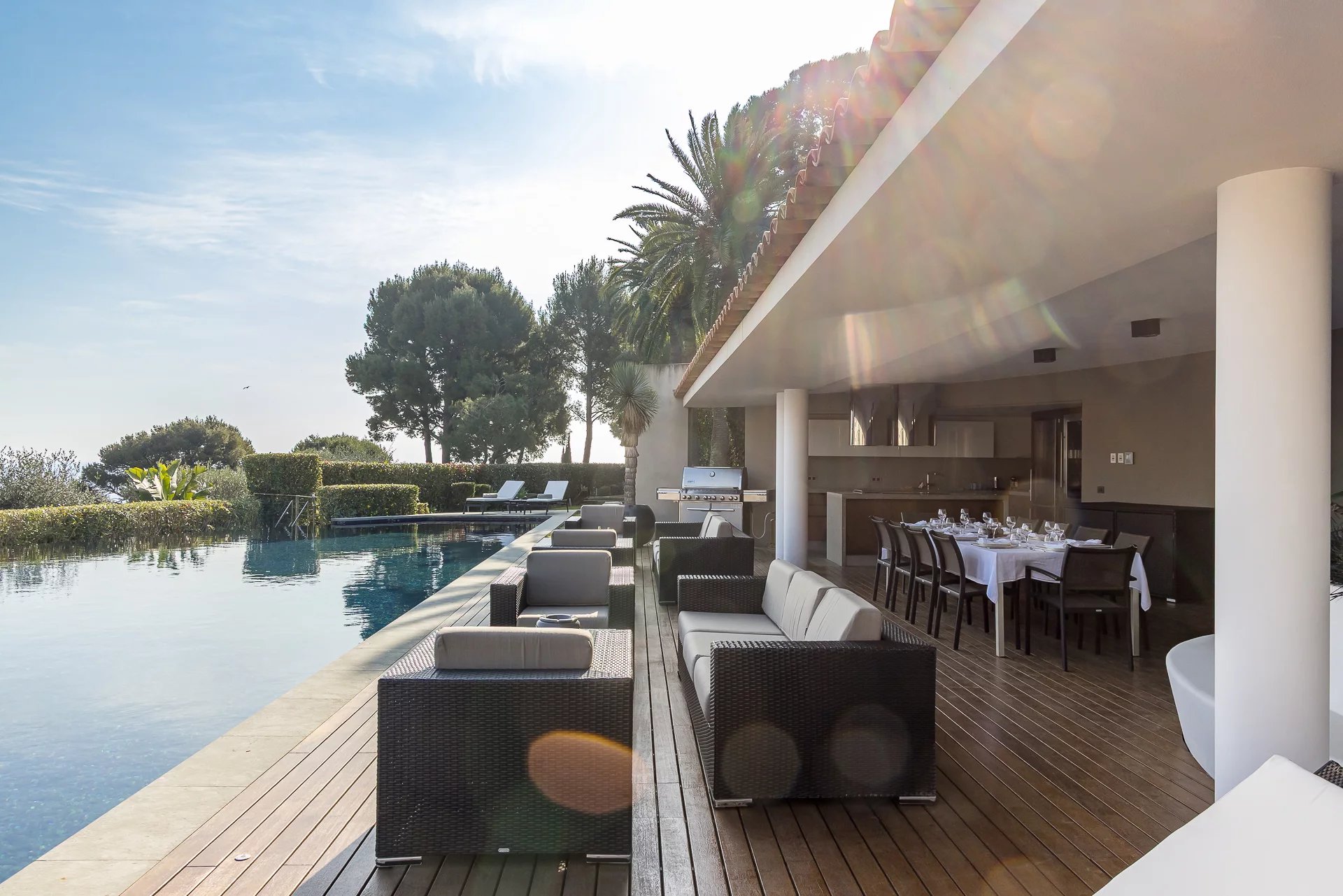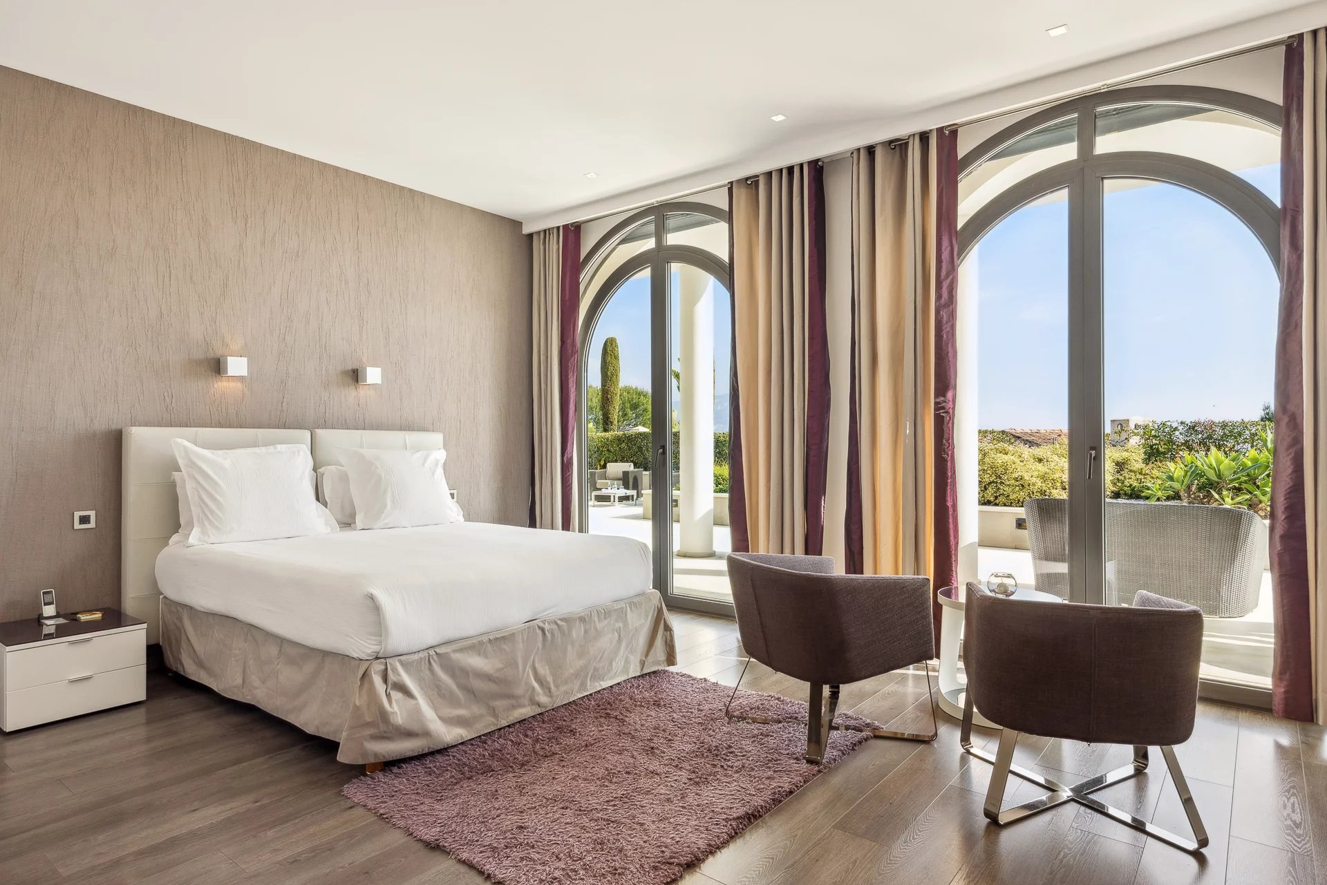 The bright living spaces open onto large terraces with panoramic views of the Mediterranean. The dining room, which can accommodate up to 16 guests, is ideal for unique moments of sharing thanks to a professional chef. A prestigious master suite is complemented by several en-suite bedrooms, carefully furnished to ensure comfort and privacy.
