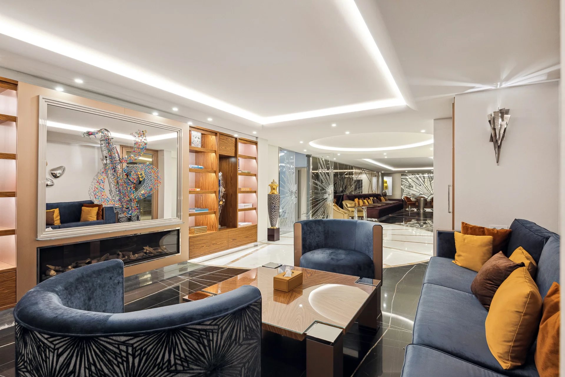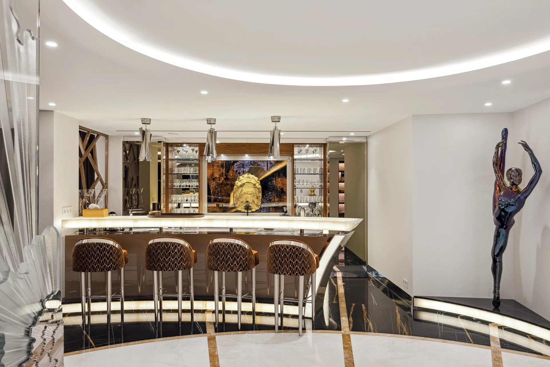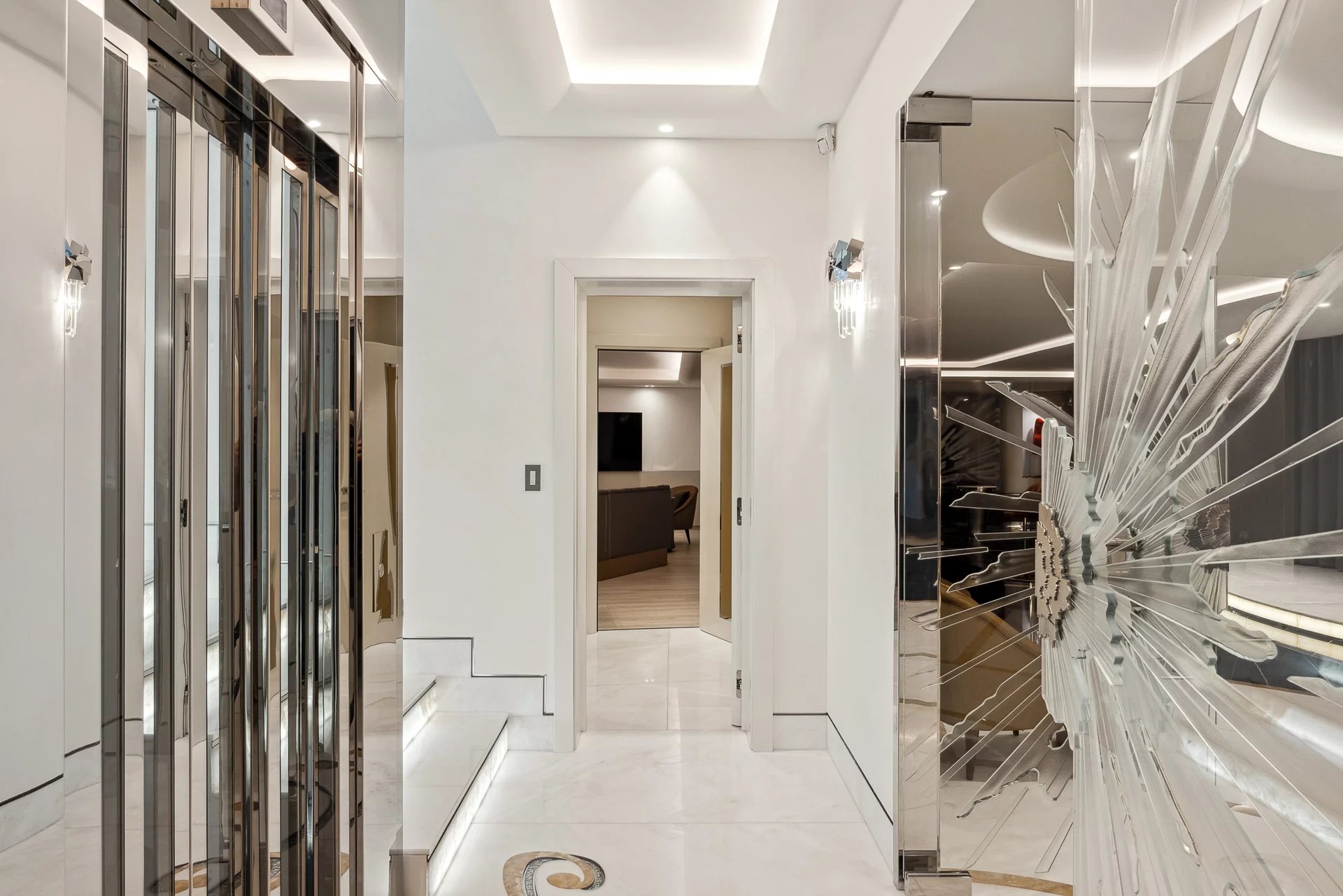 It has around 500 m² of living space spread over four levels, all served by an interior lift.