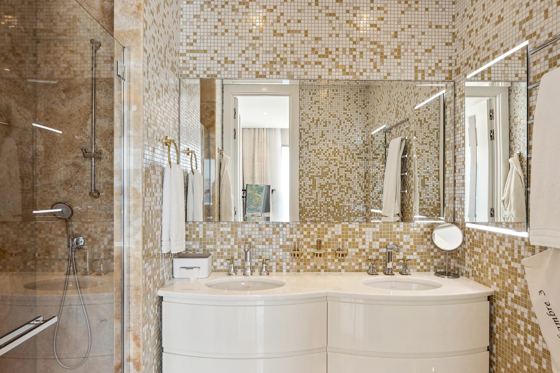 - five bedrooms, including two master suites with private bathrooms and terraces,