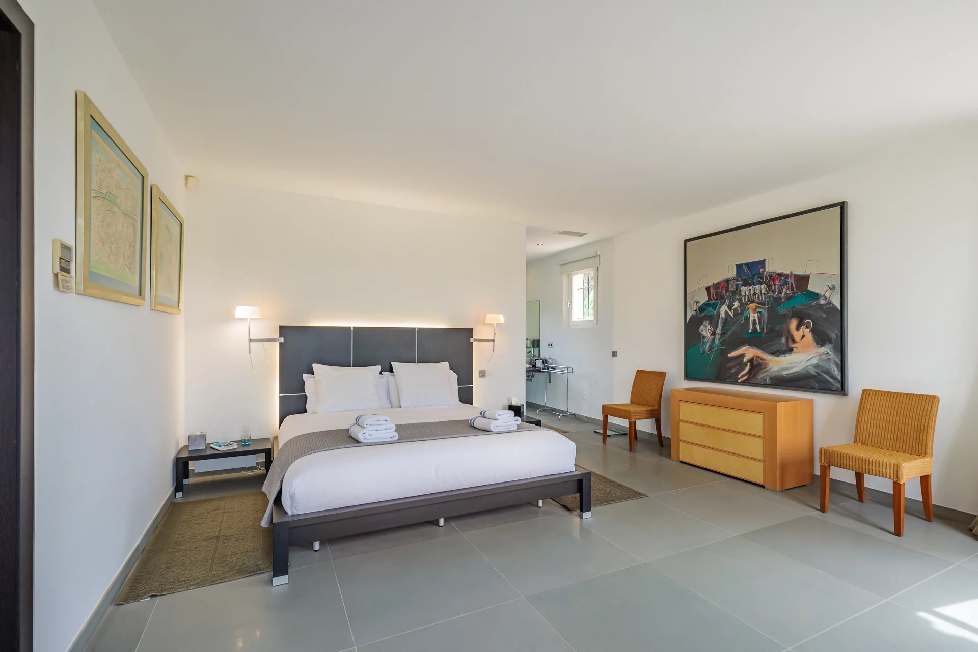 Learn moreThe ground floor comprises a bright living room, dining room and fully-equipped kitchen, plus 2 en suite bedrooms. Upstairs are 4 en suite bedrooms, including a master bedroom with a terrace overlooking the sea.