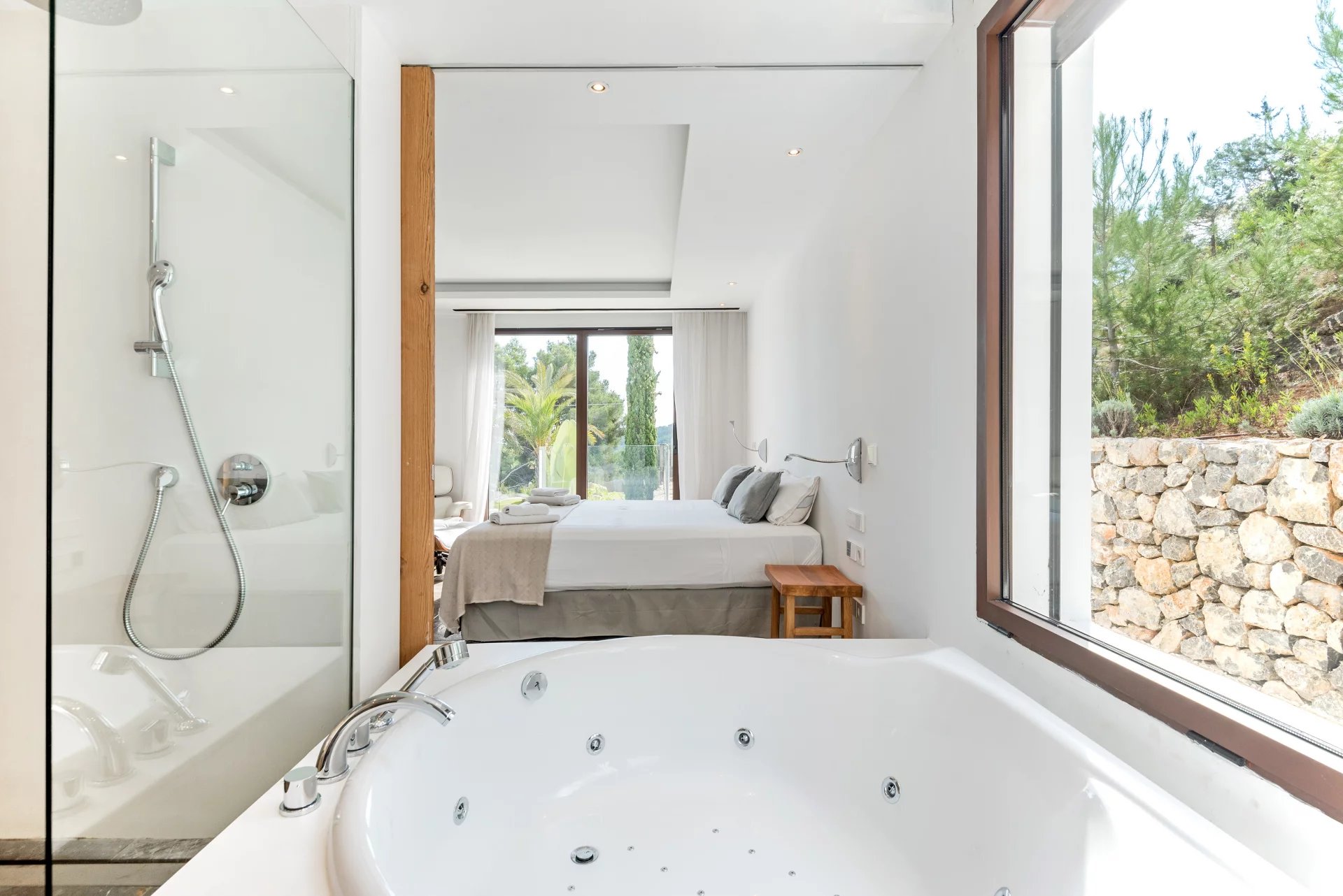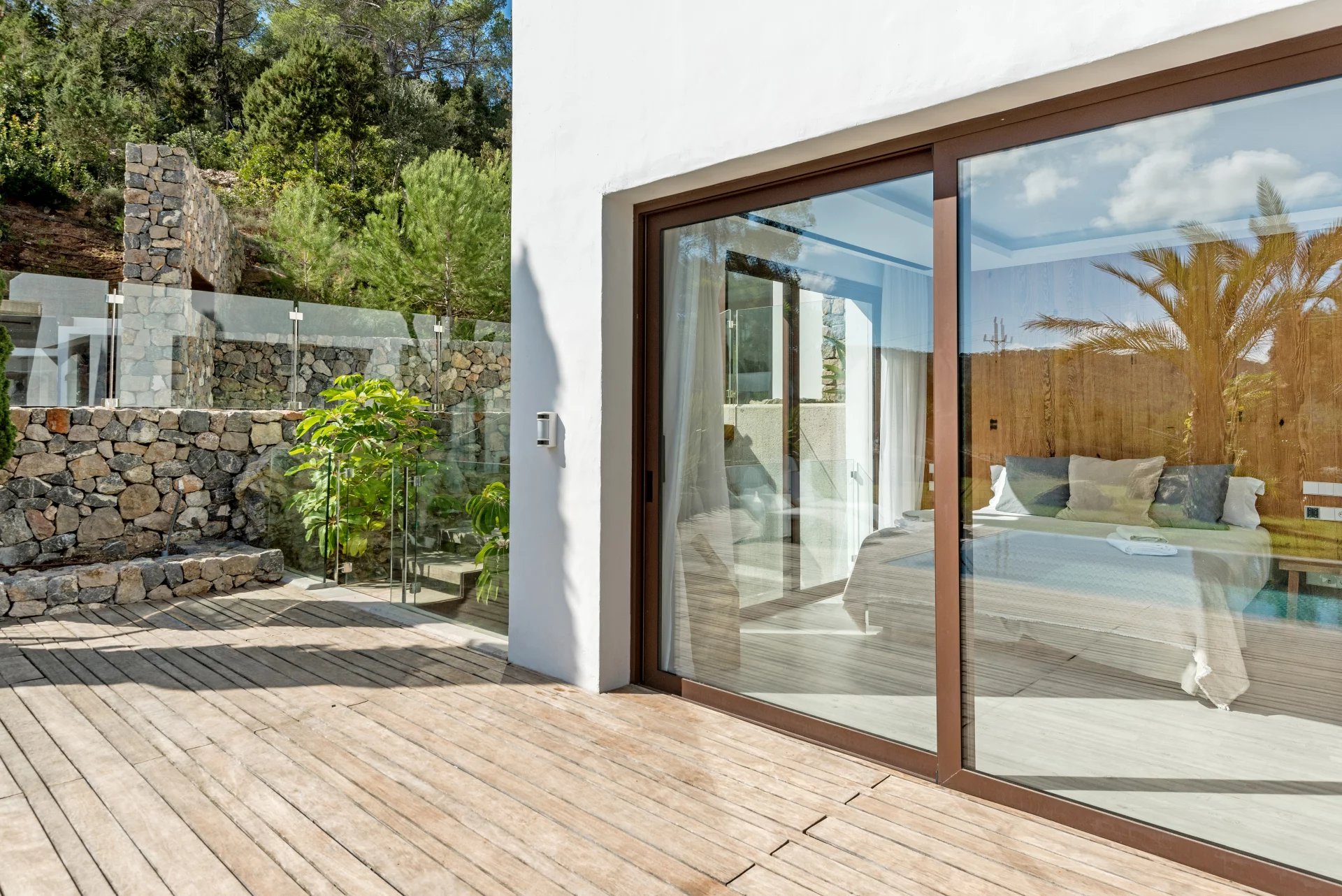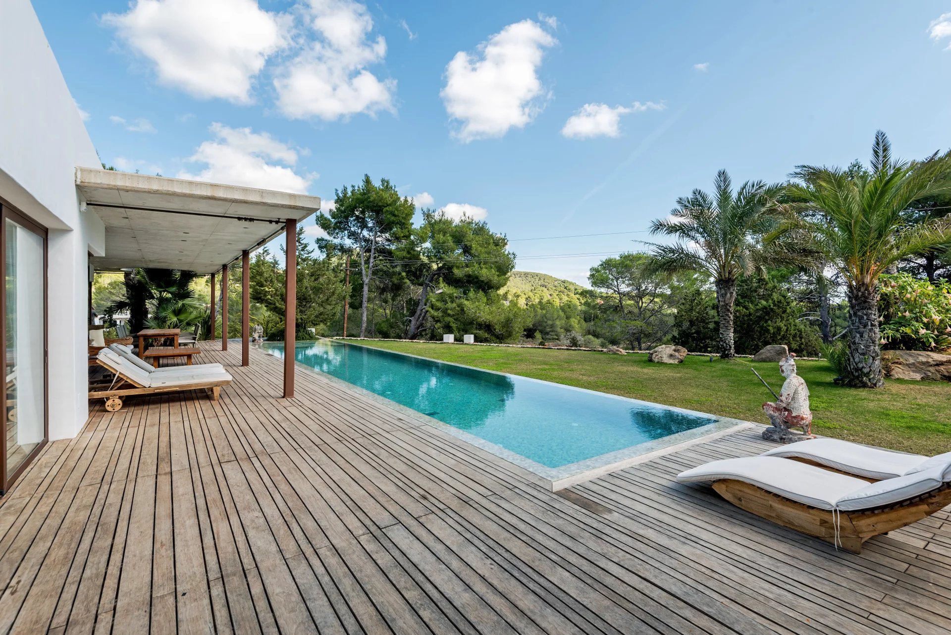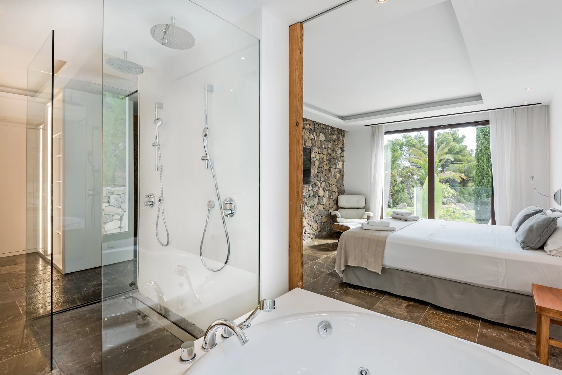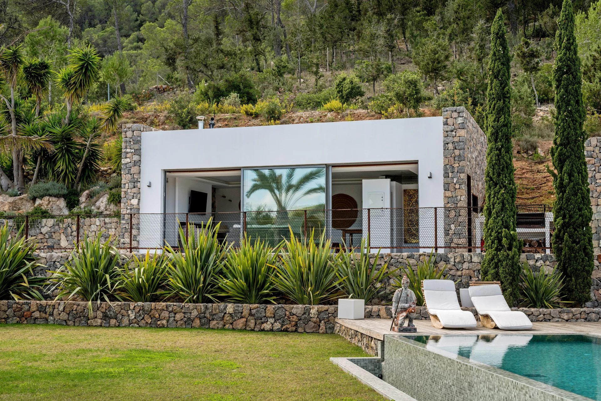 The pool house has an en-suite bedroom with kitchenette and living area. It also has a private terrace.