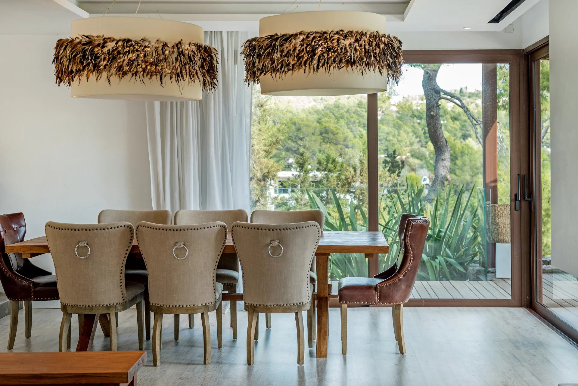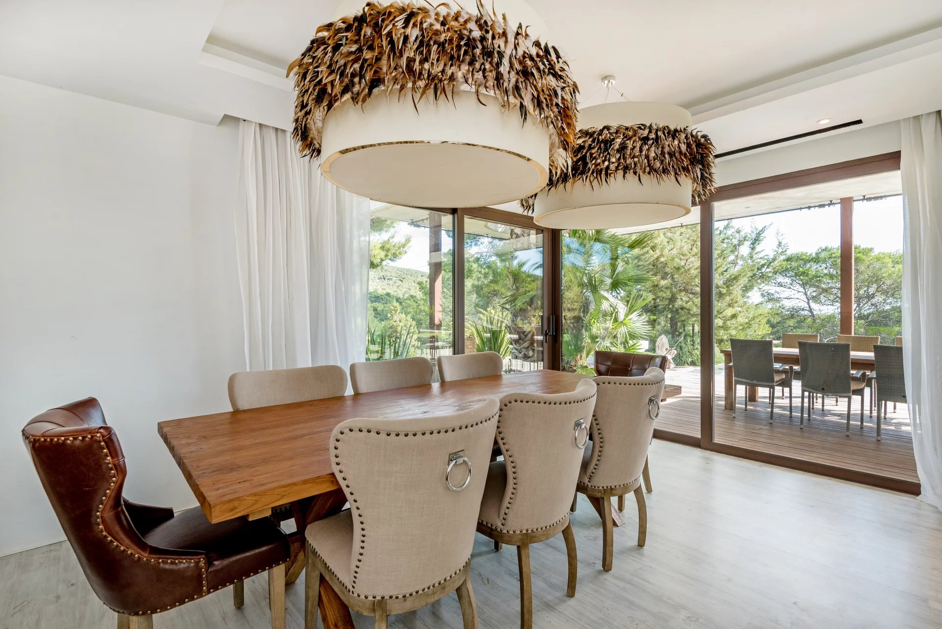 The outdoor area is equipped with sun loungers, barbecue, outdoor dining area and outdoor lighting.