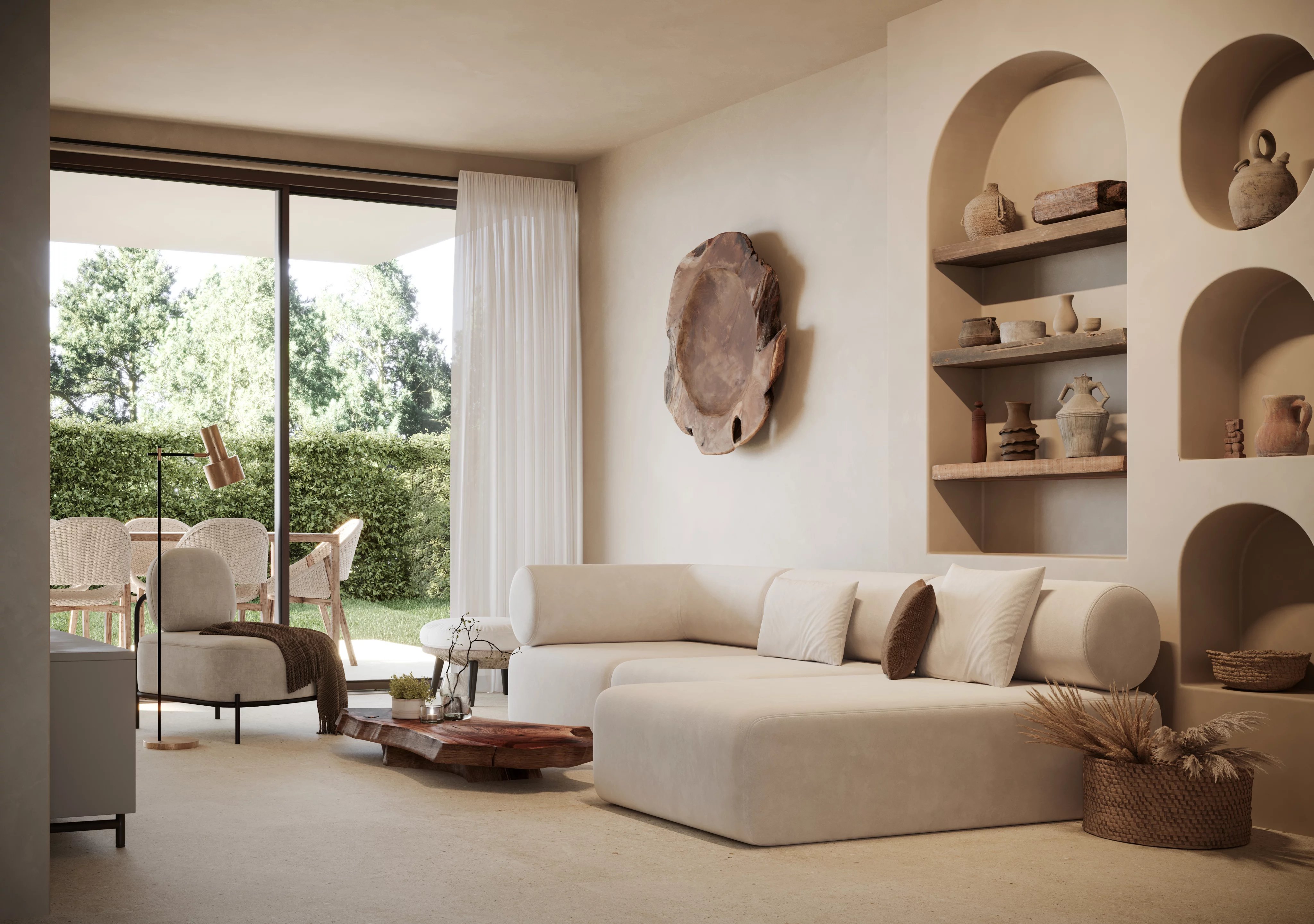 les logements en rez-de-chaussée, avec accès direct à une vaste terrasse-jardin privée, et les logements en étage, qui disposent d’une belle terrasse au niveau de l’habitation ainsi que d’un solarium privé sur la toiture, offrant différents styles de vie sans renoncer à une même qualité architecturale et à une esthétique méditerranéenne raffinée.