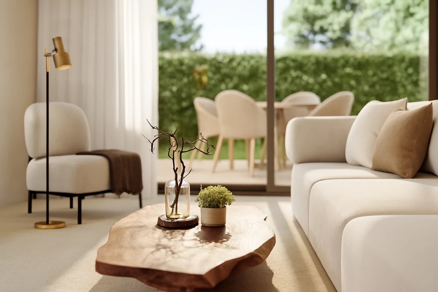 Chaque appartement dispose de 63 m² de surface intérieure, répartis en deux chambres et deux salles de bains, avec la chambre principale bénéficiant d’une salle de bains en suite. Les espaces intérieurs s’ouvrent naturellement sur des zones extérieures privées, et chaque logement comprend une piscine privée avec système de chloration saline, intégrée avec élégance dans le projet.