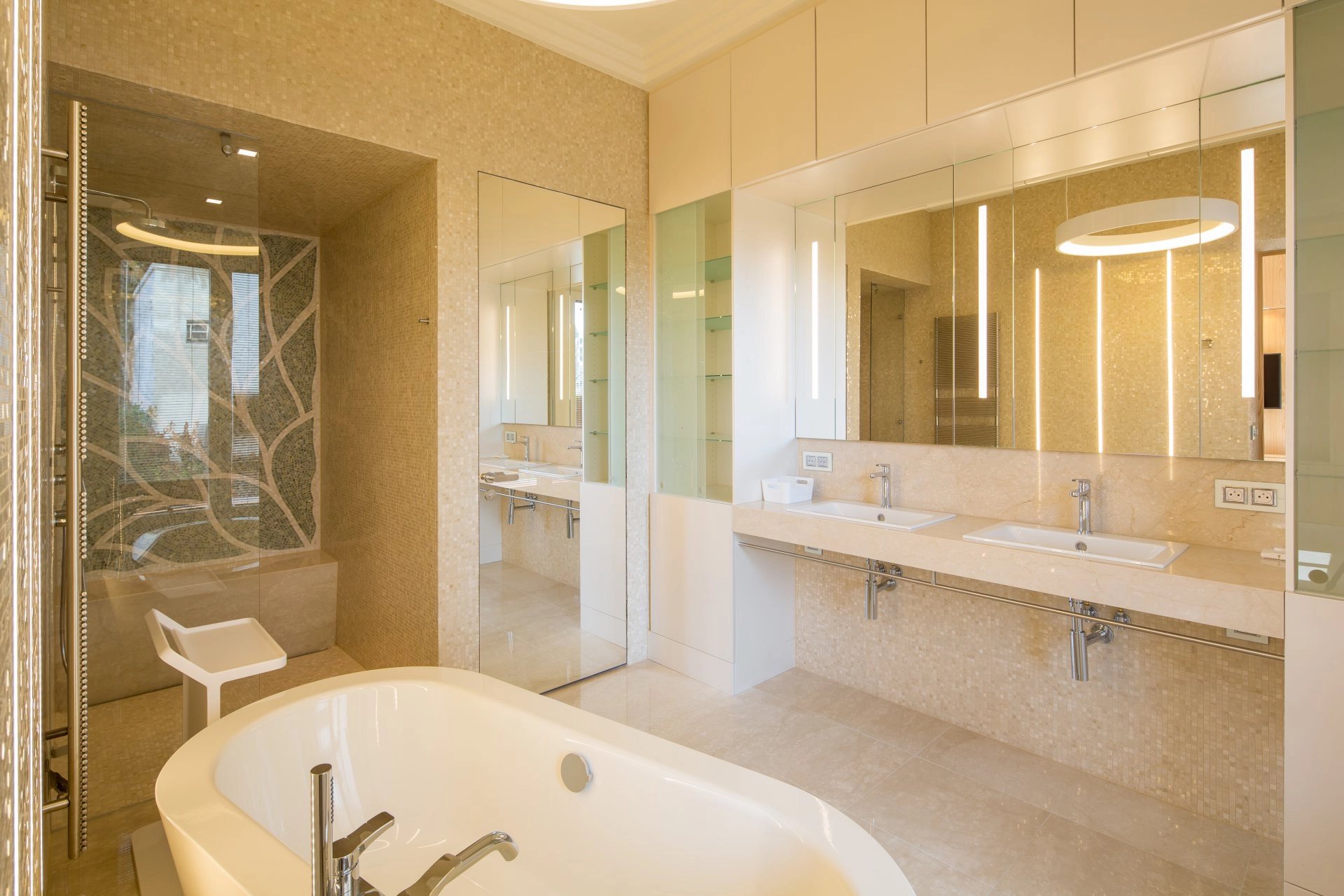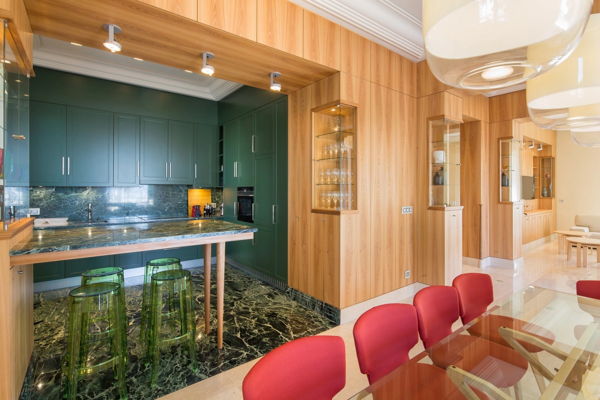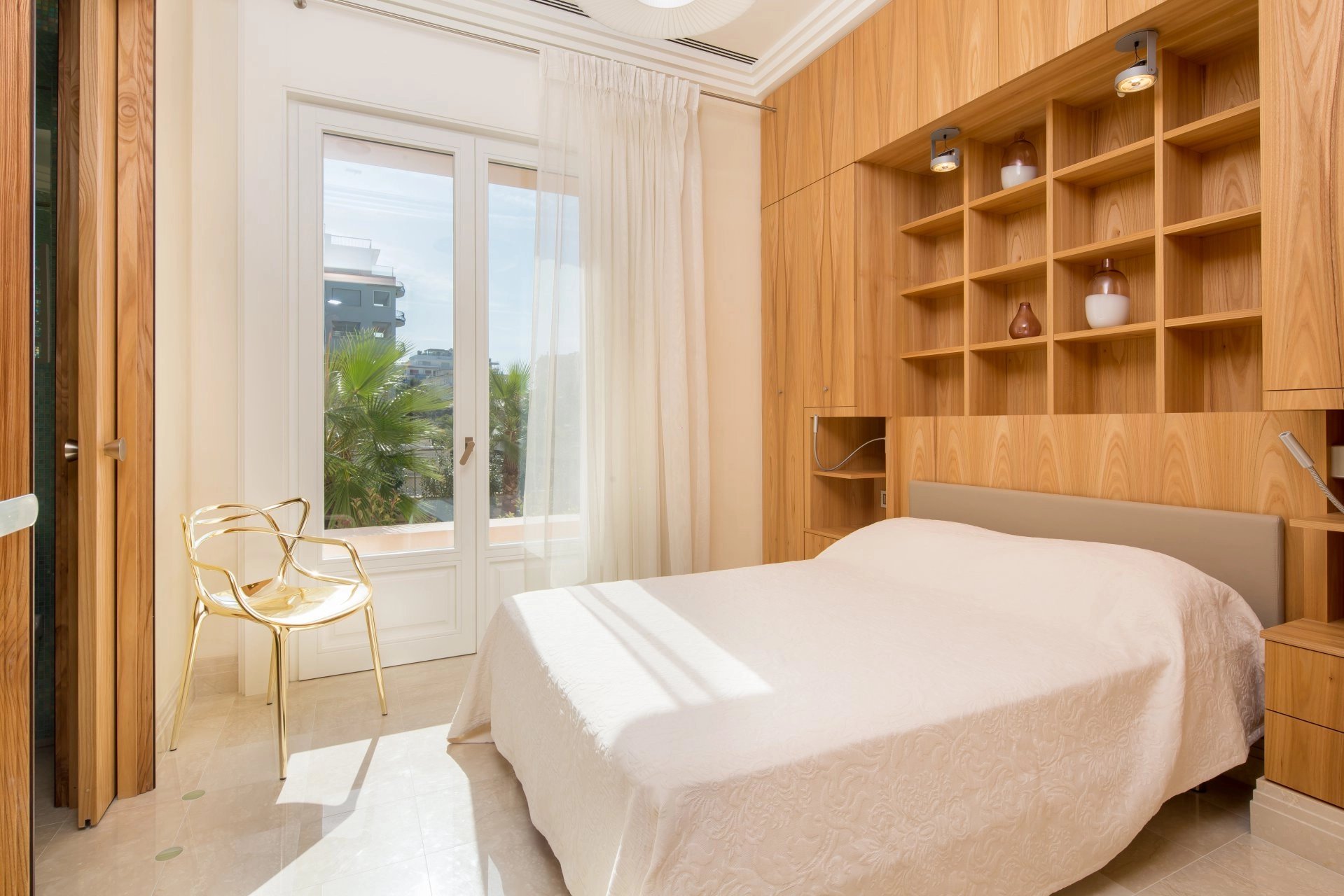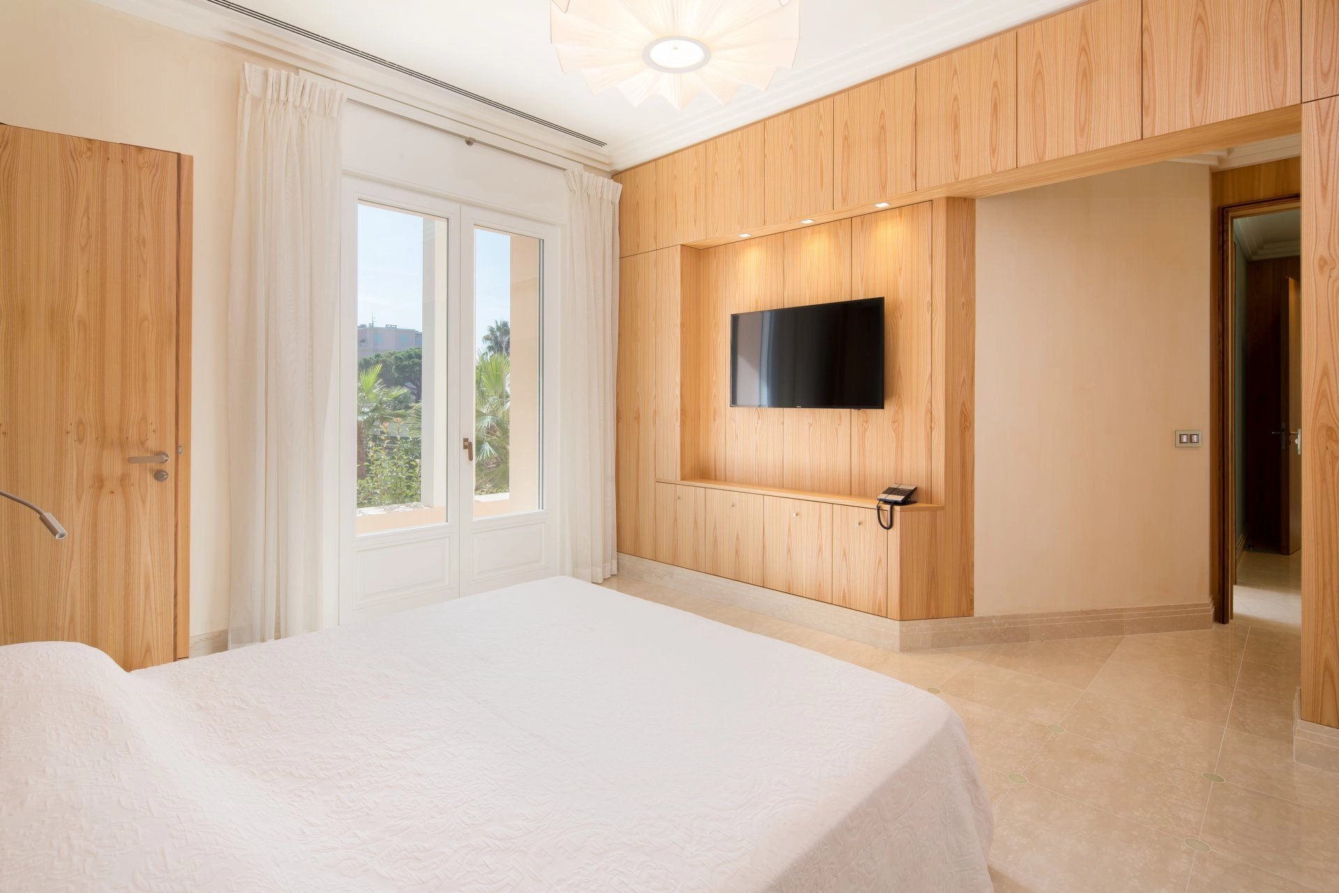 Face au Port Canto, dans un immeuble bourgeois de standing des années 1950, bel appartement entièrement rénové et climatisé de 150 m2 bénéficiant d’une terrasse principale de 60 m2 et d’une terrasse annexe pouvant être utilisée dans le cadre de réceptions.