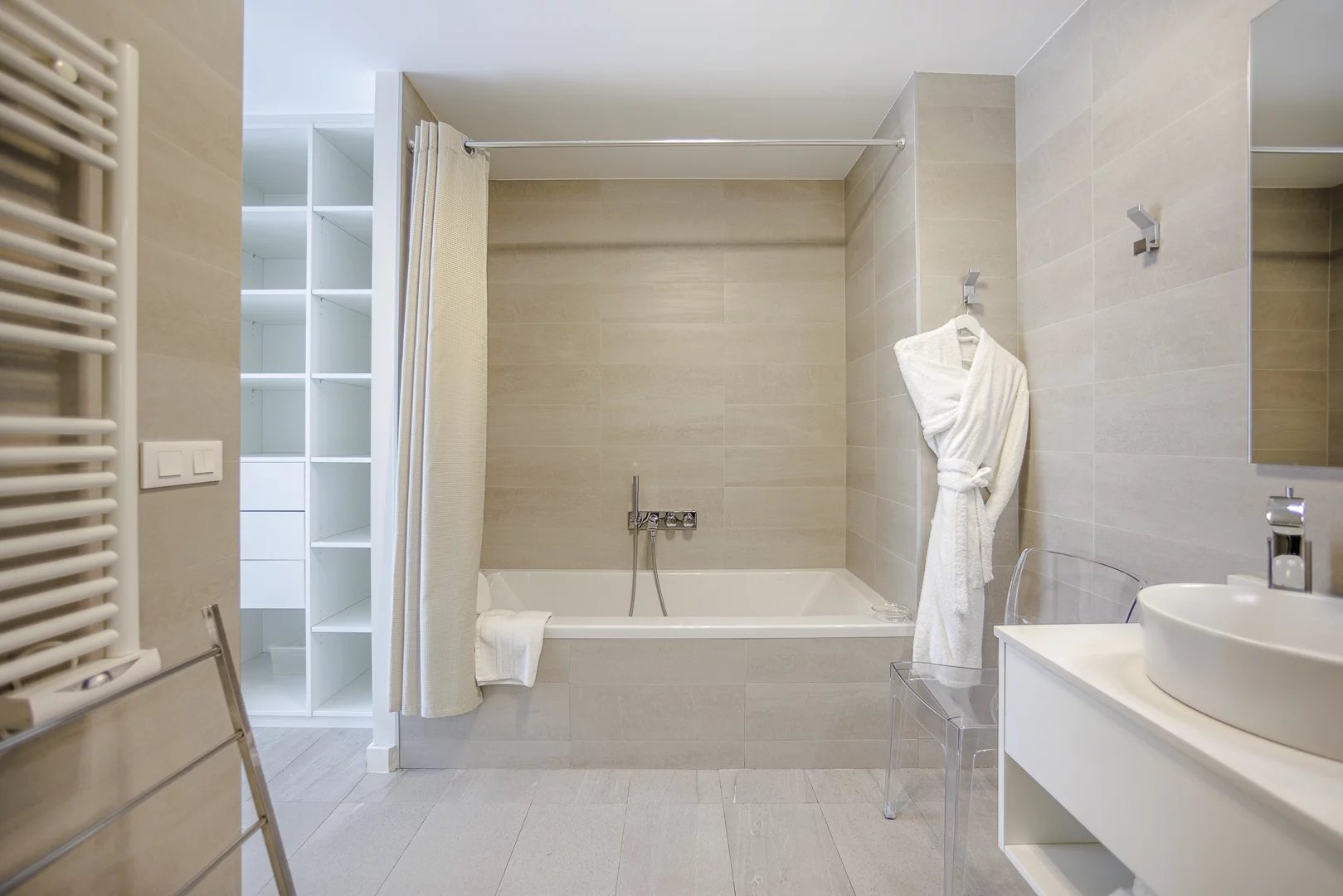 Magnifique appartement de 160 m² avec un jardin, une terrasse arborée de 60 m², et une vue mer. Comprend 3 chambres et un jacuzzi. Situé dans un domaine privé offrant piscine, pétanque, tennis, sauna, golf, et piste de running.