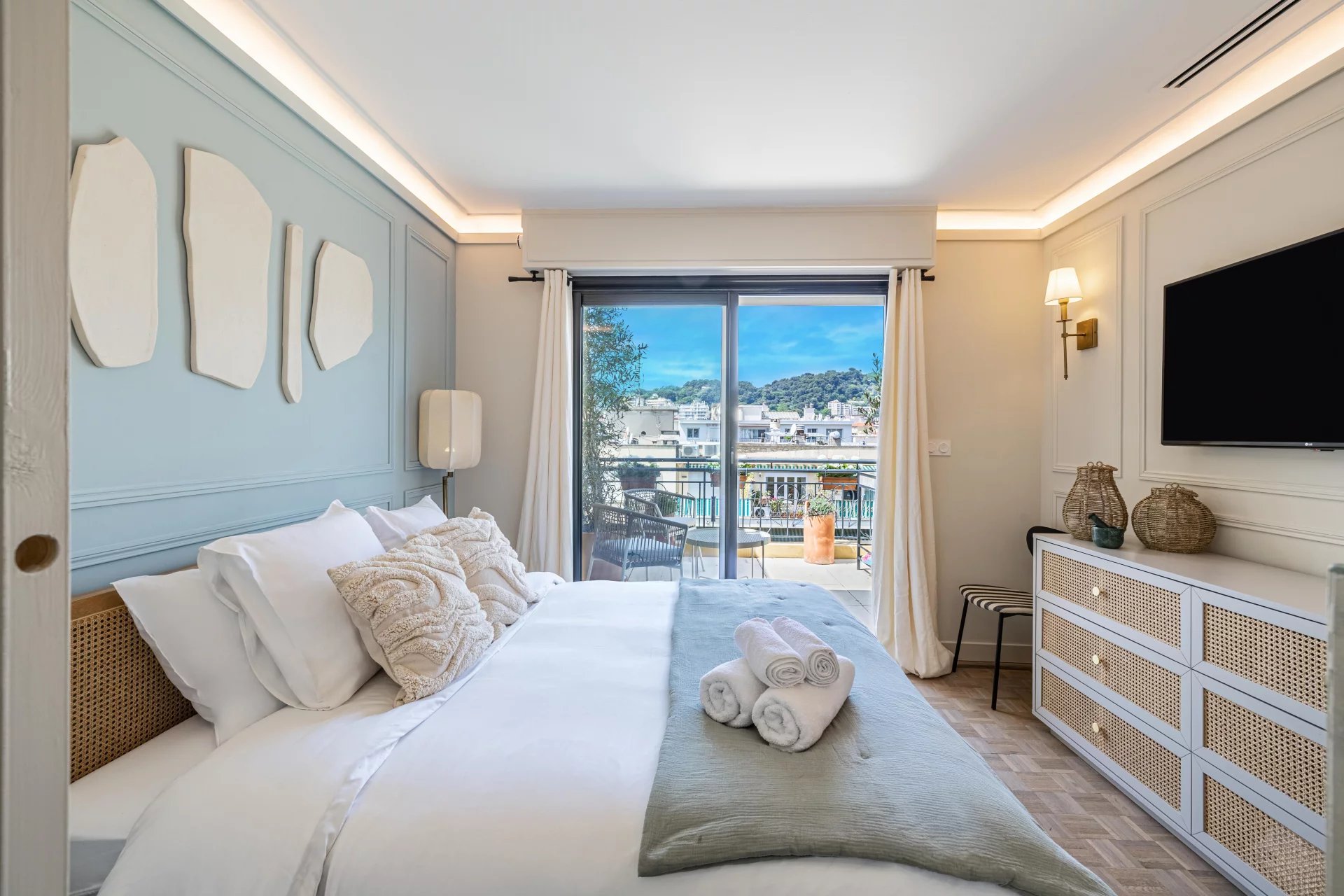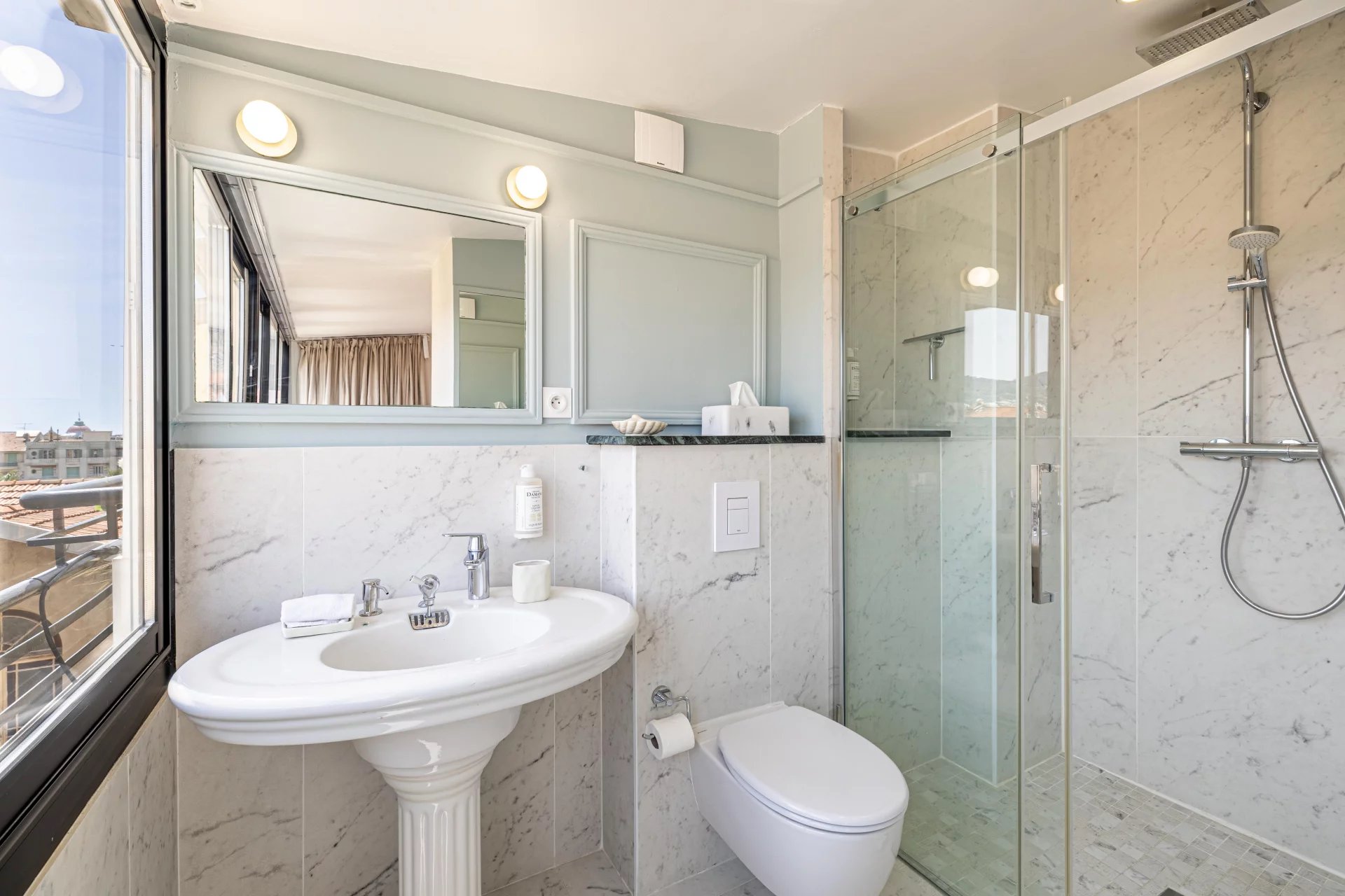 En savoir plusIl se compose de deux chambres, chacune avec sa salle de bain privative, d’un salon confortable et d’une cuisine moderne entièrement équipée. La suite principale bénéficie d’une vue dégagée sur les collines de Nice, avec une salle d’eau semi-ouverte et aucun vis-à-vis. La seconde chambre dispose quant à elle de sa propre terrasse.