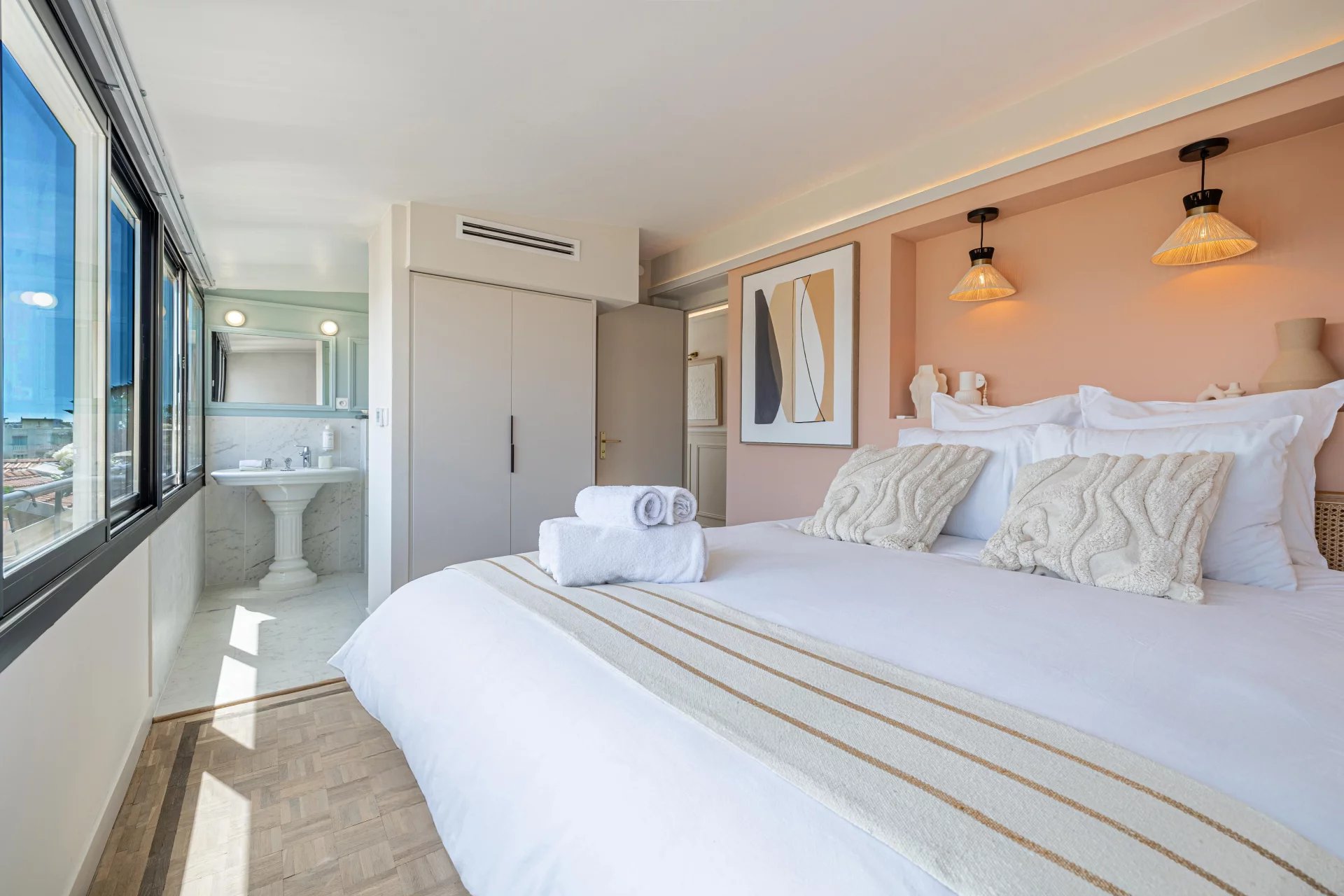 En exclusivité chez Michaël Zingraf Real Estate, ce superbe penthouse rénové occupe le dernier étage d’un immeuble niçois avec ascenseur, à quelques minutes à pied des plages et du centre-ville.
