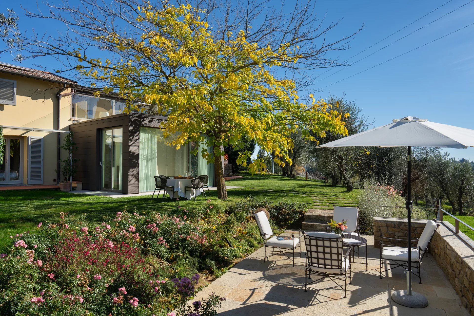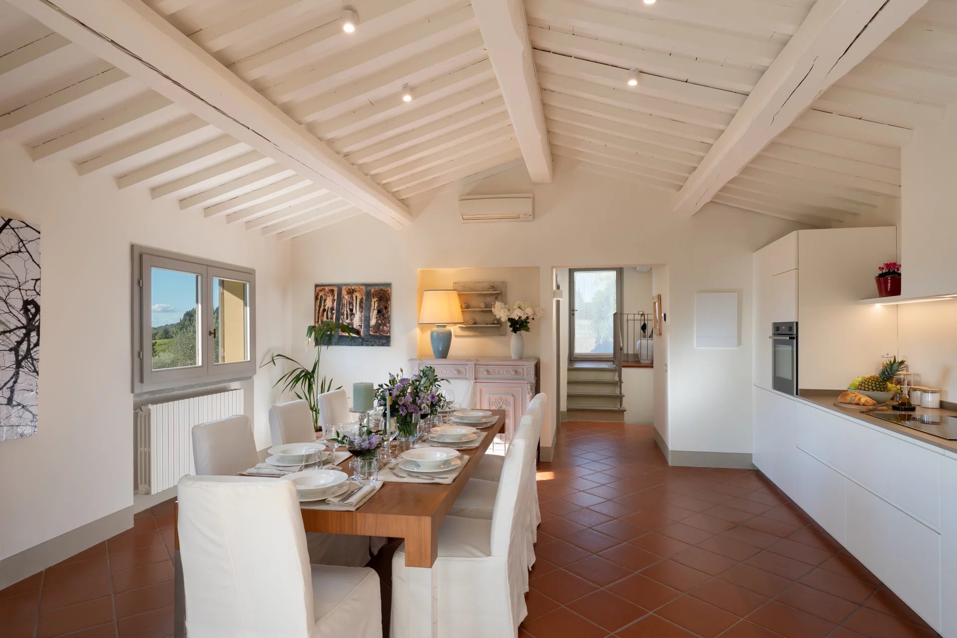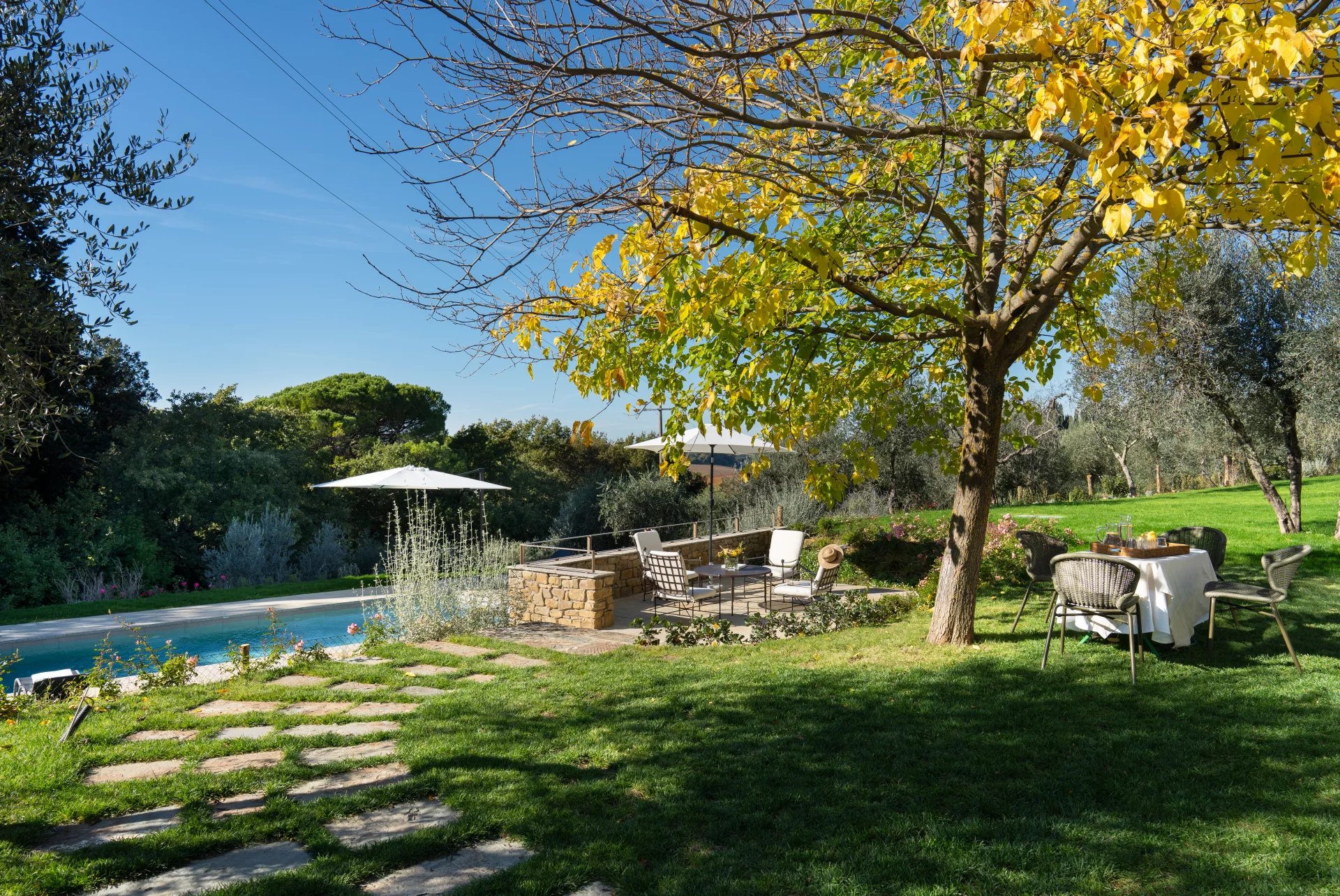 La maison peut être louée indépendamment – idéale pour des familles ou des groupes plus restreints – ou combinée avec la Villa Castellare de’ Sernigi, située à proximité, pour former un vaste domaine privé au cœur de la tranquillité du Chianti.