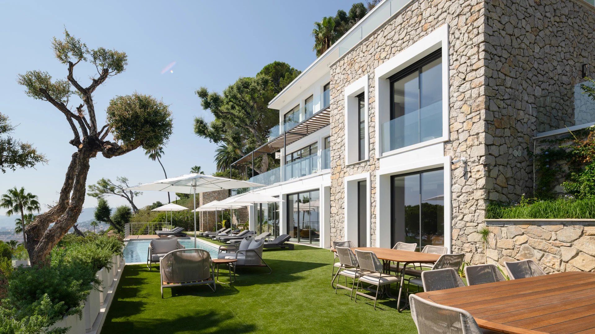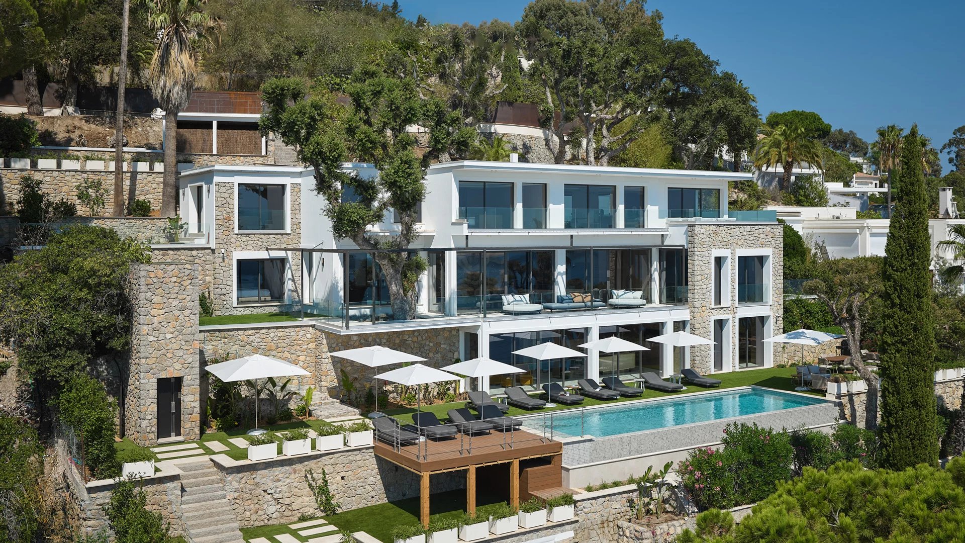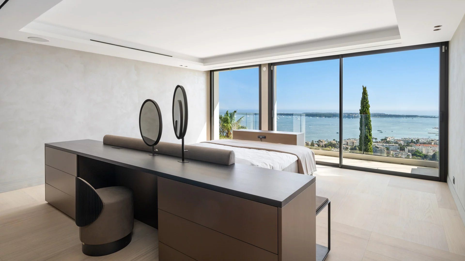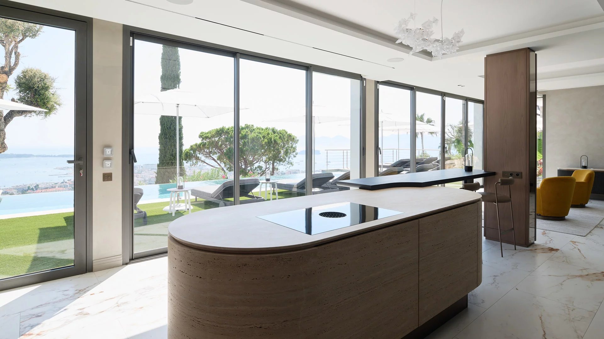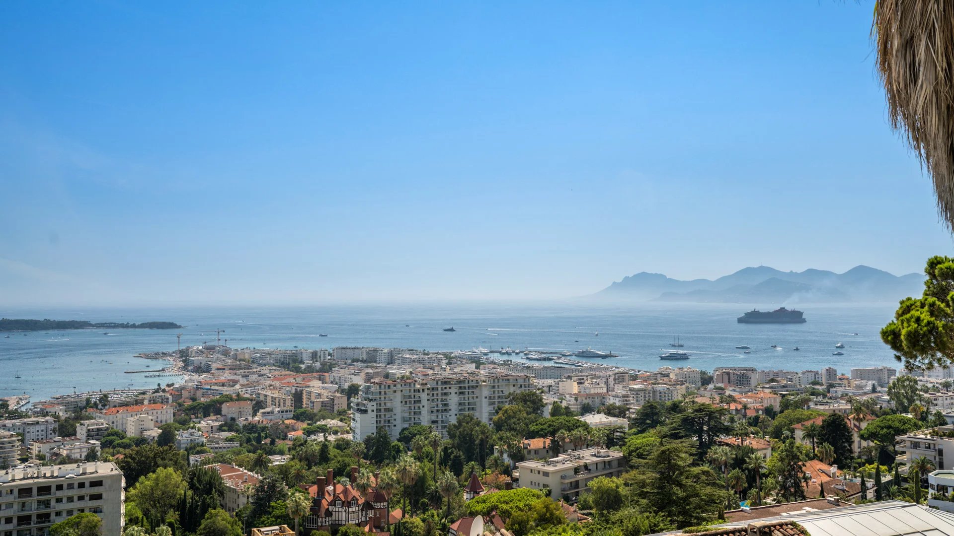 Avec ses 550 m² habitables, la villa dévoile une décoration sophistiquée et offre une vue imprenable sur la Baie de Cannes et les Îles de Lérins, garantissant ainsi des panoramas à couper le souffle.
