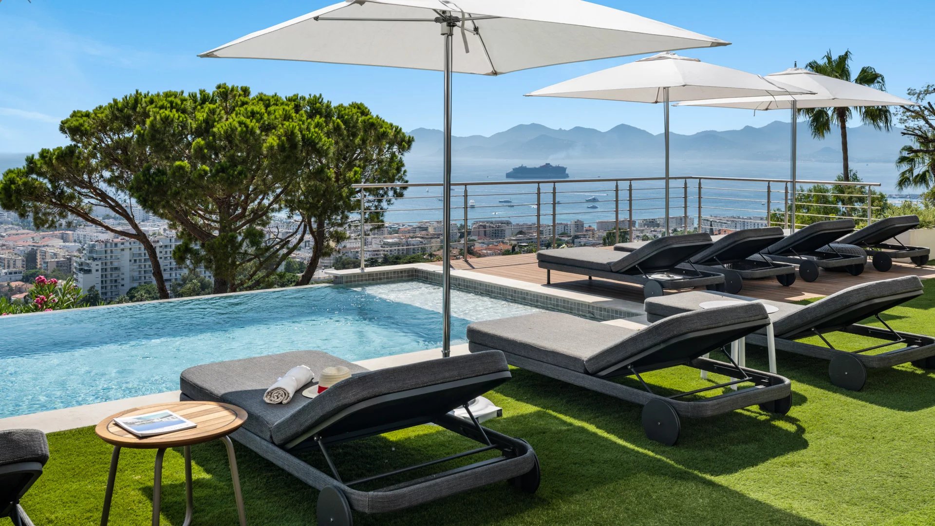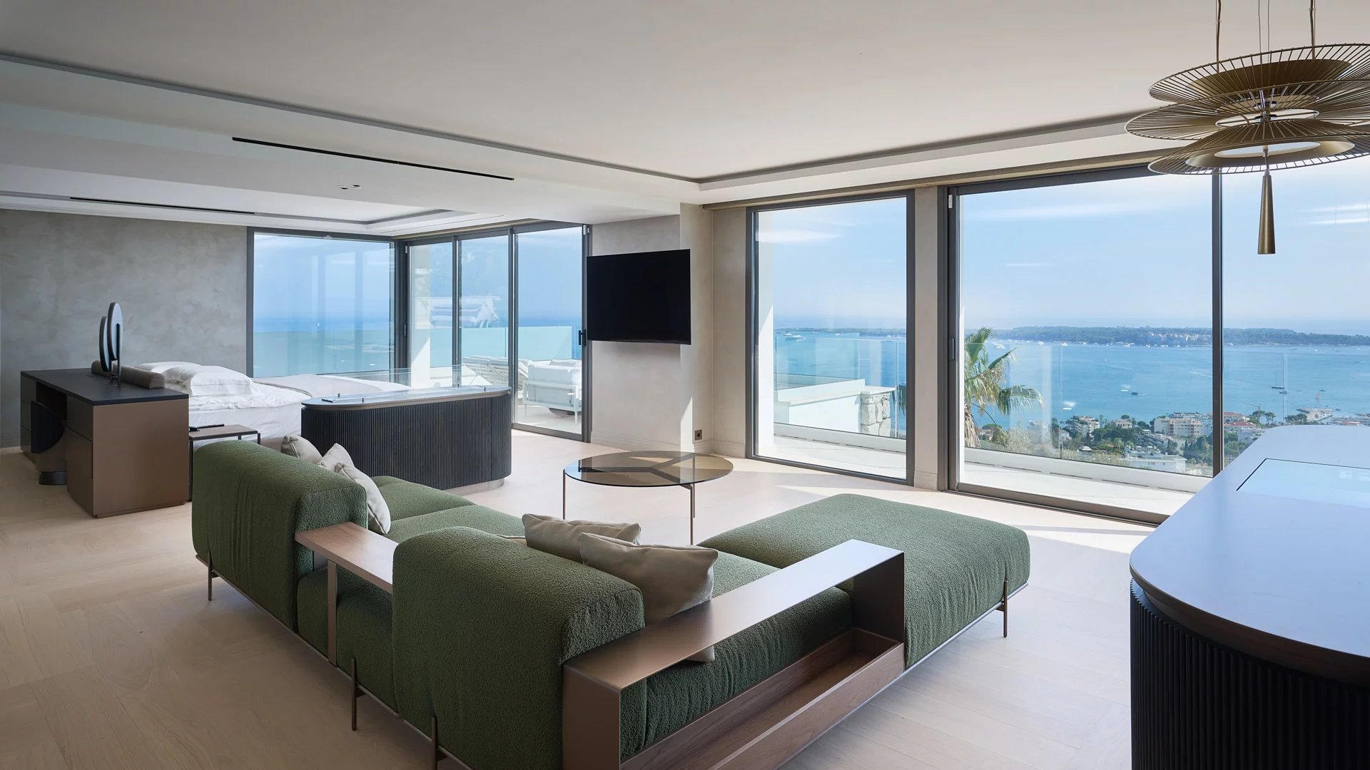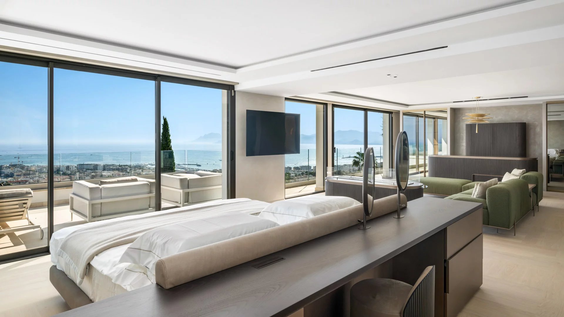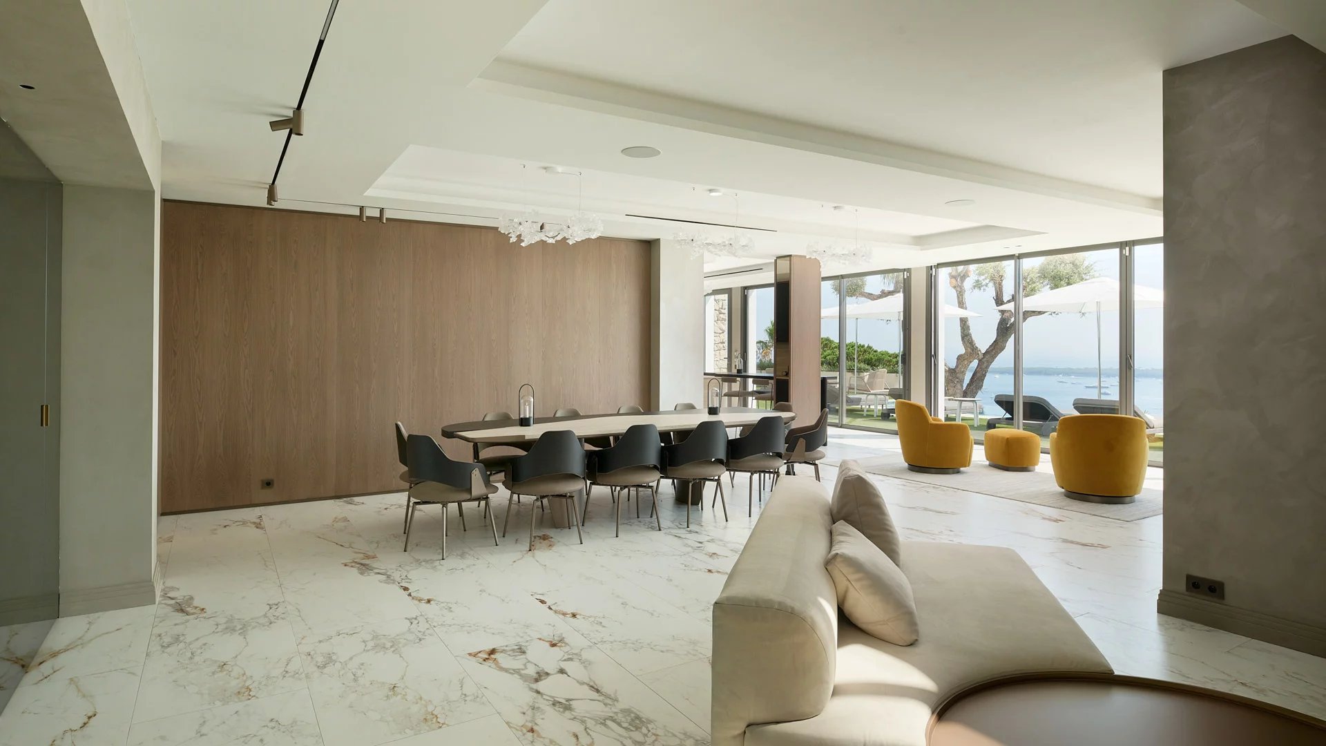 Avec ses 550 m² habitables, la villa dévoile une décoration sophistiquée et offre une vue imprenable sur la Baie de Cannes et les Îles de Lérins, garantissant ainsi des panoramas à couper le souffle.