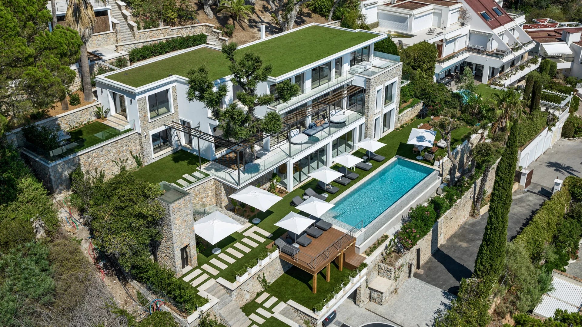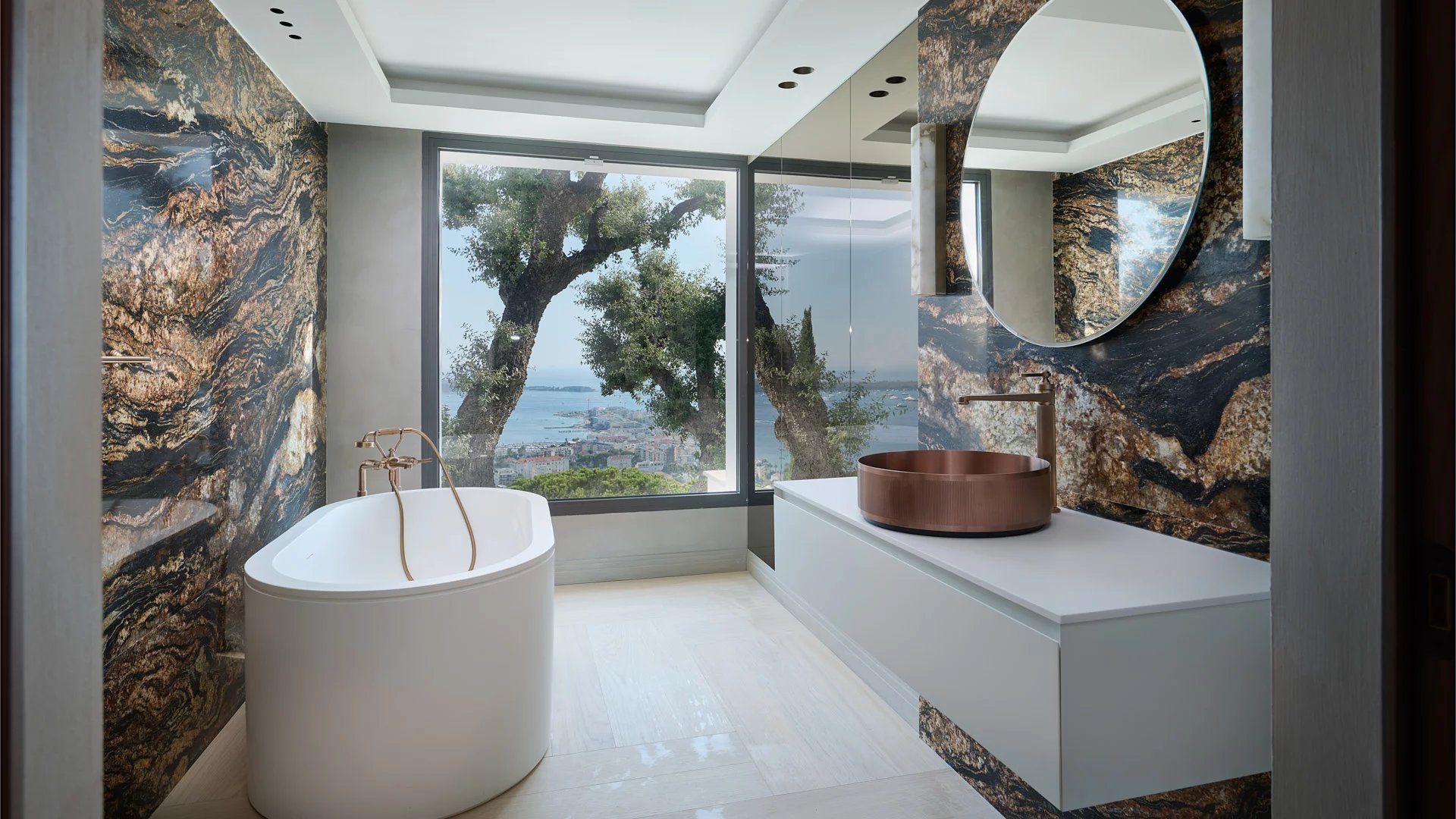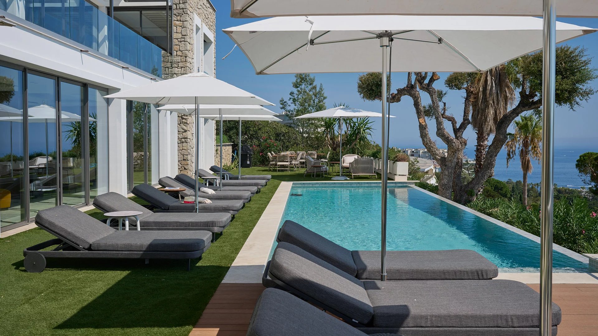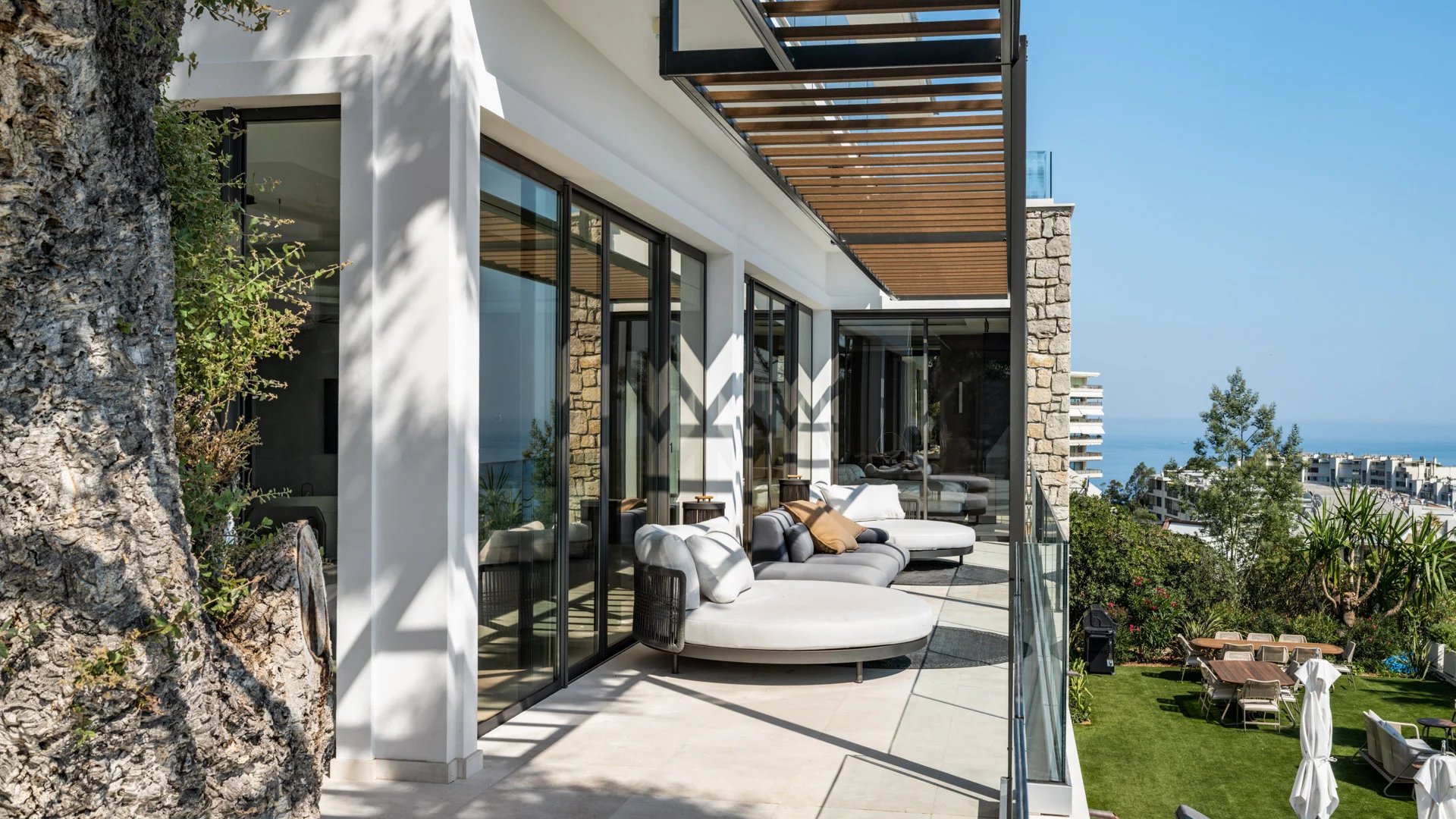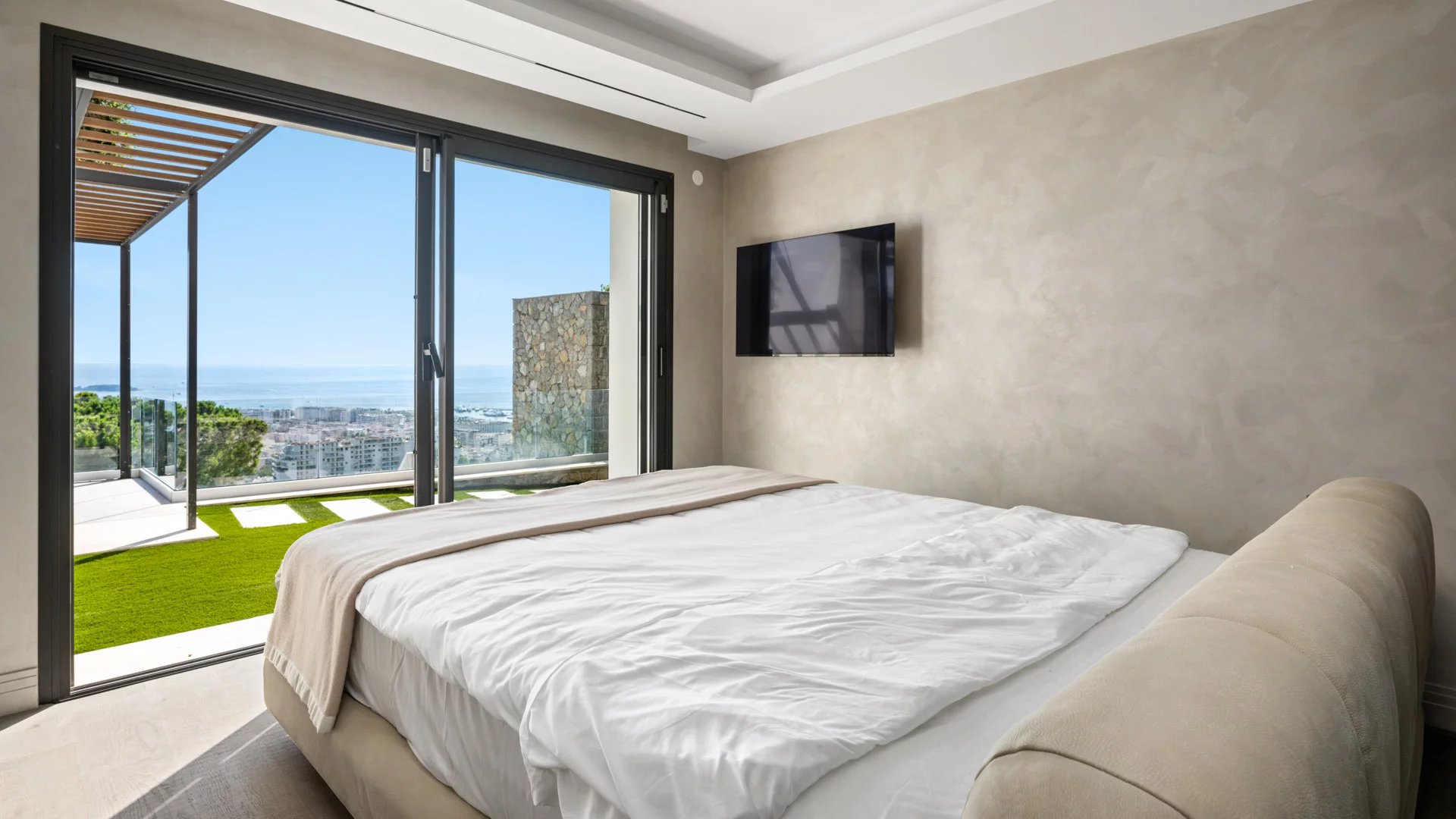 Avec ses 550 m² habitables, la villa dévoile une décoration sophistiquée et offre une vue imprenable sur la Baie de Cannes et les Îles de Lérins, garantissant ainsi des panoramas à couper le souffle.