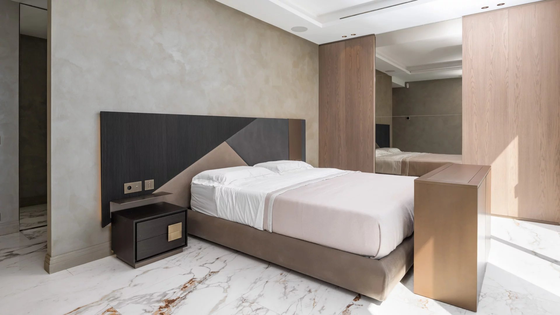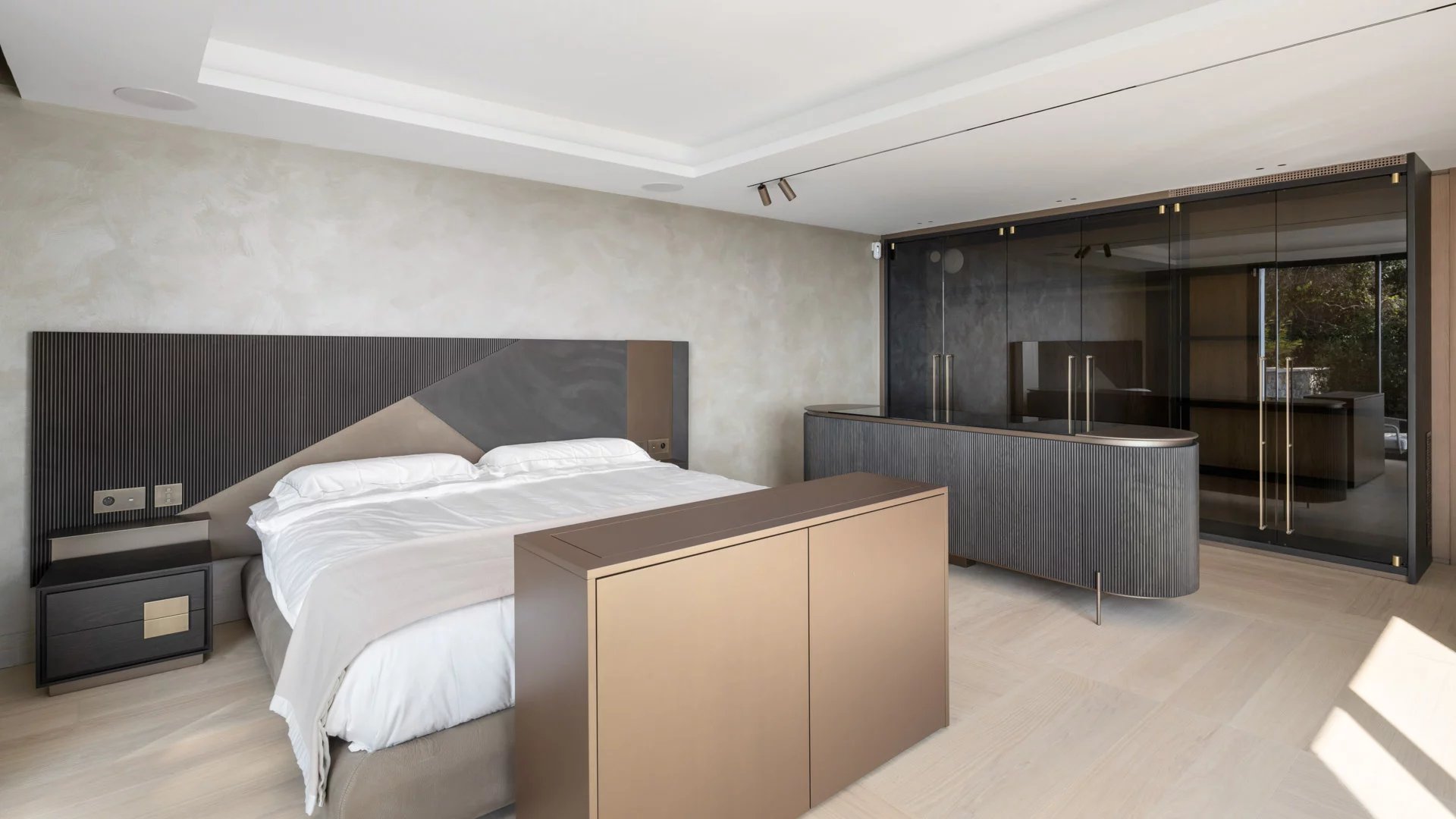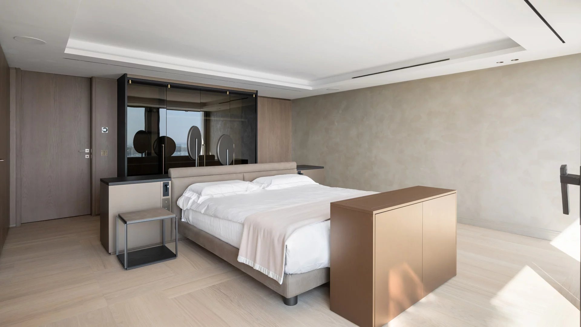 Une suite de Maîtres d'environ 85m² (lit double 200cm) comprenant un salon, un bar, s'ouvrant sur une terrasse, dressing et salle de douches.